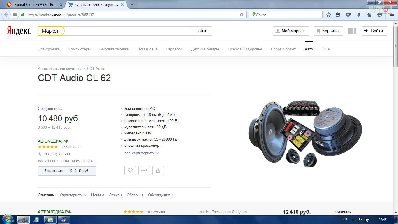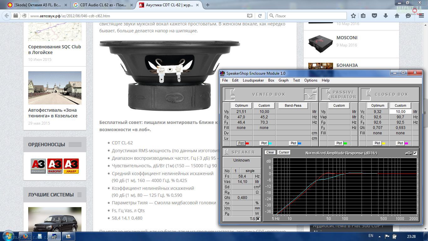 В журнале АЗ нашел еще вот такой (видимо ящичный) динамик 6,5" CDT Audio CL 62 стоимостью 10 тыр.
