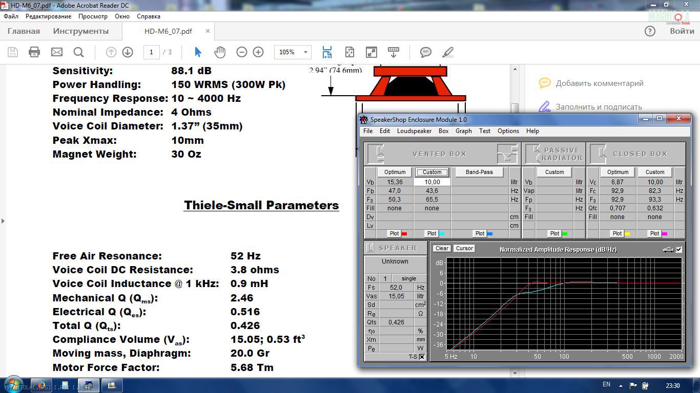 Абсолютно, точно, верно. Особенно если ящик ближе к 15 литрам. Плюс с заполнением ящика мин.ватой или другим материалом можно поиграться, что немного снизит рез.частоту и добротность динов в ящиках. Хотя и так все достойно!