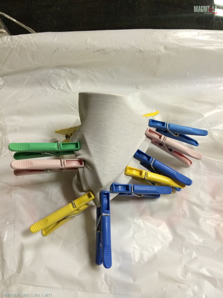 3.2 Взял все ту же футболку и натянул с другой стороны, так же пропитал смолой и т.д. и т.п.