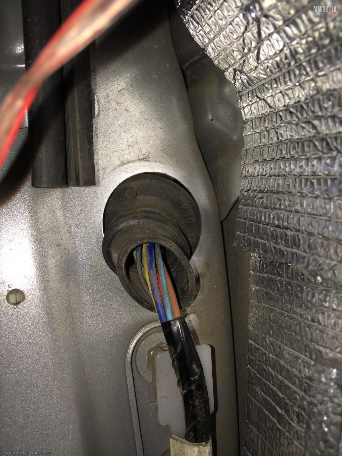 1. Акустические провода в пассажирскую дверь затянуты! Все как обычно в змейке, в стандартных резинках.