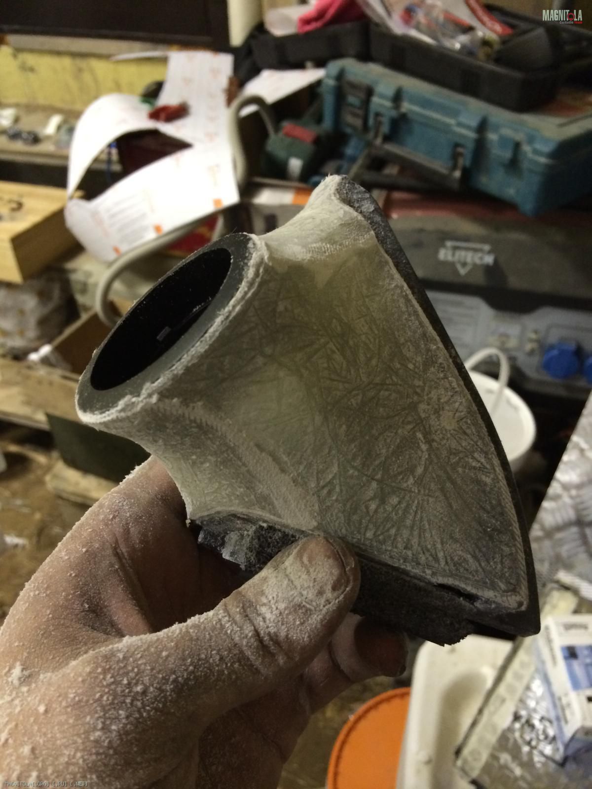3.4 Хочу еще закидать внутрь стекломата, получше приклеить конструкцию к уголку, сделать ступеньку под ту "хрень", ибо она будет съемная и крепиться болтом. Ну и отшпаклевать, да обтянуть.