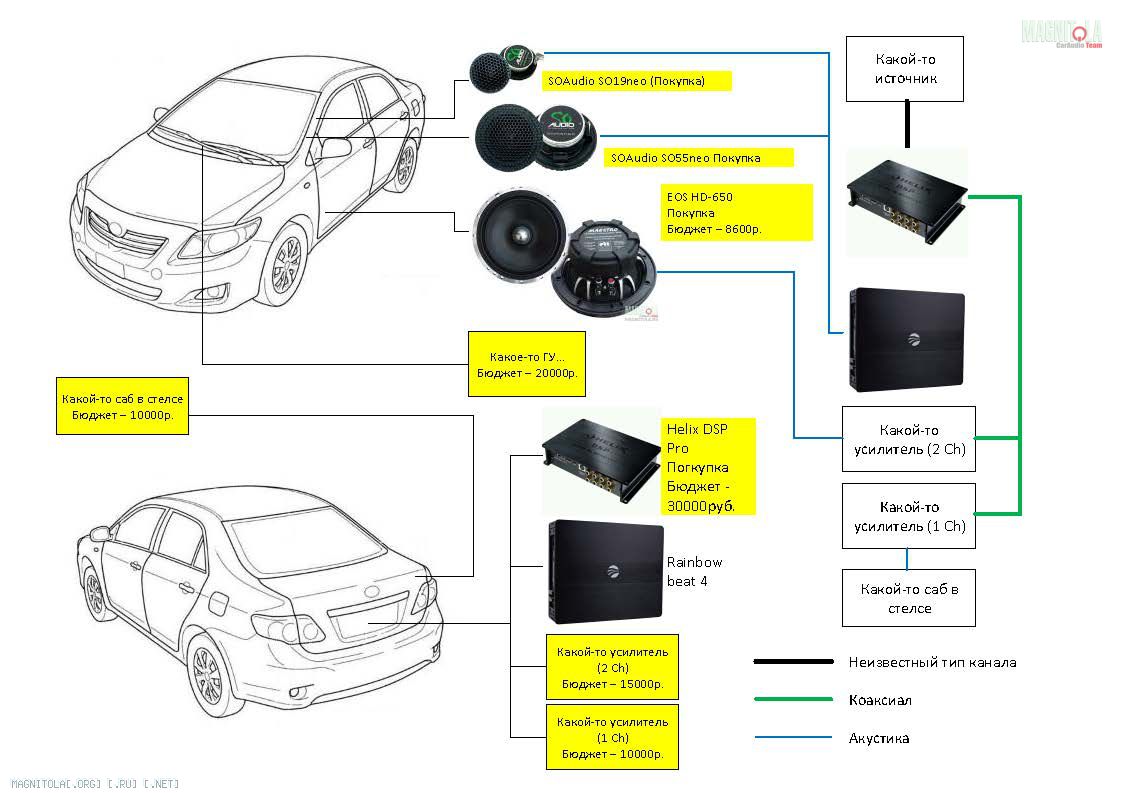 Саб огненный - helix k10w или k12w. Им очень маленькие объёмы нужны. Усил на саб - Helix G TWO по каналу на катушку, или M ONE - очен достойный малыш, мне прям понравился.