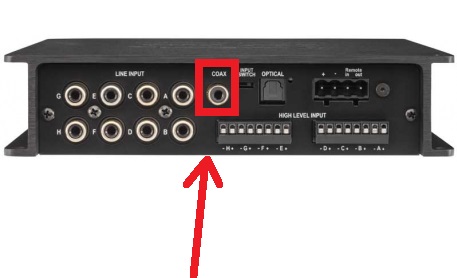 6. Через коаксиальный вход, тоже потребуется источник с коаксиальным выходом, но у helix dsp, dsp2 его нет (на фотке helix dsp pro):