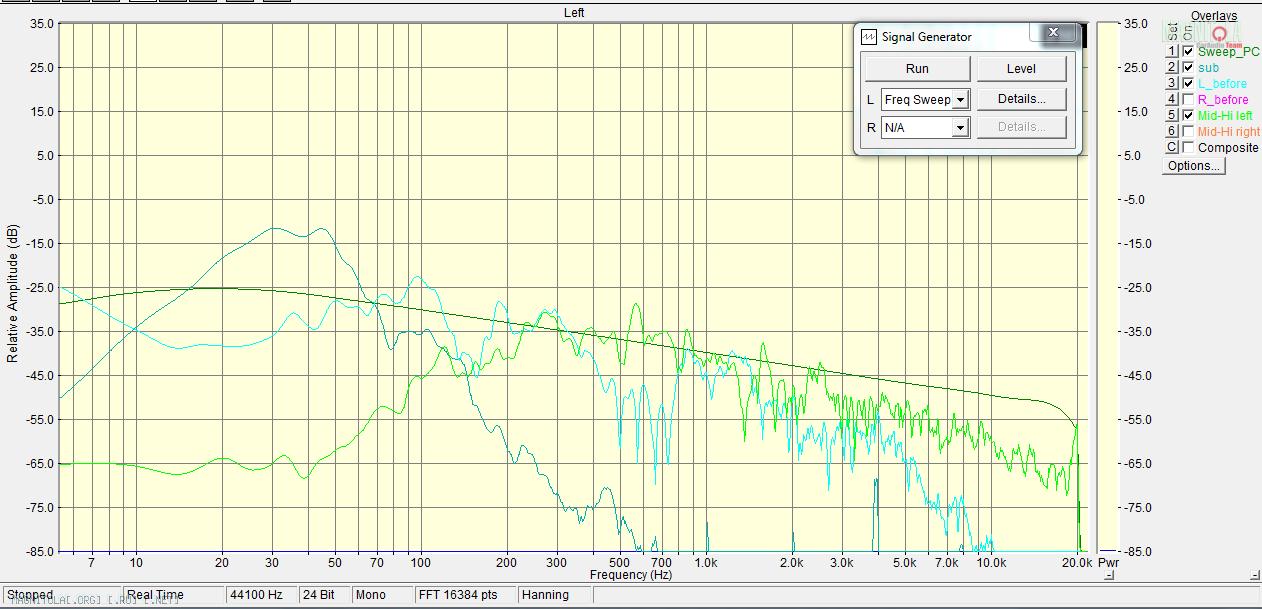 Поехал на дачу в надежде понастраивать систему, но запрягли меня по-полной, в итоге, только свел саб с вуферами и снял графики АЧХ всех компонентов.