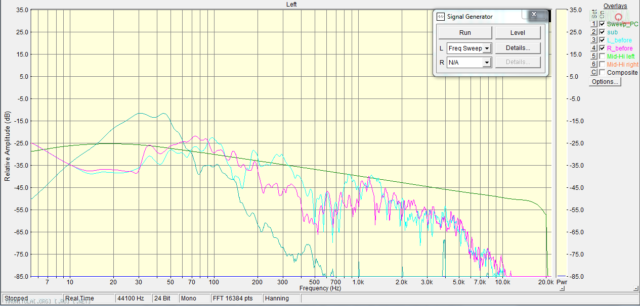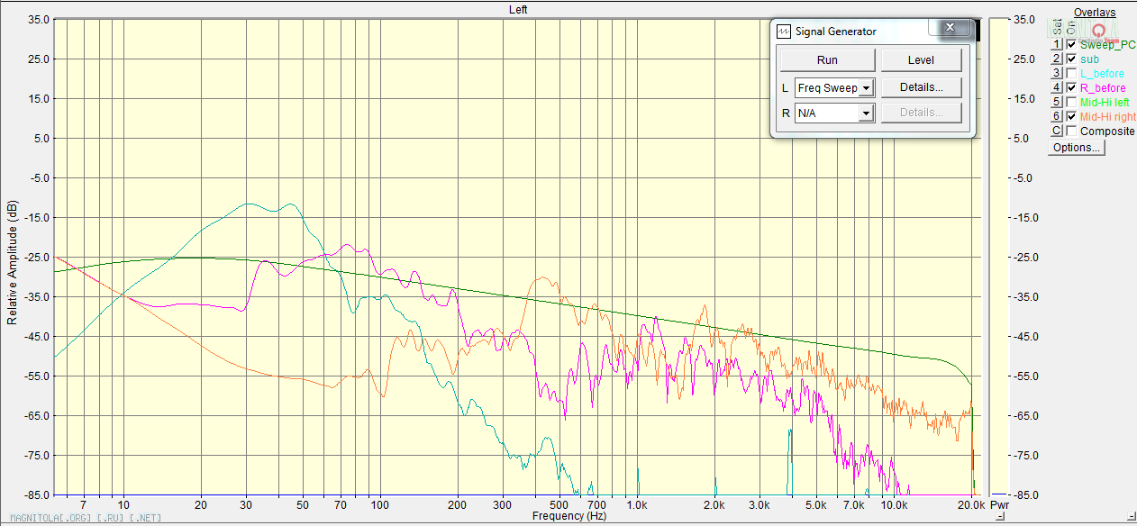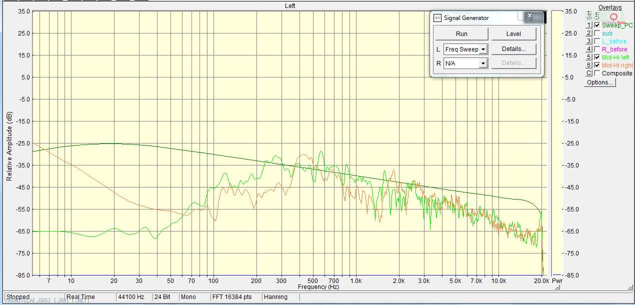 P.S. Во всех графиках присутствует АЧХ sweep тона, чтобы было легче ориентироваться в пиках и провалах.