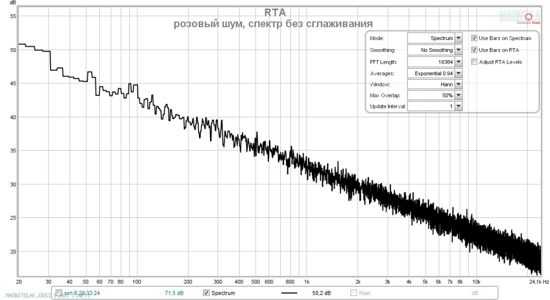 Итого, надо разделять исходный спектр сигнала и спектр звуковой мощности,обработанный с помощью RTA.