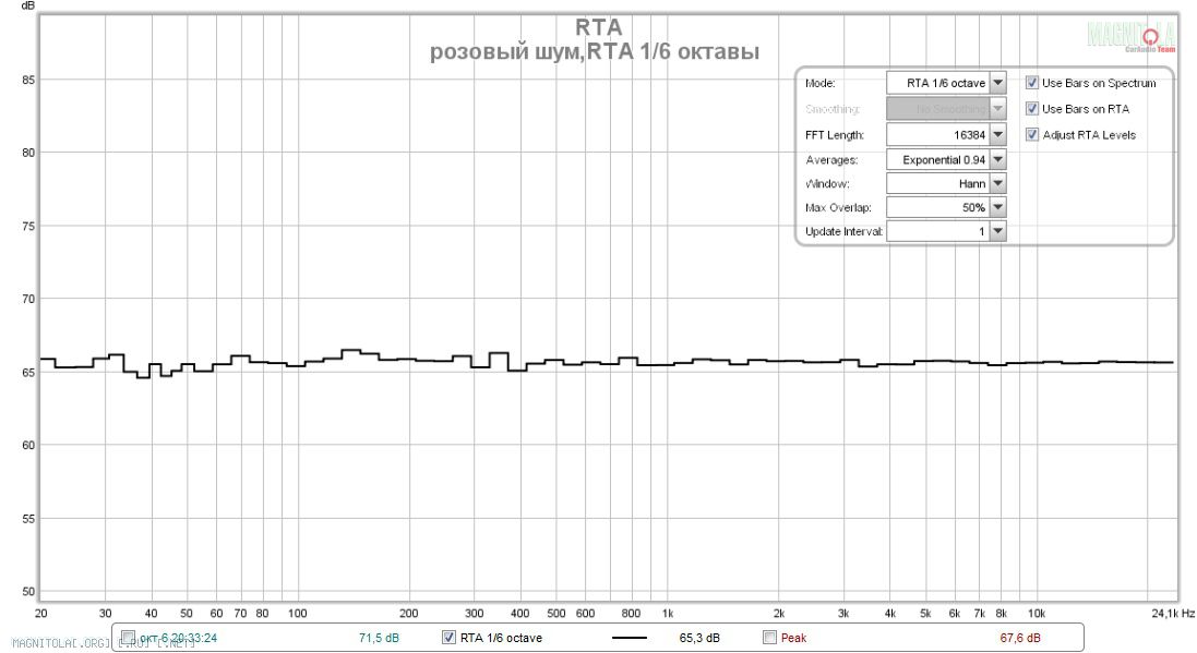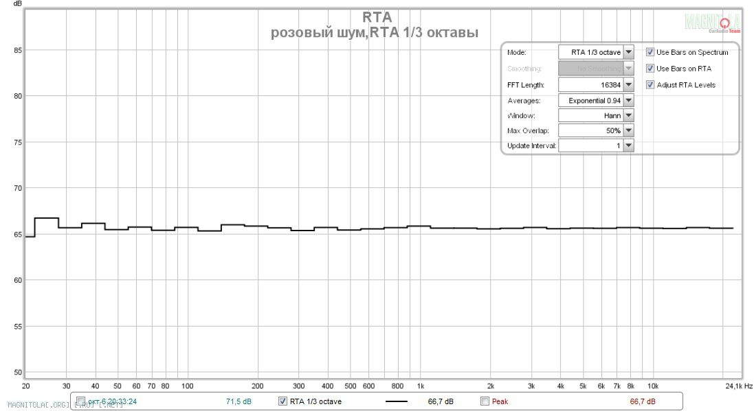 Теперь "померяем" розовый шум. (виртуальным кабелем, так как лень :yes:).