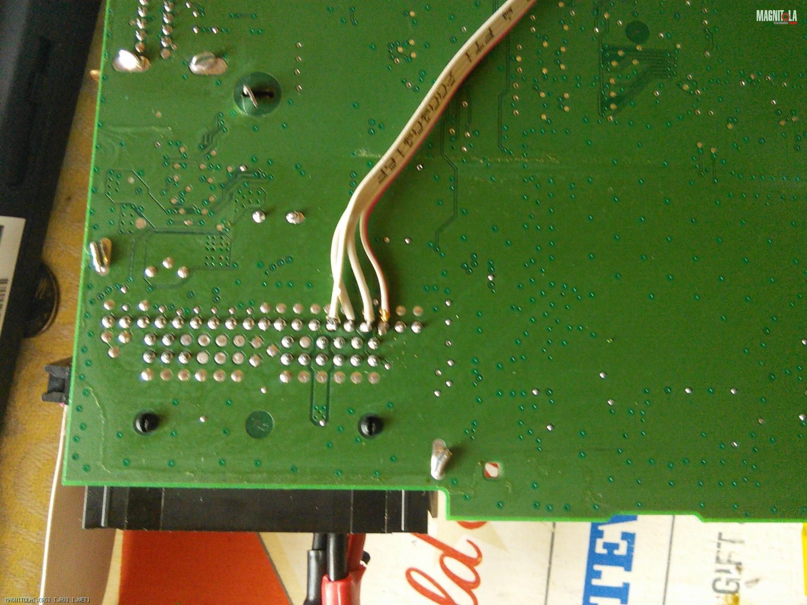 Первым делом решил подключить RCD-510 к процу. Подключил RCA-мамы к выходах L/R фронта с помощью переходников, но соединение было ненадежным, поэтому решил подпаять шлейф непосредственно к плате. Вложение 772436