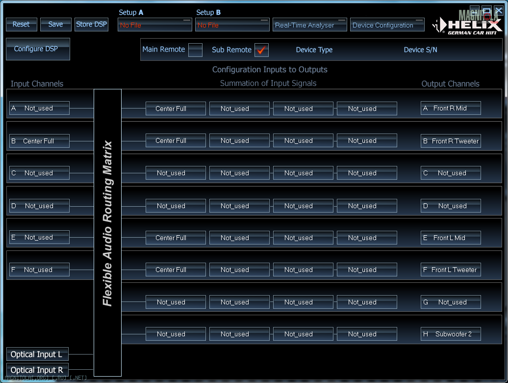 соответсвенно в хеликсовской софтине ставлю все каналы Not used, кроме одного, по которому приходит входной сигнал, называю его Center full.