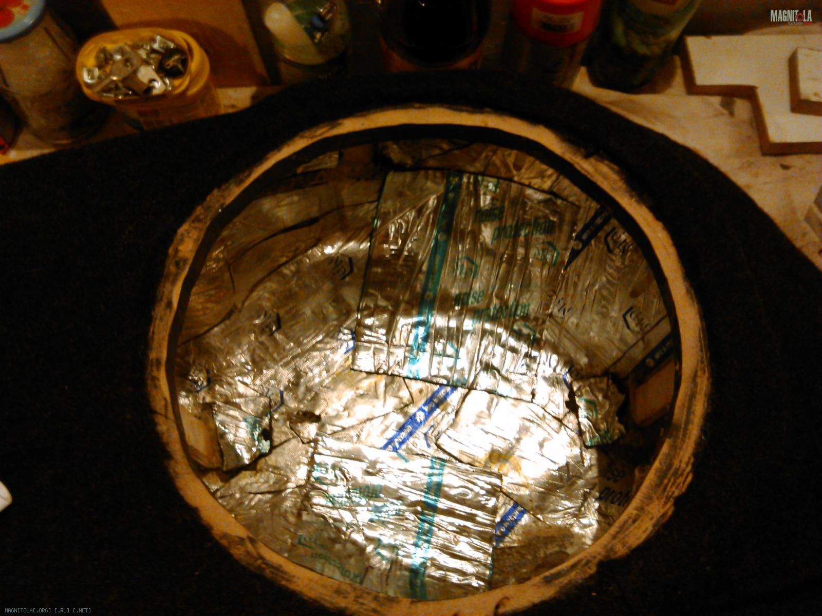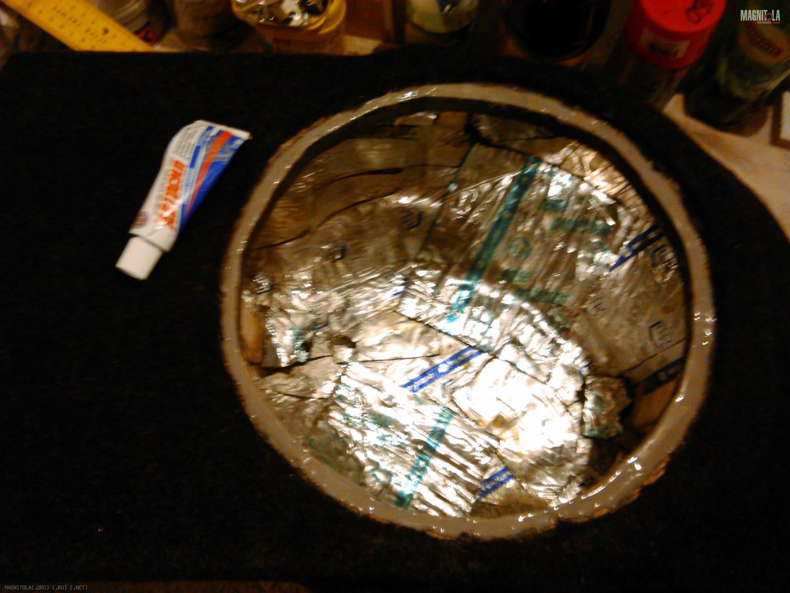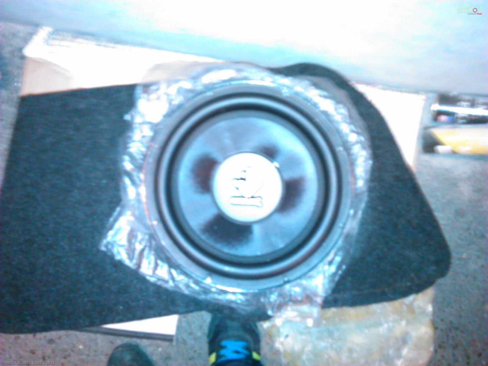 Еще чуток доработал саб, подрезал карпет как надо и сделал прокладку под динамик. Зачистил и обезжирил посадочное место, нанес туда герметик небольшим слоем, накрыл тонким полиэтиленом и положил туда динамик. После просушки пакет снимается и динамик ложится уже на эту прокладку. Герметично и адежно