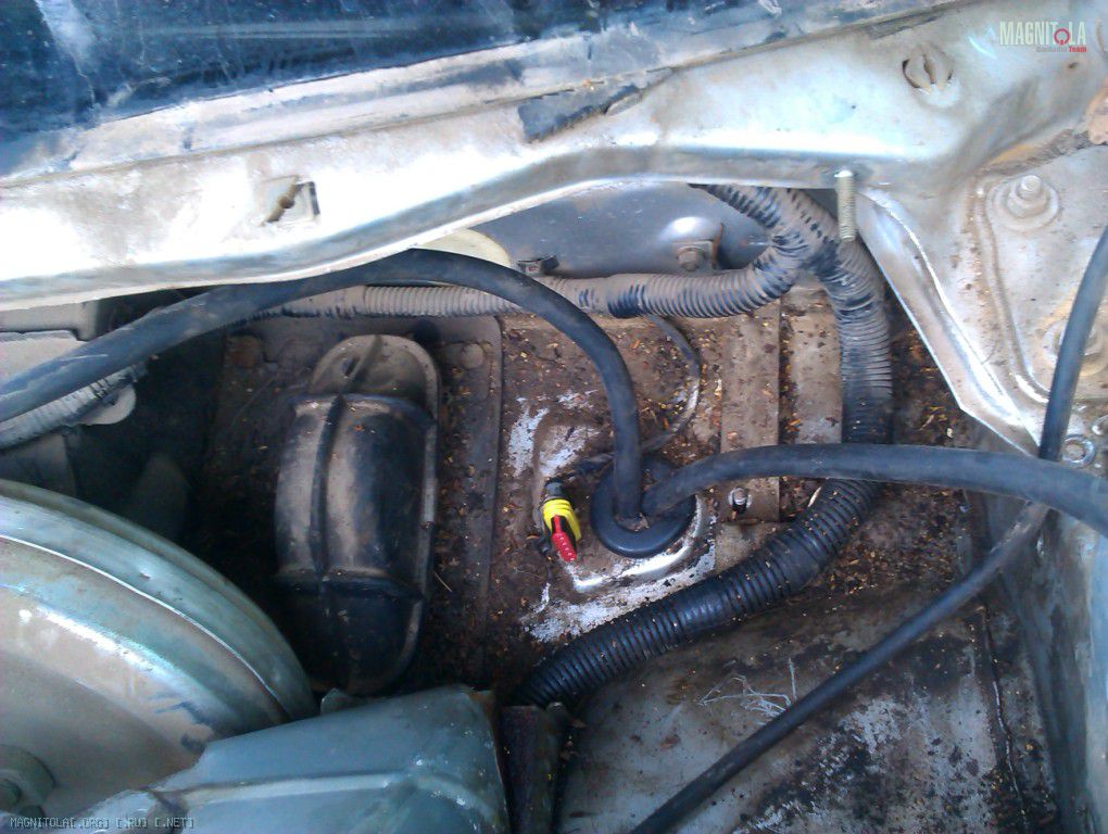 В моторный отсек проложил через отверстие гидрокорректора, чтобы поставить резинку на место, пришлось снимать моторчик дворников