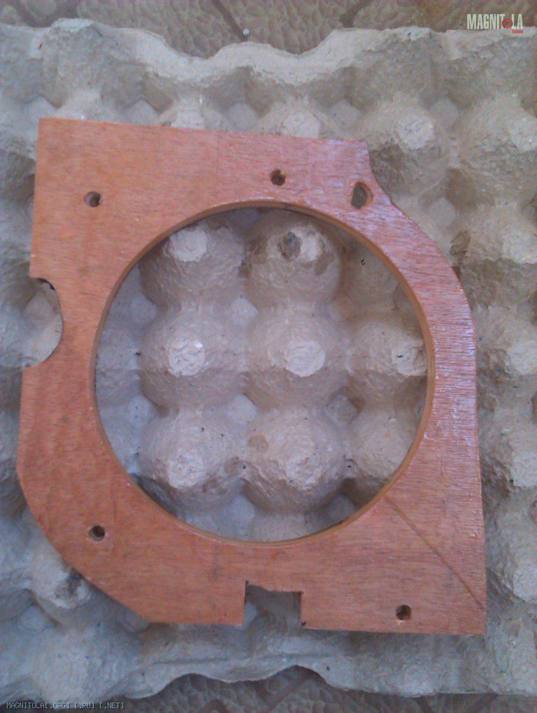 Поехал к другу в мастерскую по изготовлению мебели, отпилили лишний металл болгаркой, примерили по шаблону и лобзиком напилили из 12 мм фанеры проставки