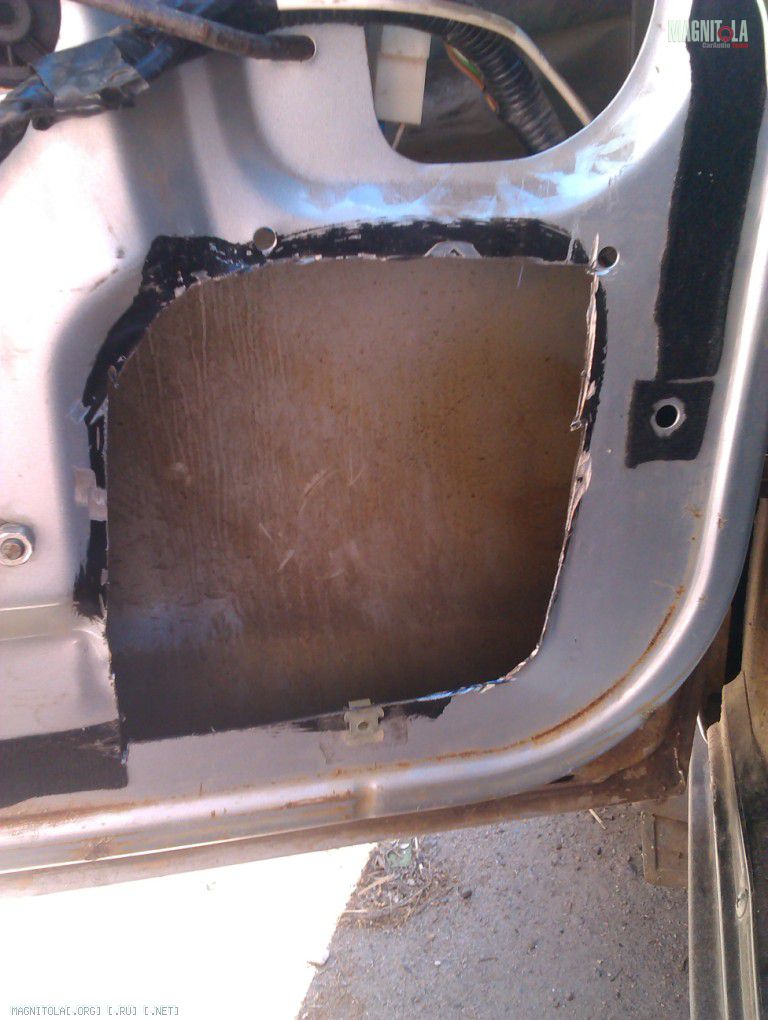 Техотверстия заклеил виброй 4 мм, поверх сплен 4 мм, на карту двери вибра 2 мм, и сплен 4 мм, по периметру обшивки битопласт