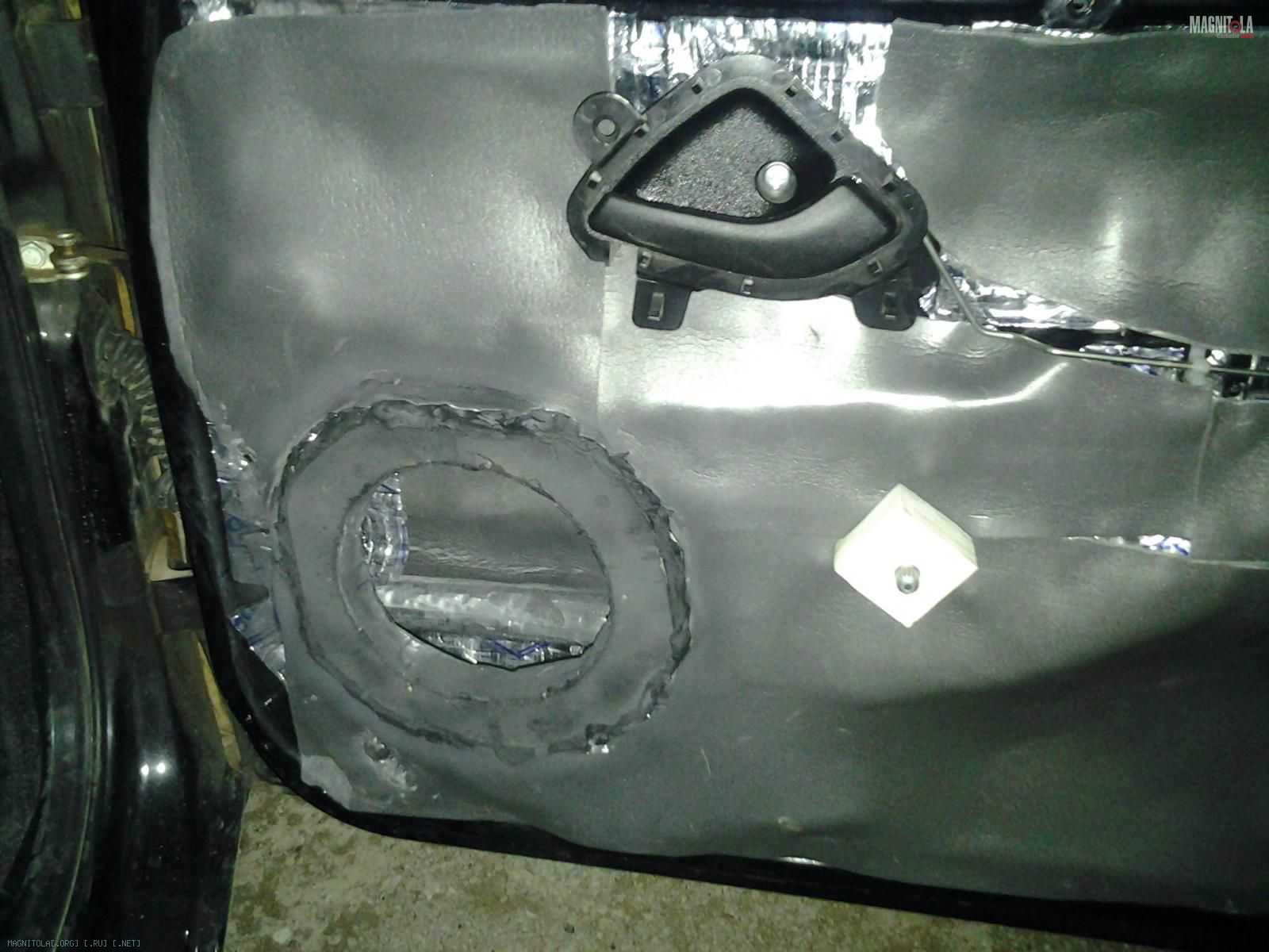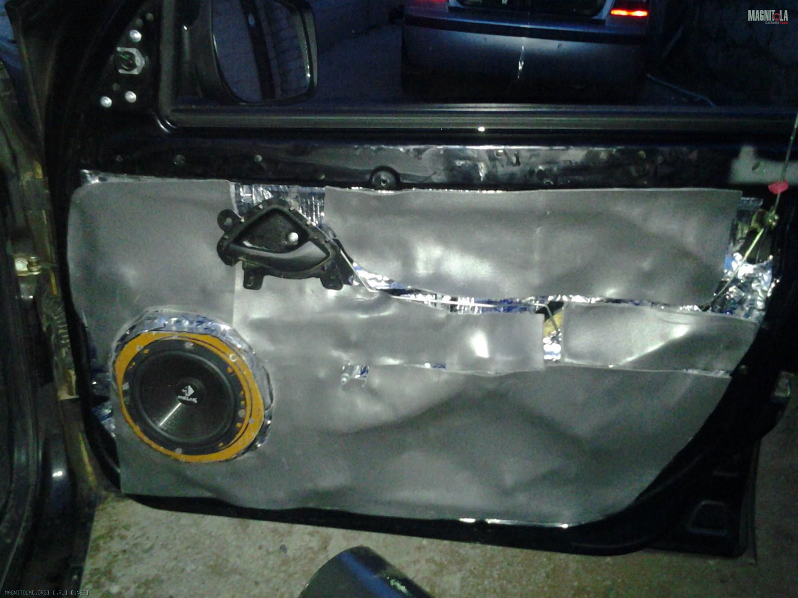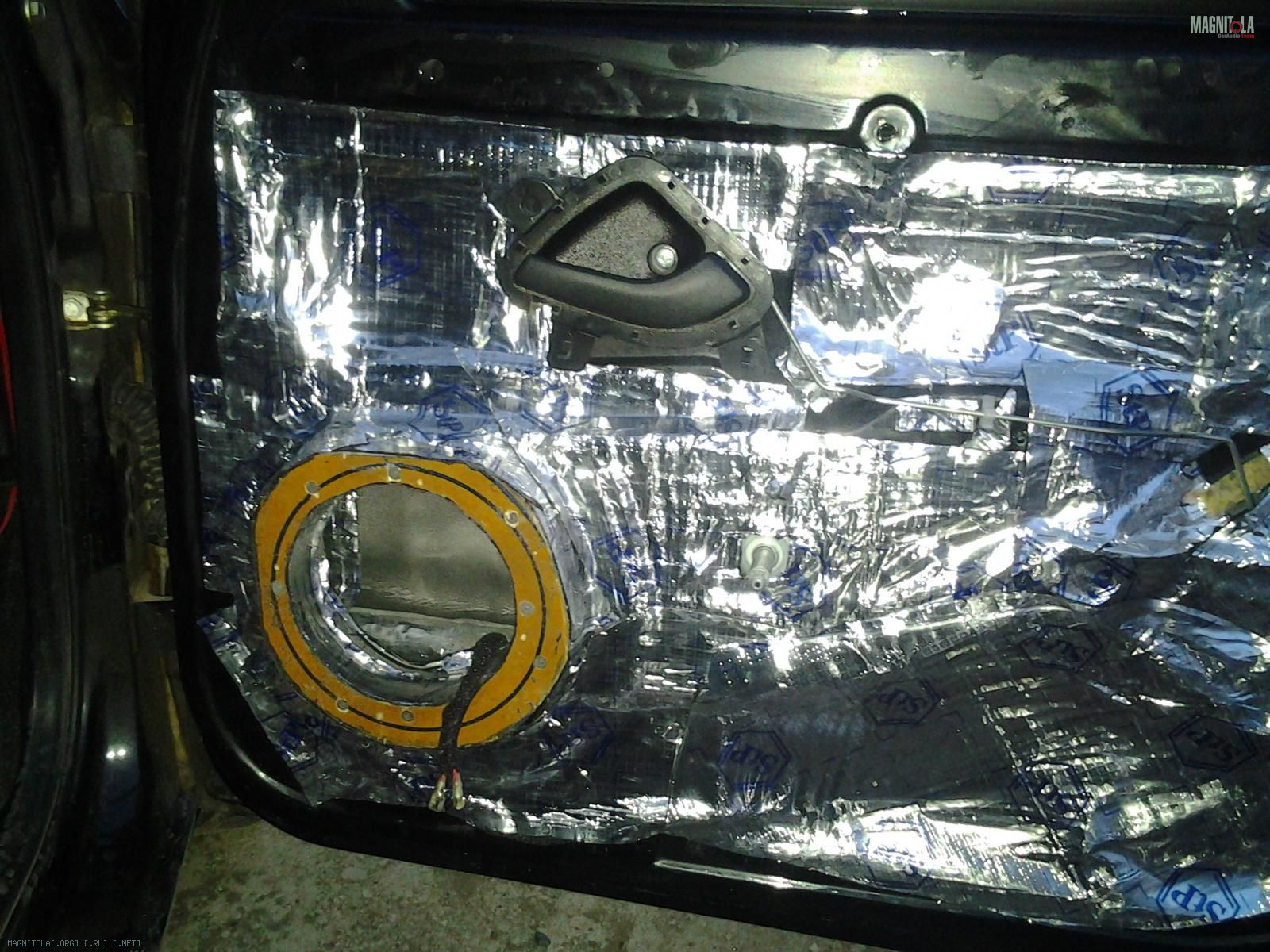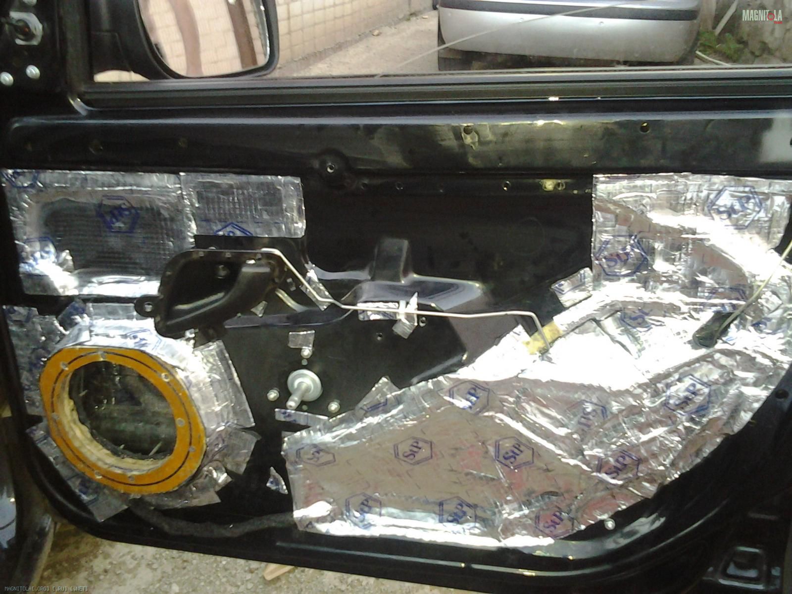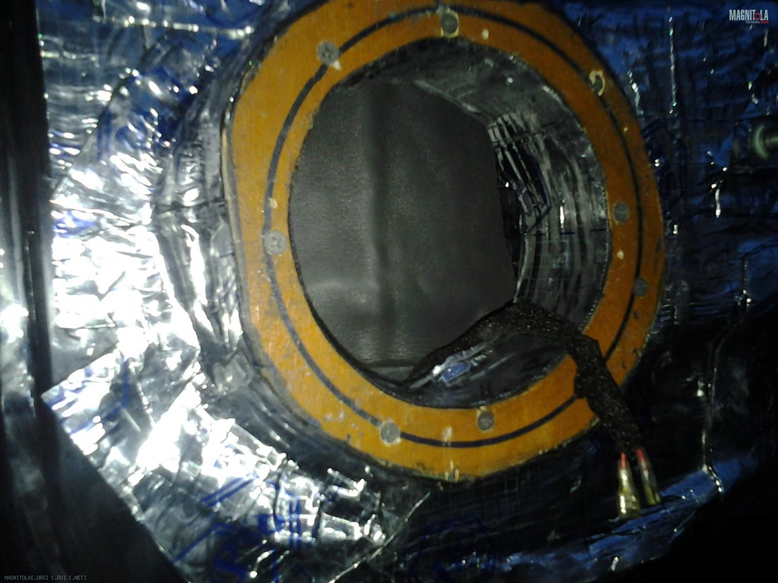 Изнутри я сплен клеить не стала,ограничившись небольшим куском непосредственно за магнитом динамика. Для чего это делают я не совсем, конечно,понимаю,но пусть будетЖ)
