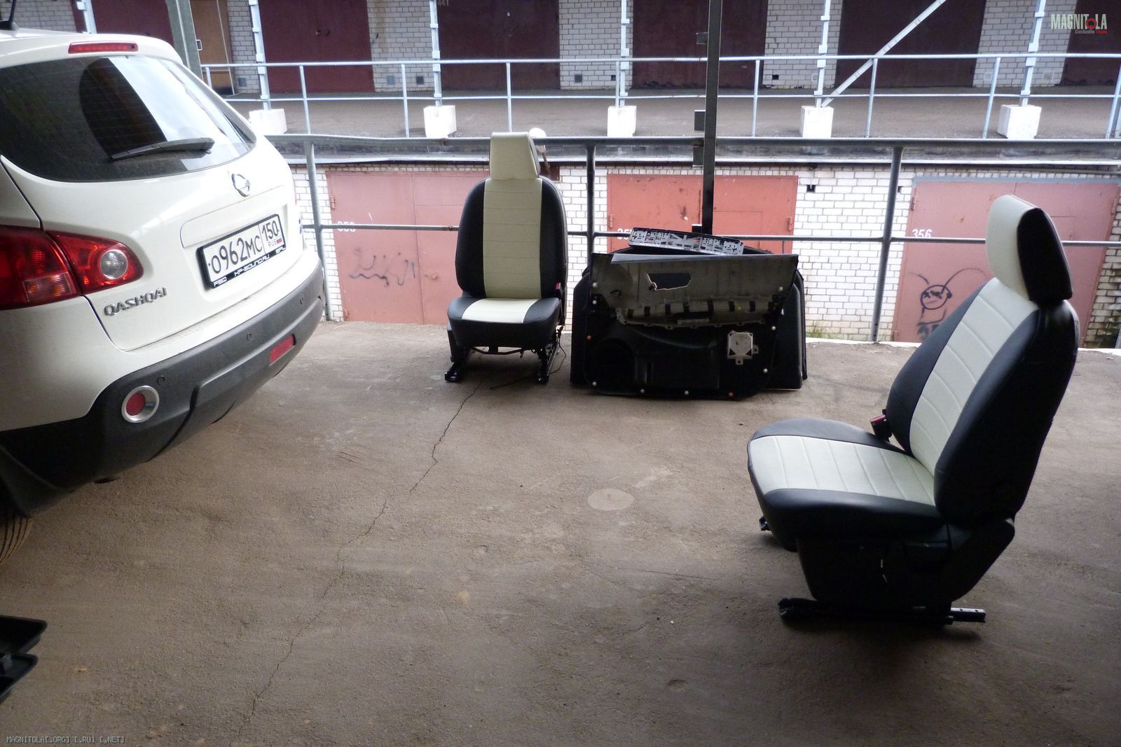 И наконец принёс свои творения - это были какие-то деревянные штуковины, которые Мастер аккуратно обтянул материалом, очень схожим на мой, поэтому подики органично вписались в интерьер :g-good: А поскольку Волшебник учёл все нюансы, они идеально уместились под сиденья.