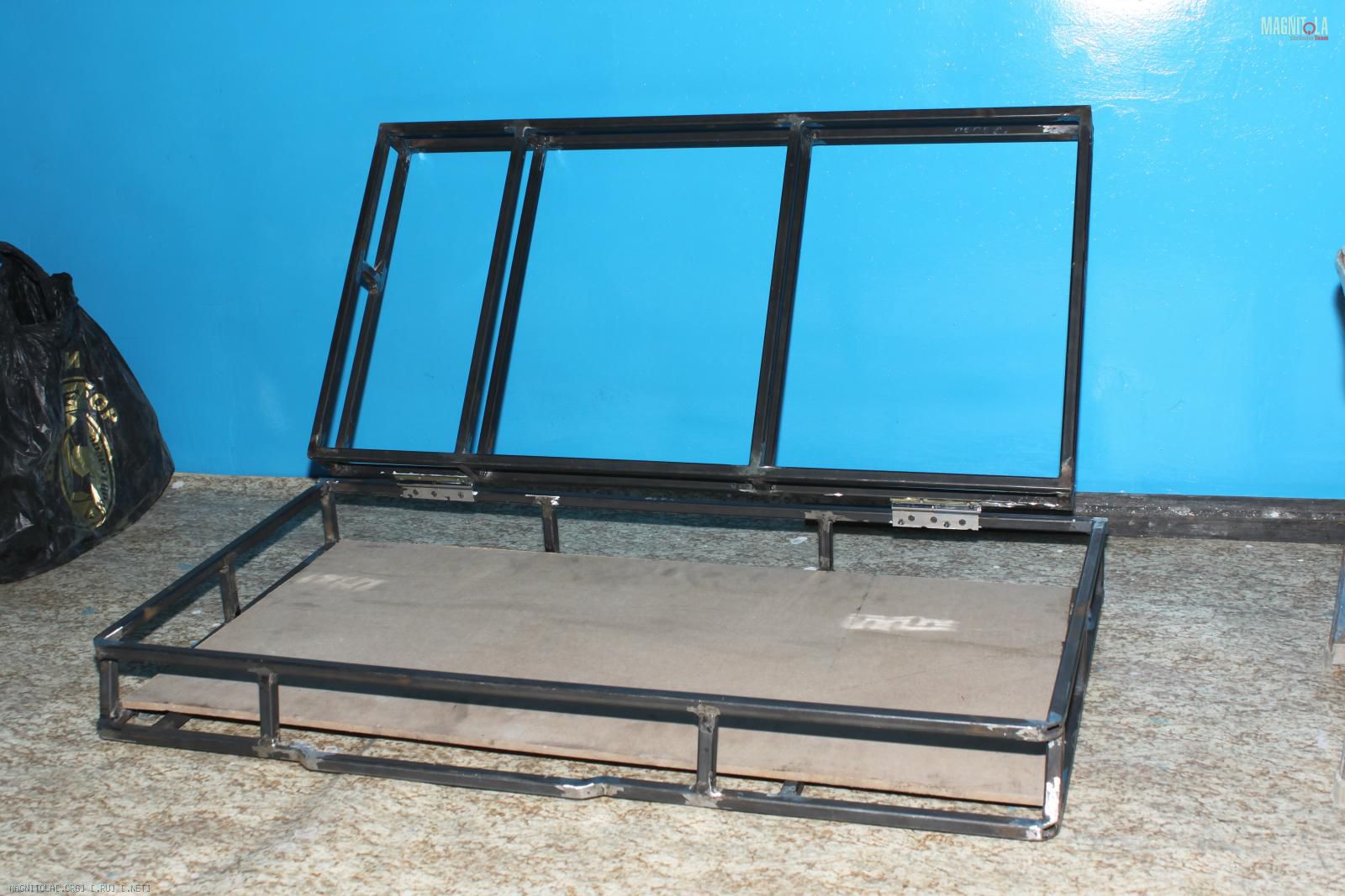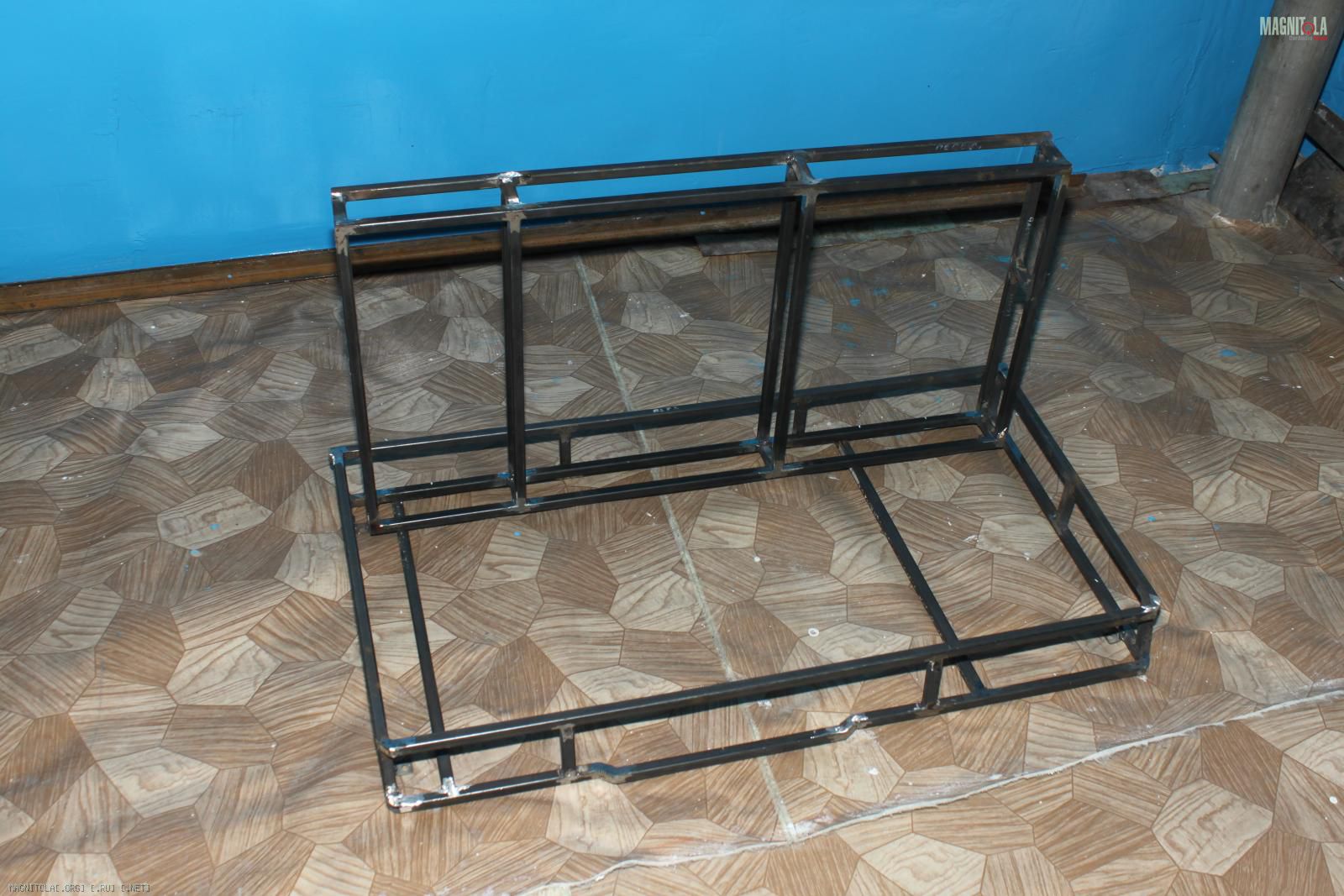 ну предворительно покрасив метал, и прикрутил пол из мдф, чтобы соблюсти все зазоры.