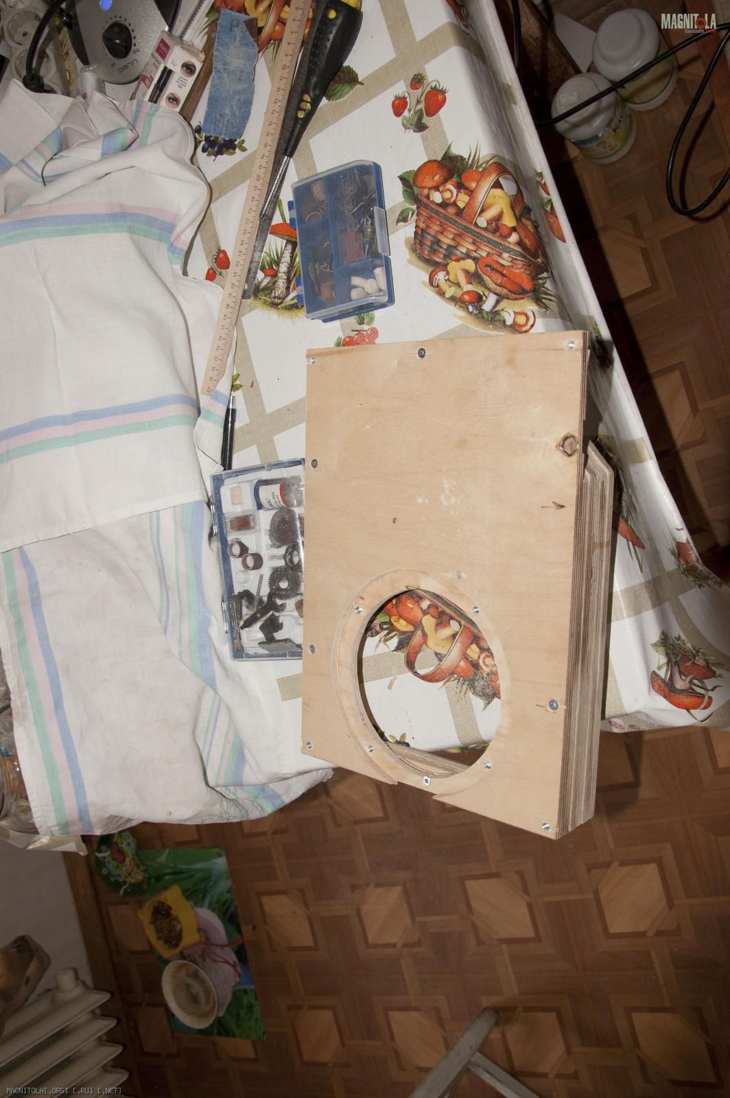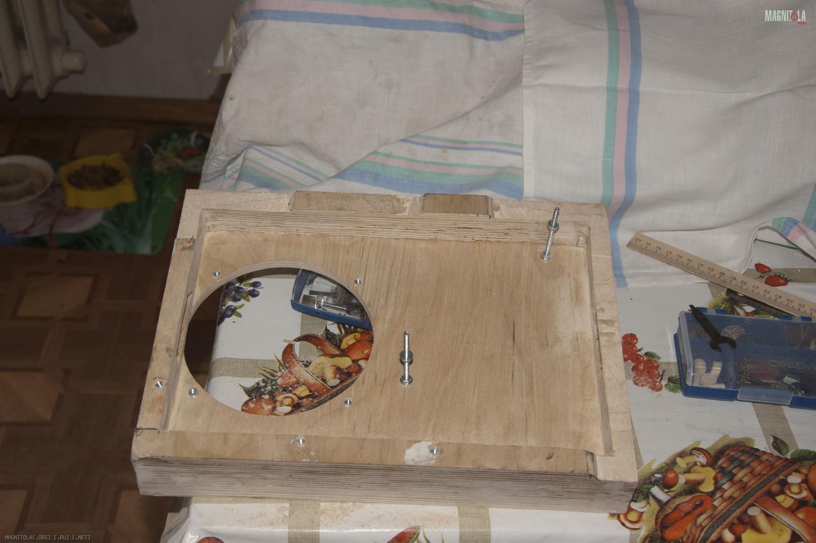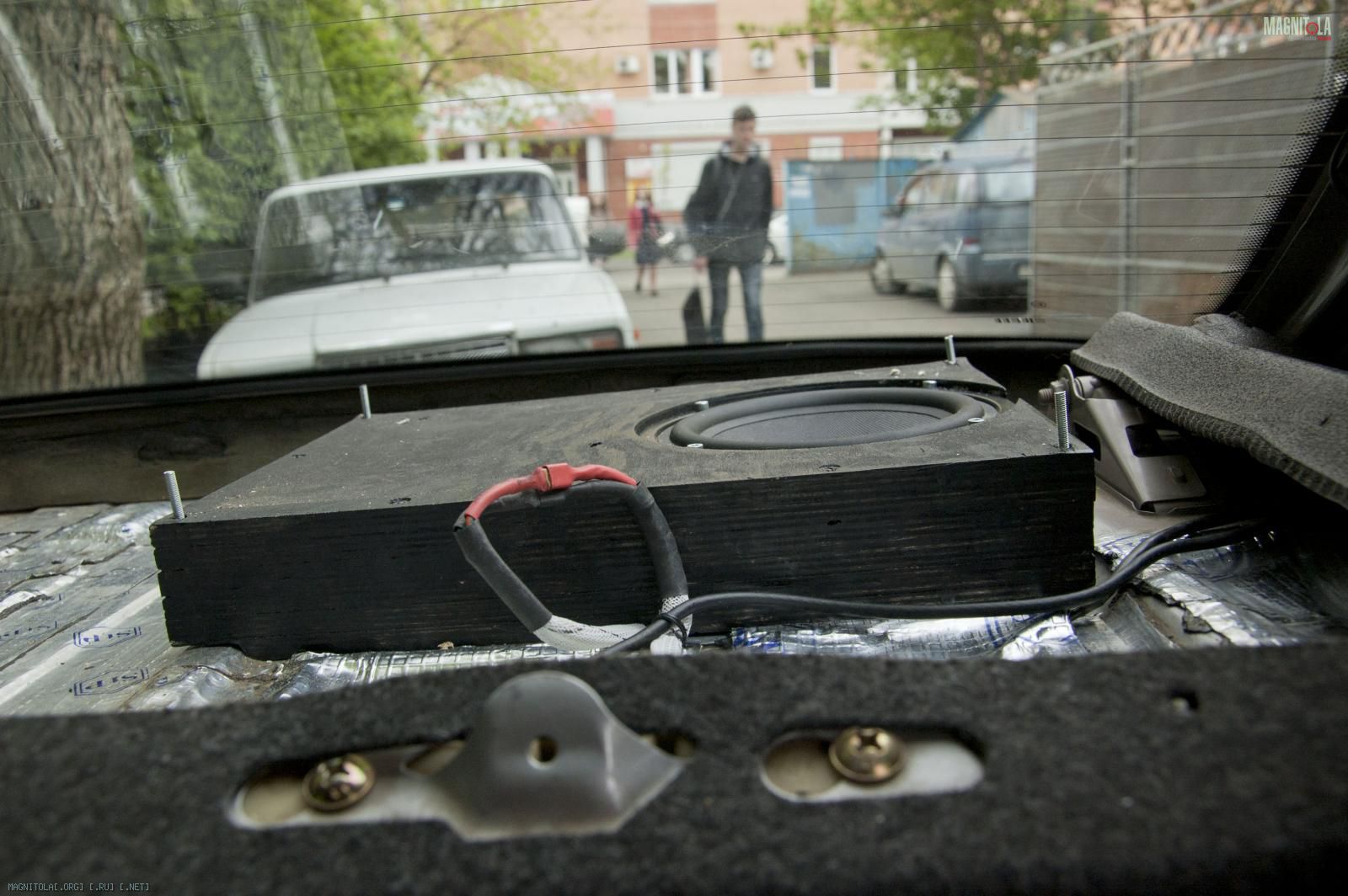 Сабовое звено системы строится на 2 динамиках по 170см. И к ним в полке из фанеры были построены подиумы одной из целей которых было поставить динамик максимально высоко. Сразу чтобы не возникало вопросов напишу что делать саб в багажник совершенно не хотелось. И было желание сделать максимально скрыто.