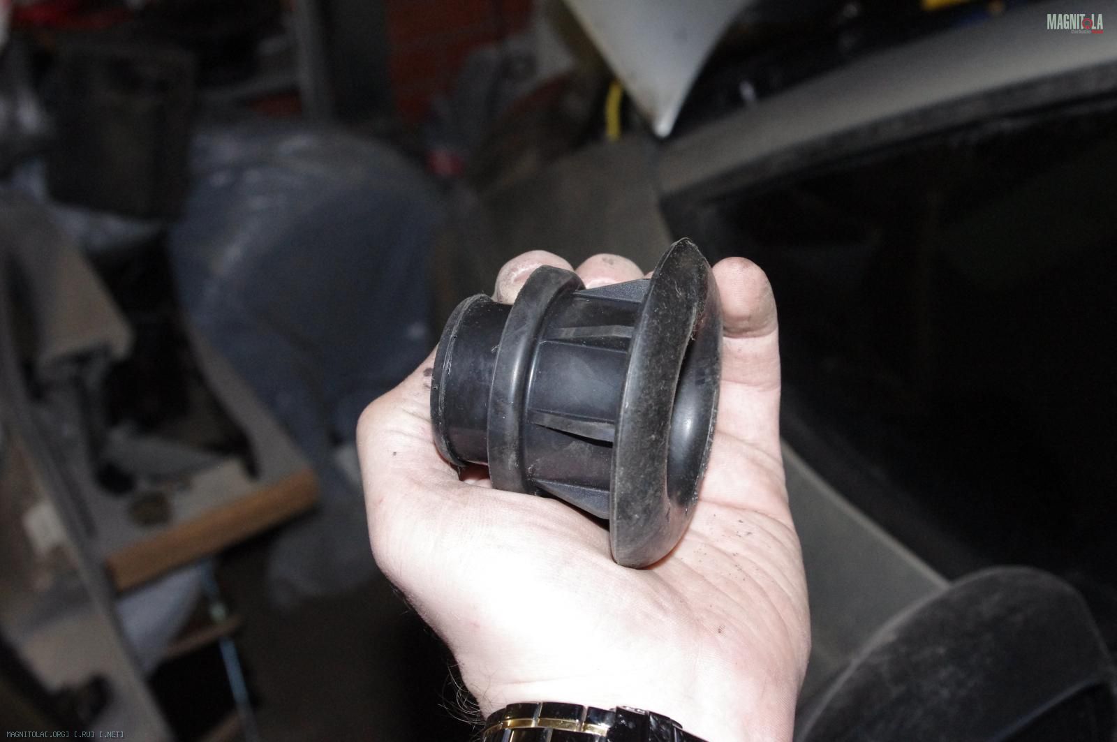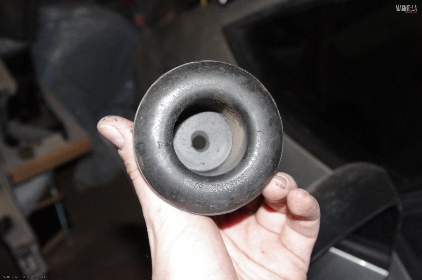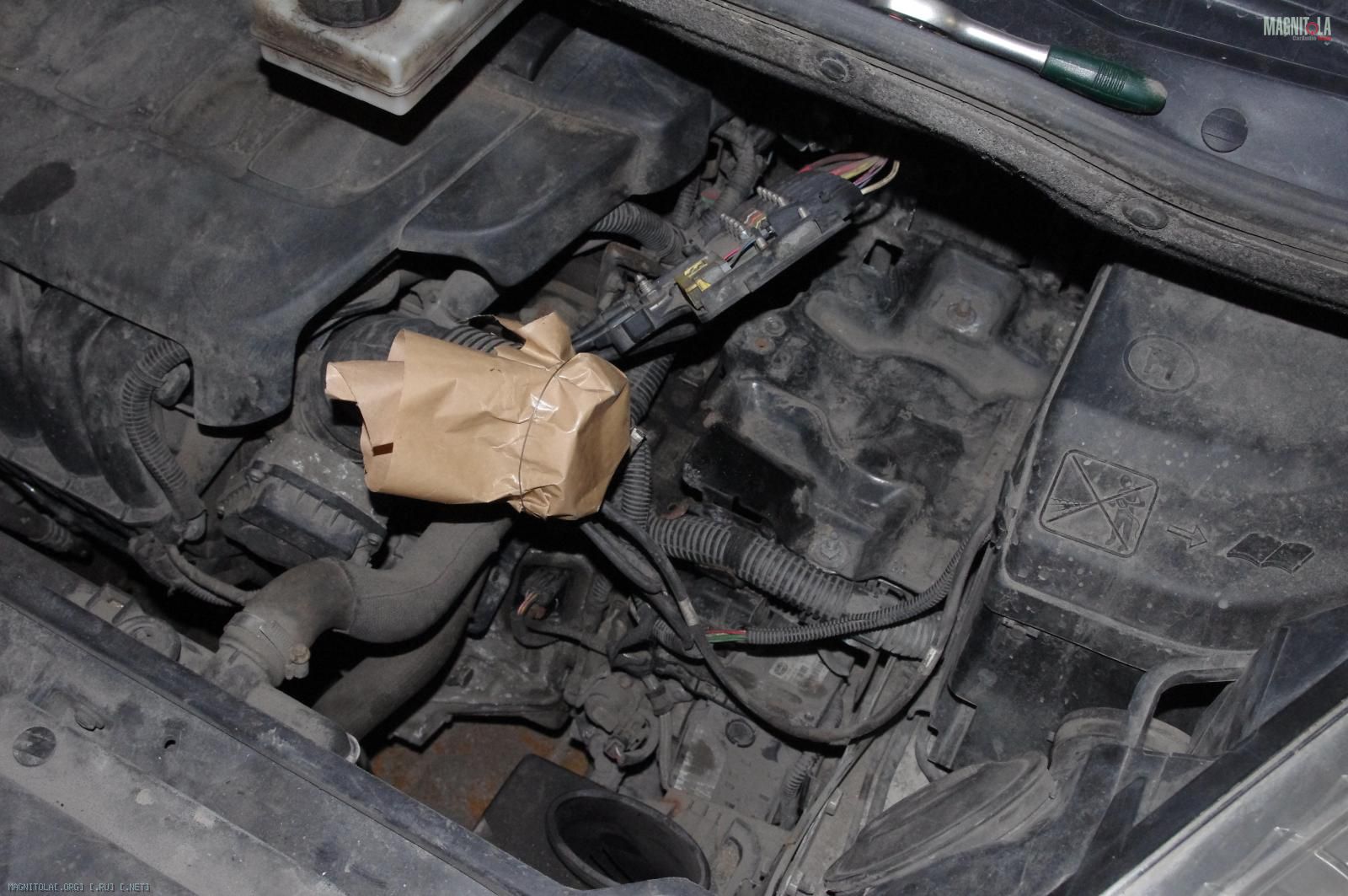 Параллельно я занимался облагораживанием прохода кабеля питания в моторный отсек. Под капот я заходил через отверстие под педаль сцепления. Чтобы защитить кабель от контакта с металлическими кромками, используем штатную заглушку
