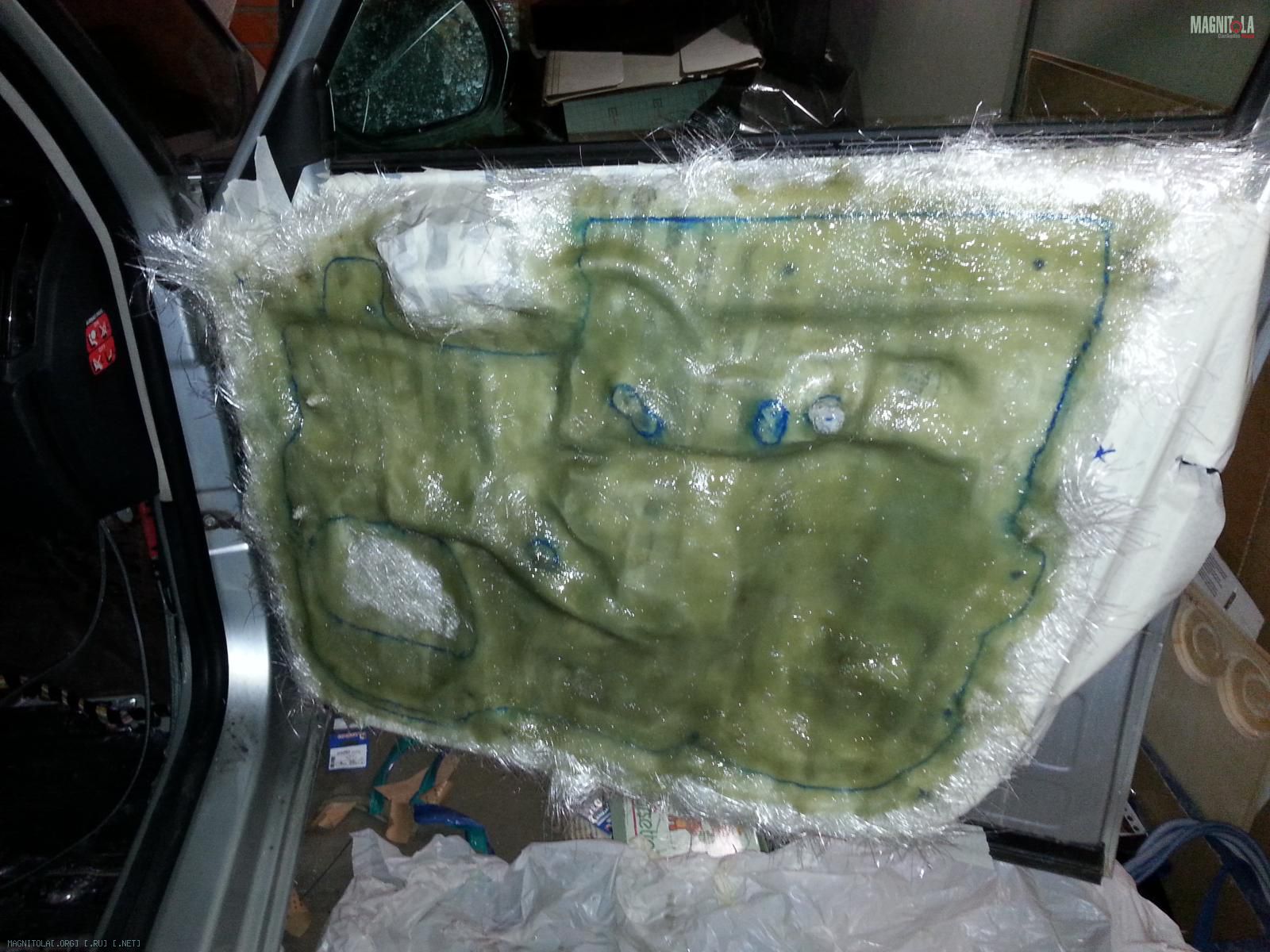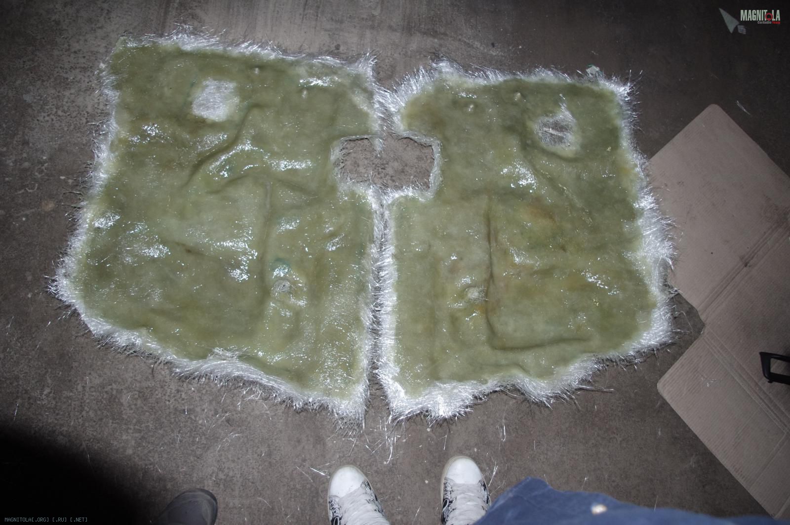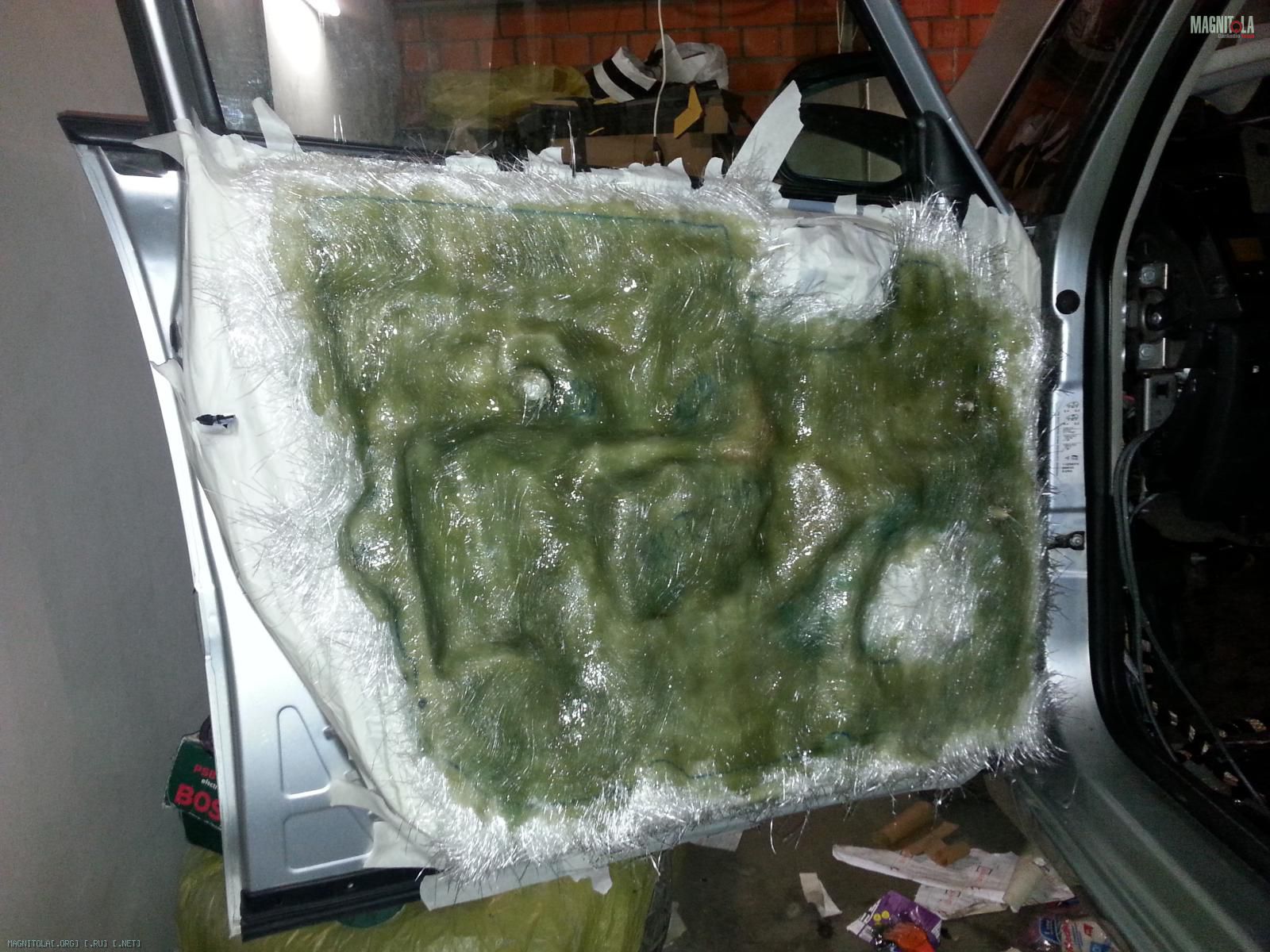 А потом проделали то же самое с правой дверью и засмолили последний, укрепляющий слой уже на полу