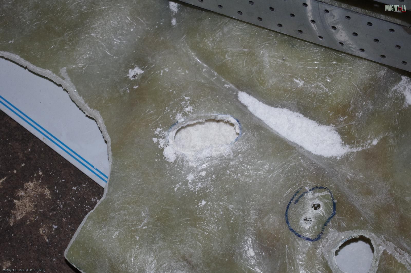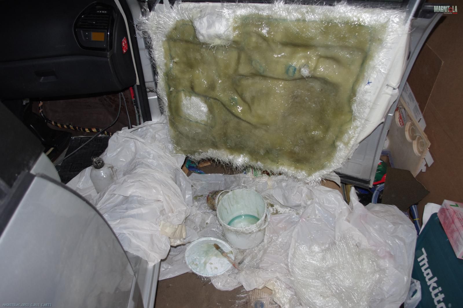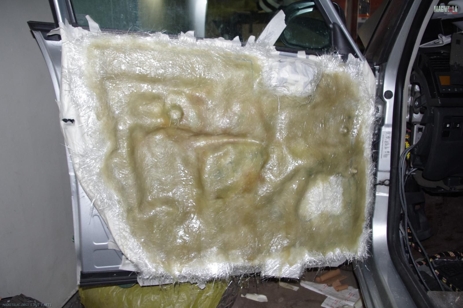 А потом проделали то же самое с правой дверью и засмолили последний, укрепляющий слой уже на полу