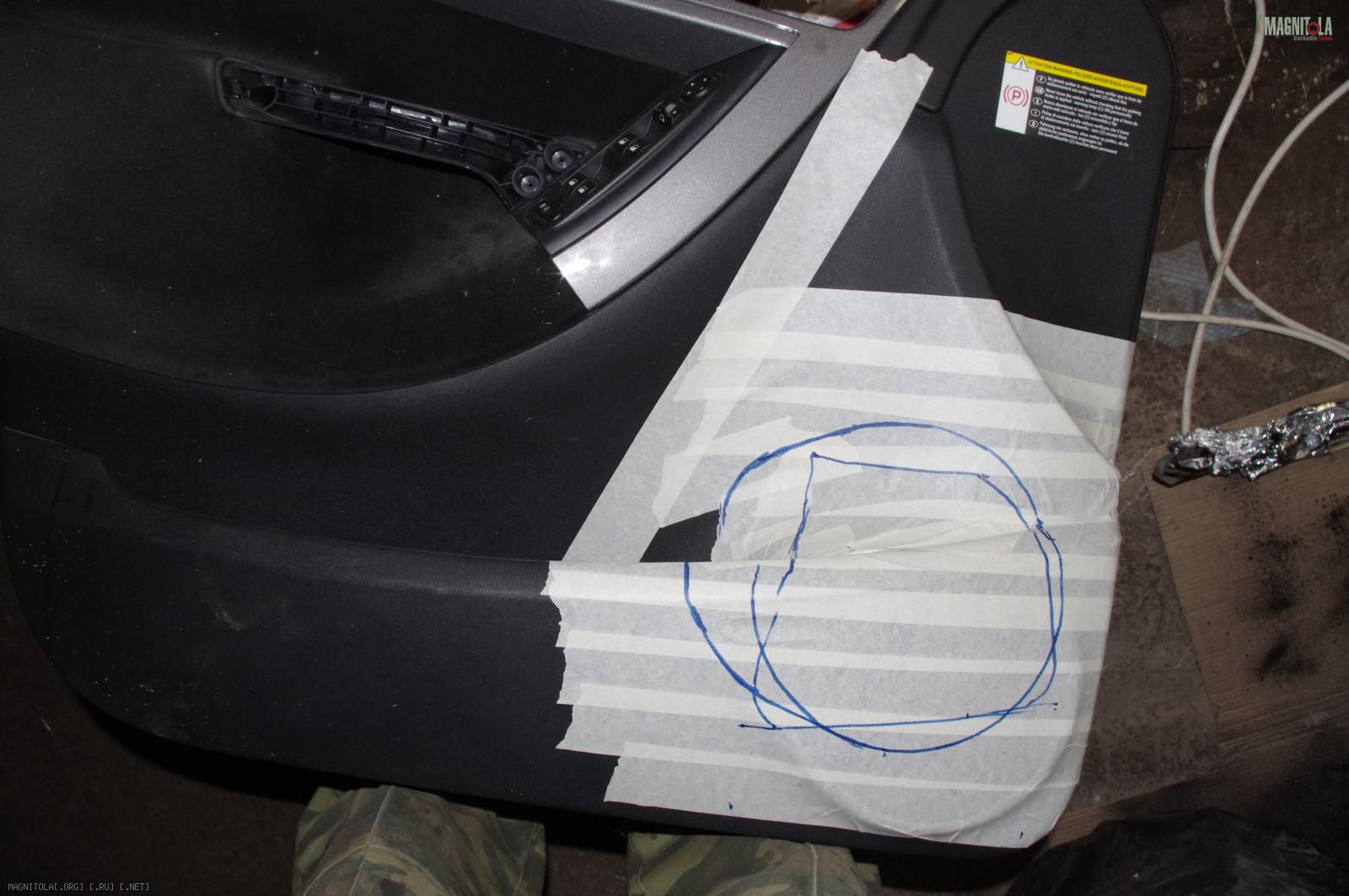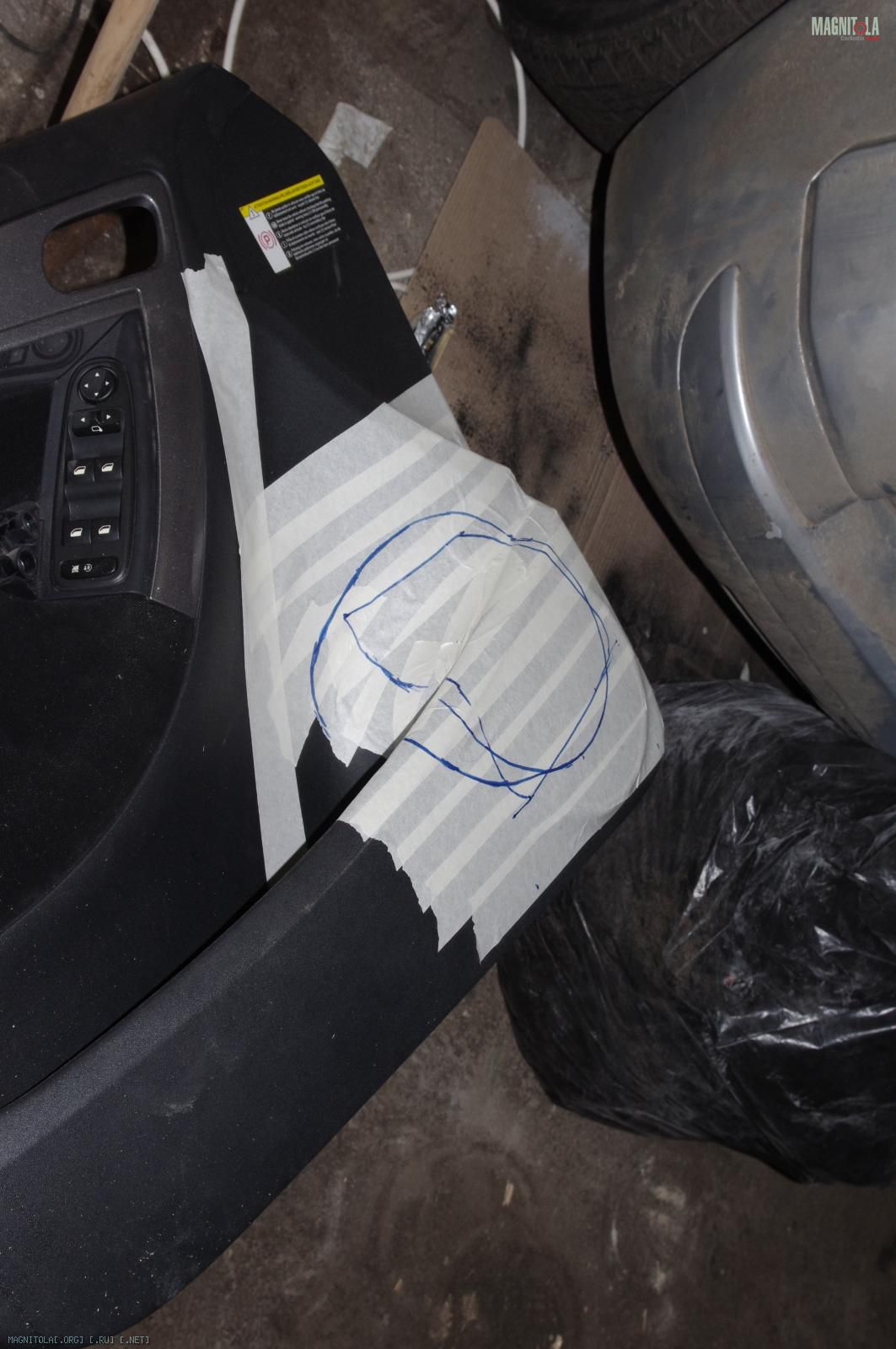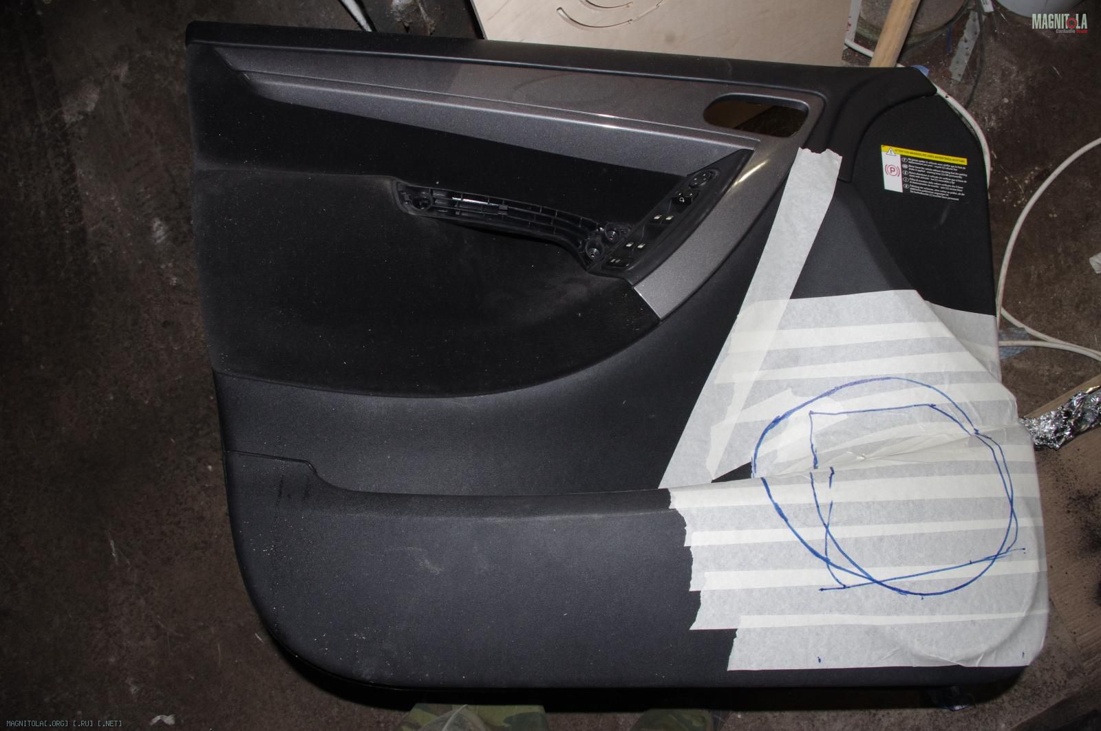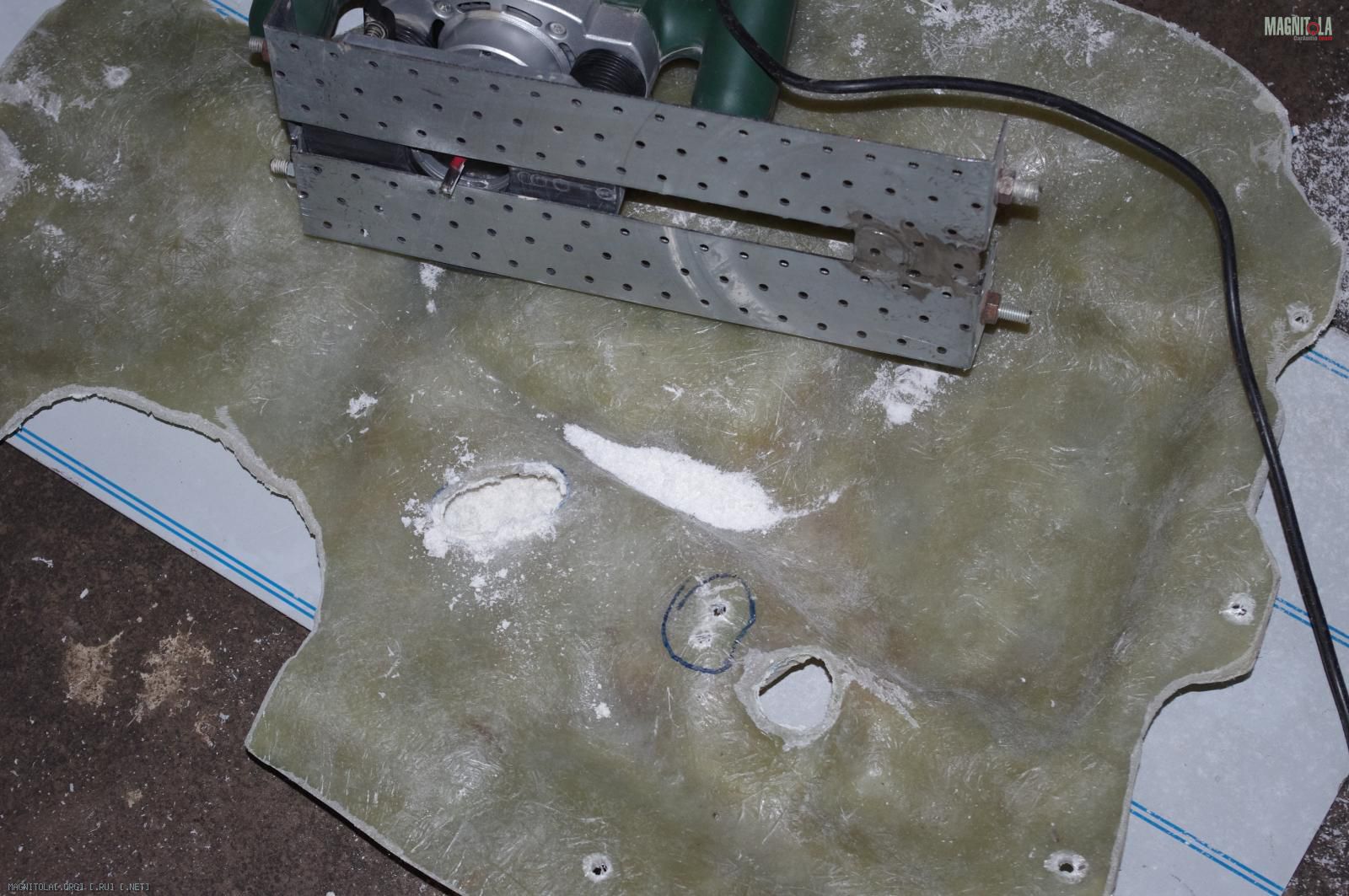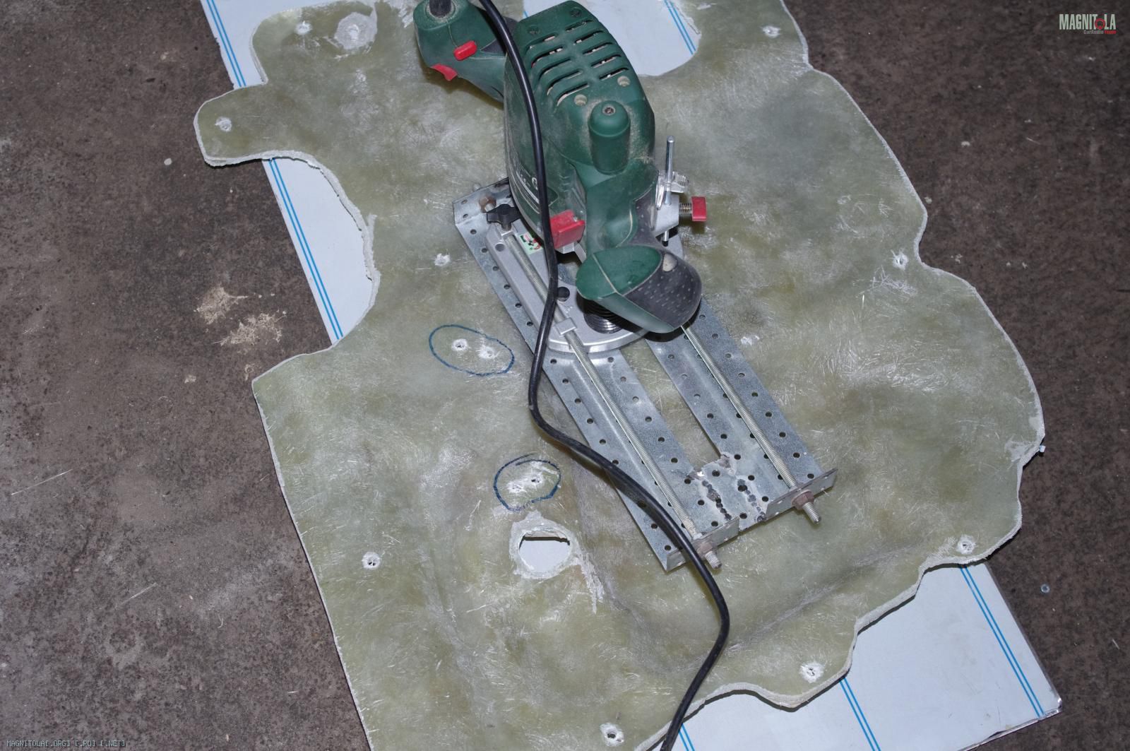 размечаем очередные отверстия, необходимые для крепления обивок, вывода проводов и прочего, берём фрезер и аккуратно вырезаем