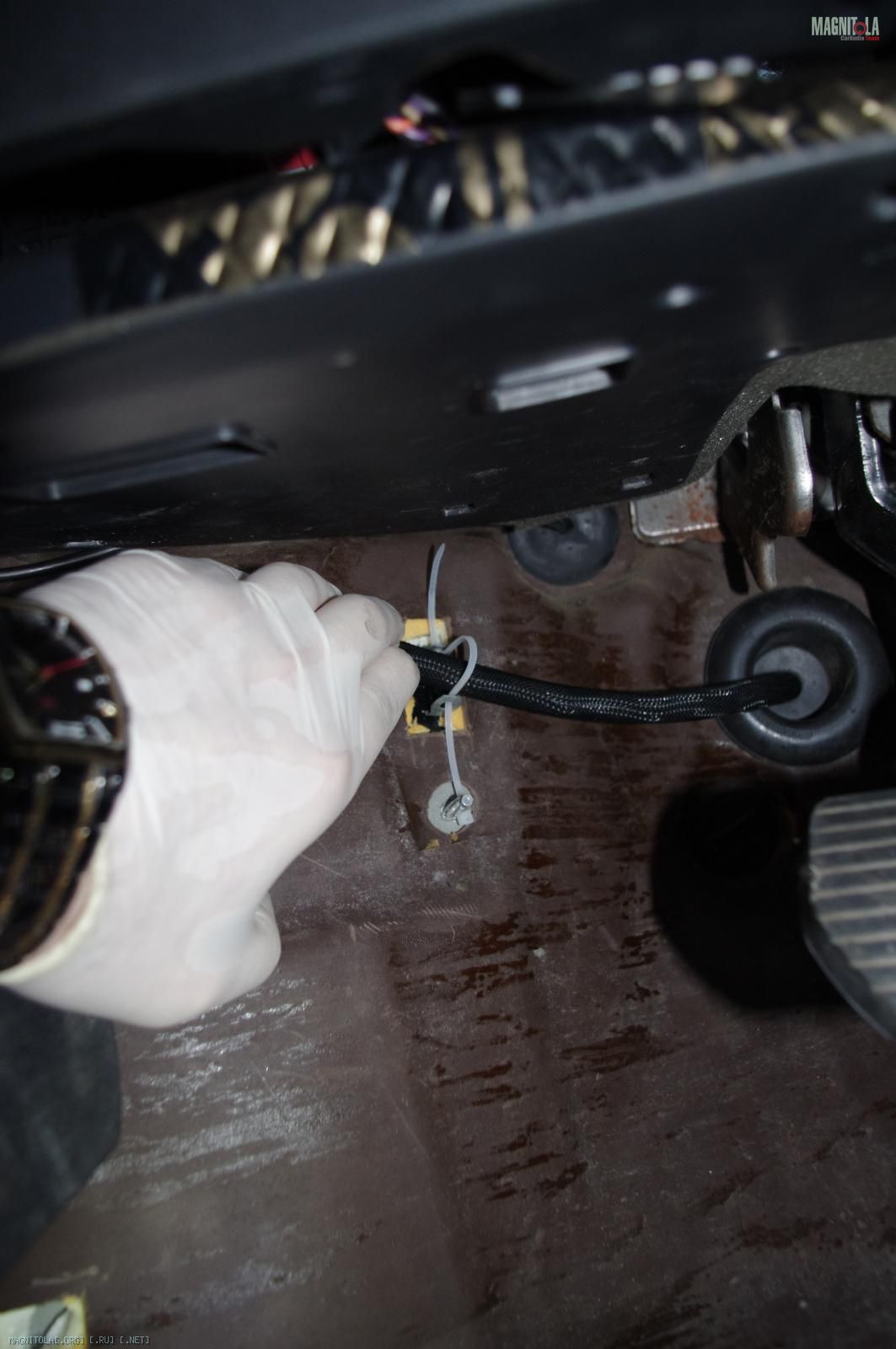 вот так выглядит путь плюсового кабеля питания системы в районе ниши для ног
