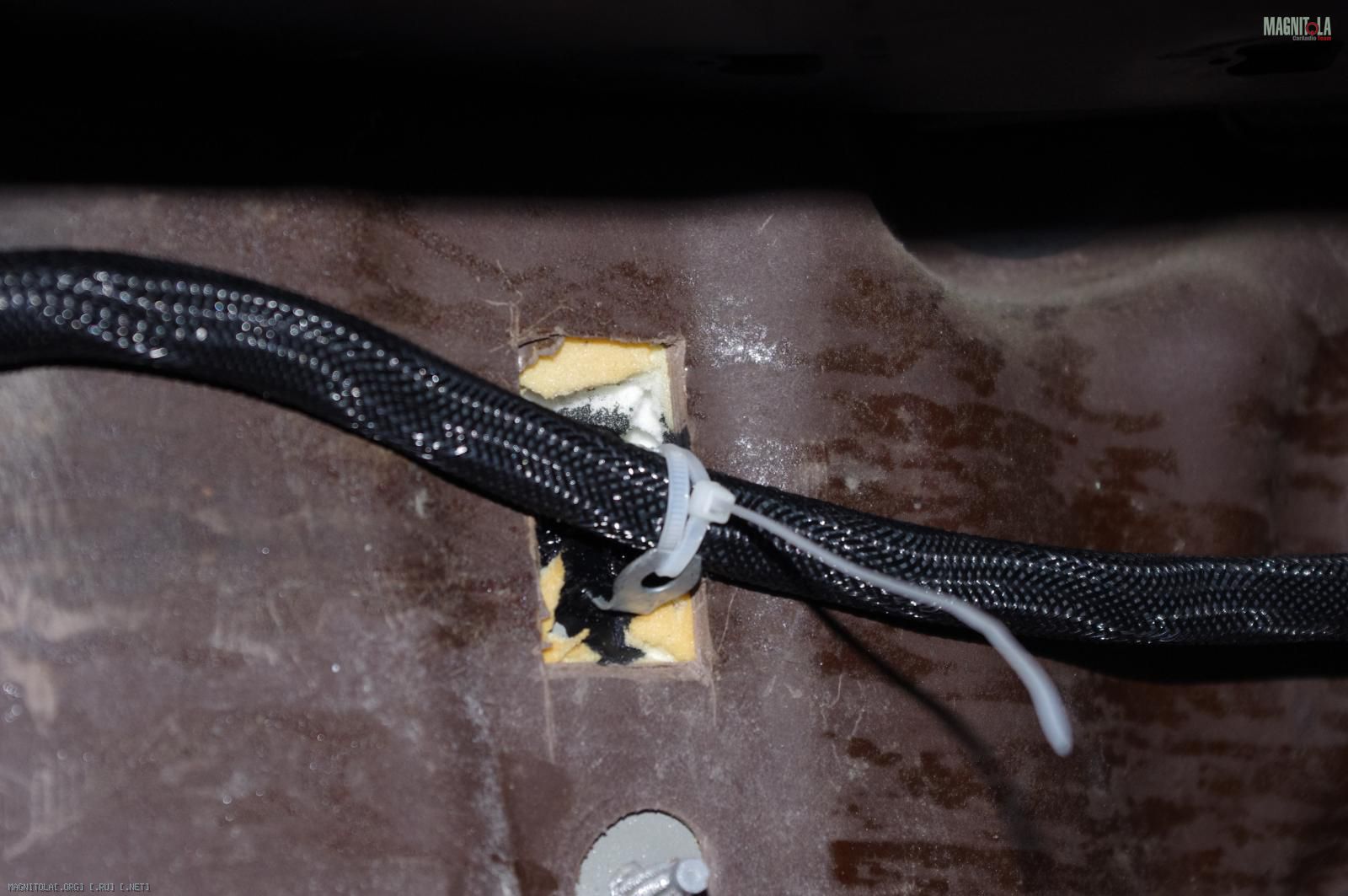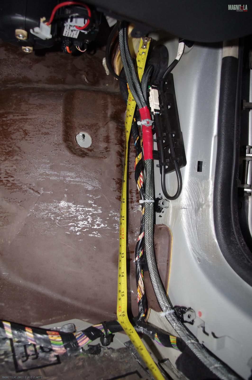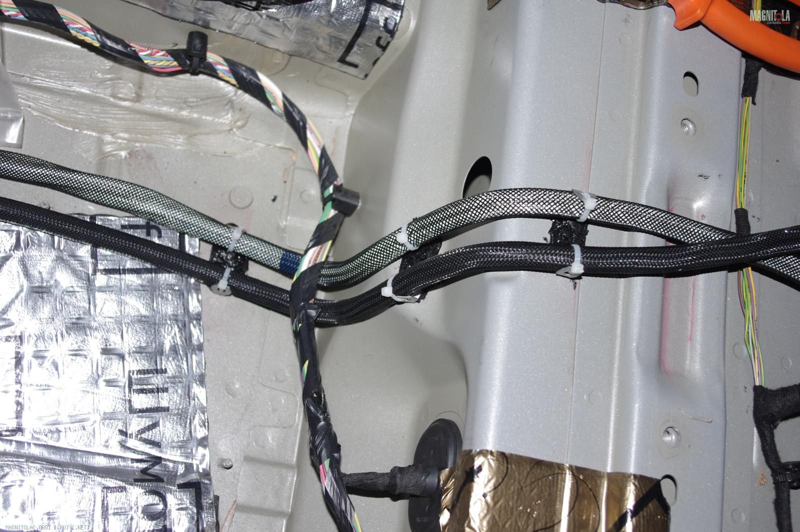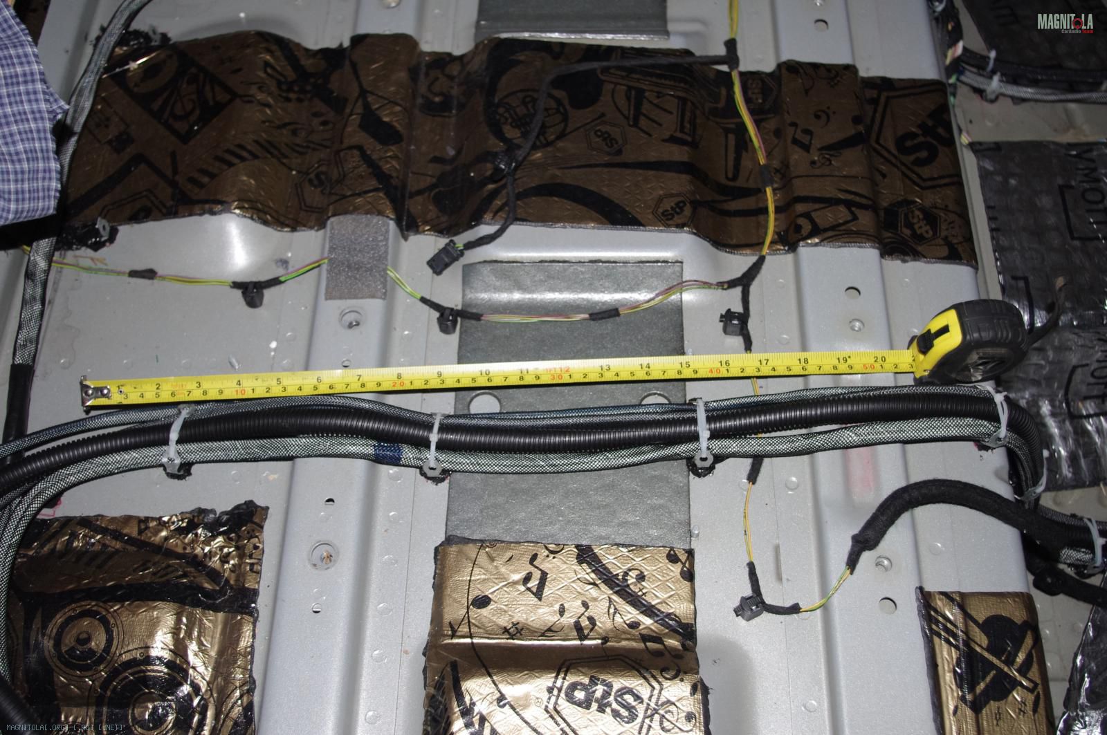 Вот так силовой и акустический кабель левого борта идут вдоль порогов и по полу к багажнику (классика с рулеточкой:)):