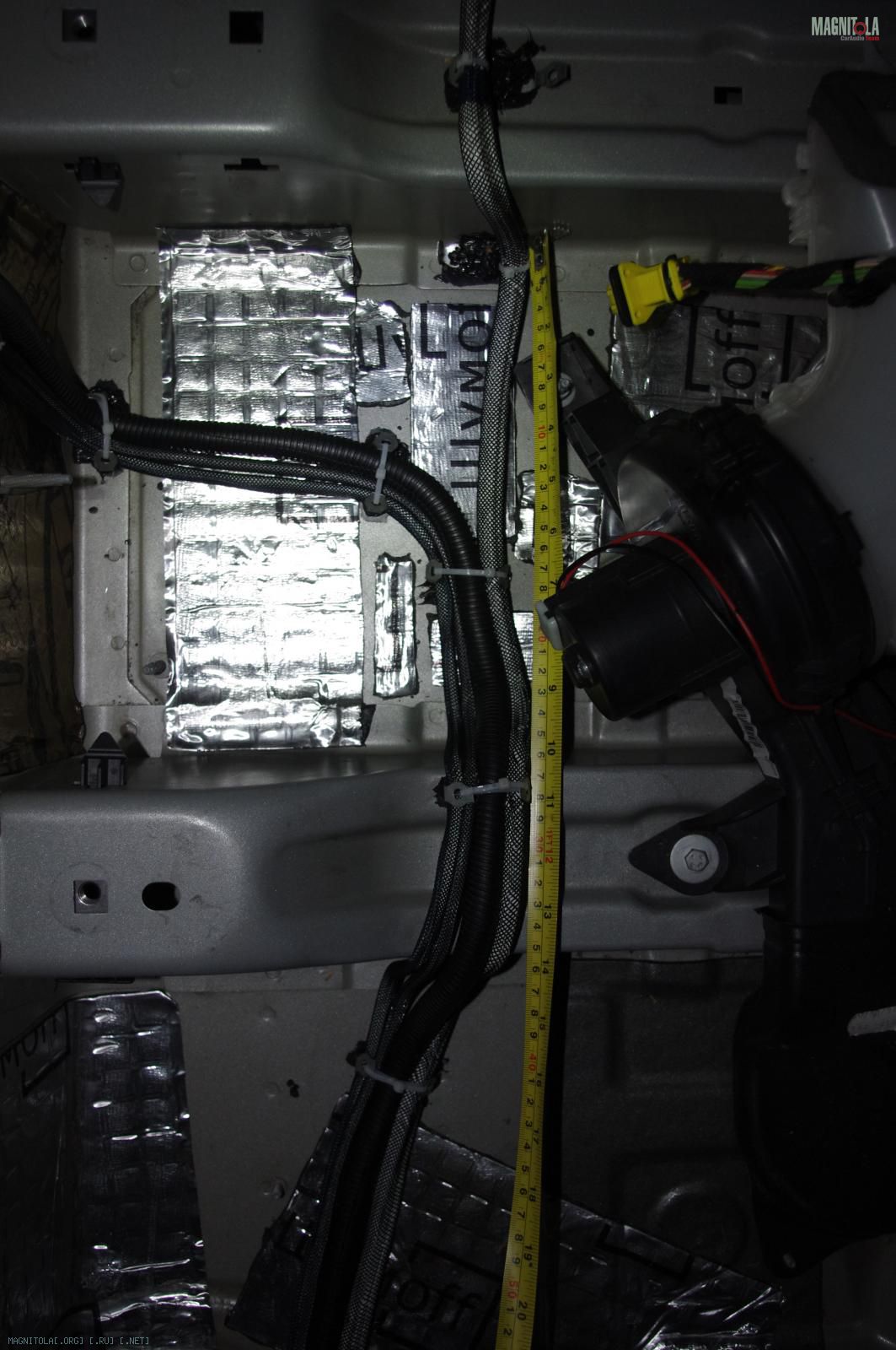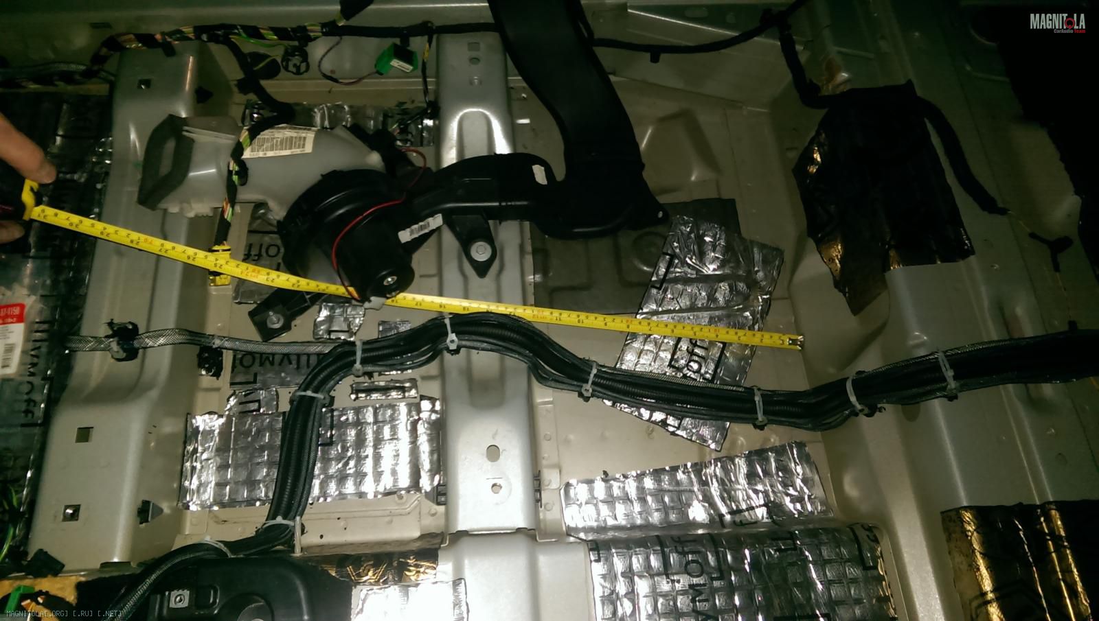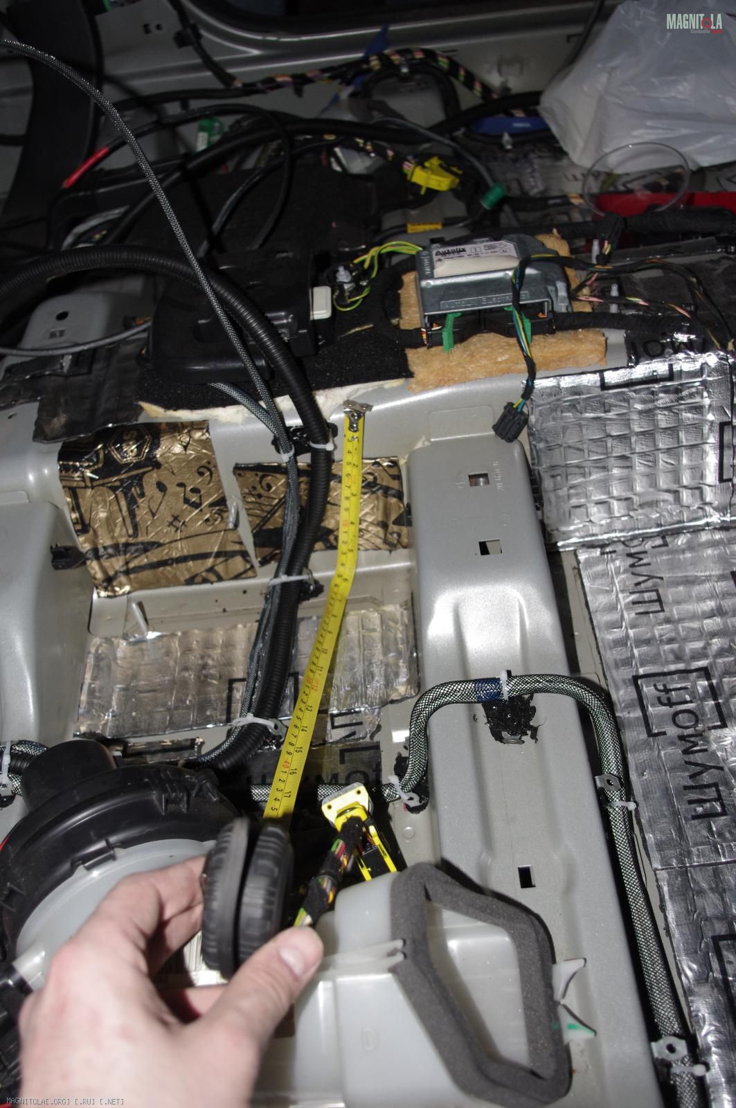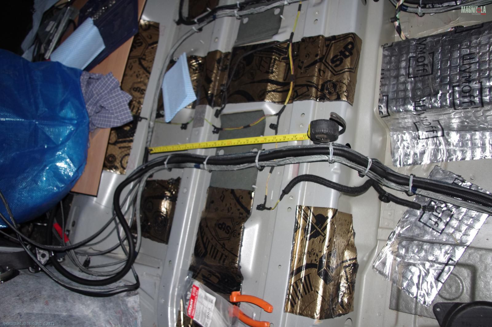 Вот так силовой и акустический кабель левого борта идут вдоль порогов и по полу к багажнику (классика с рулеточкой:)):