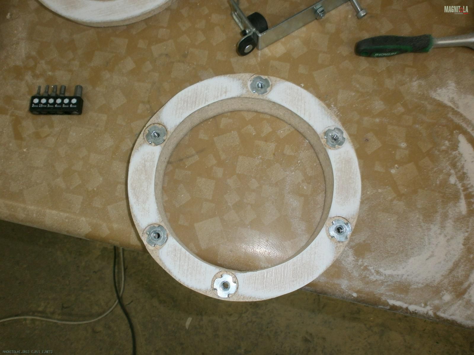 далее на эту поверхность приклеена и стянута саморезами вторая 32мм часть. На лицевой части снята фаска с внешнего диаметра,,,потом ясно станет зачем,,,