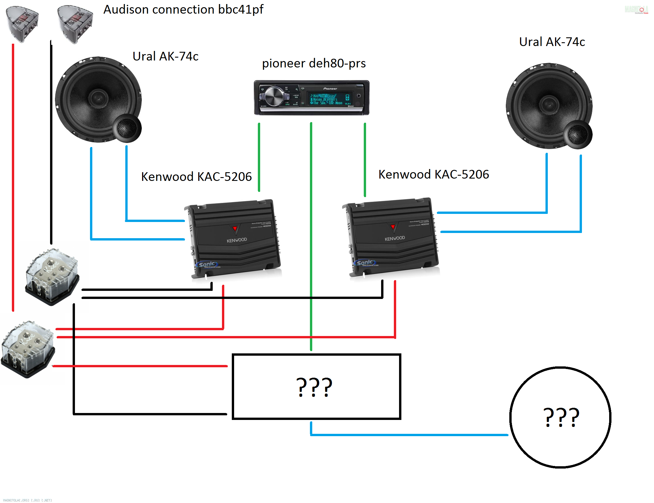 Pioneer DEH80-prs, межблоки спаял и микрофонного кабеля Canare.