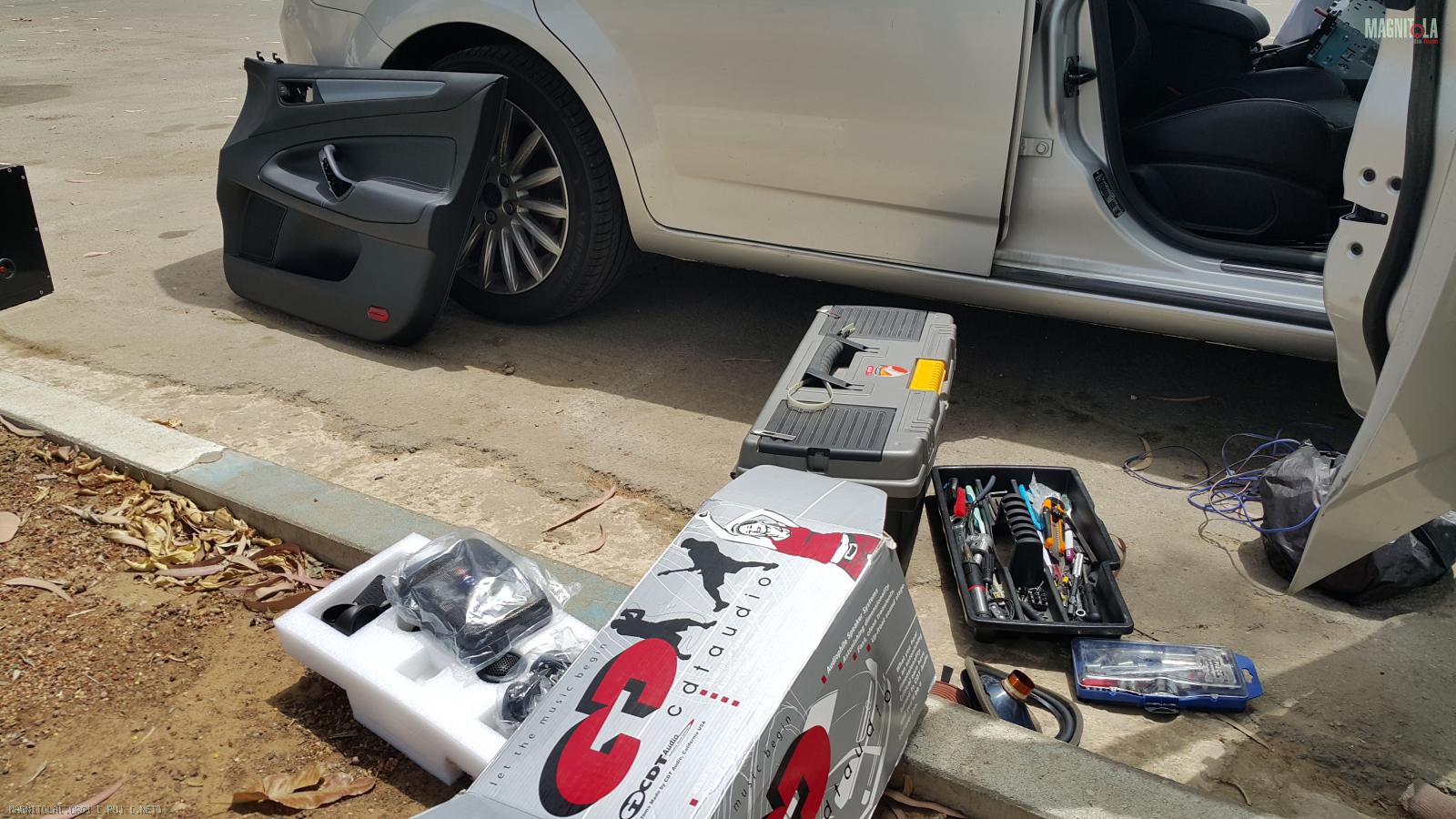 "Акустическая проводка штатная?" (со стороны кузова стоит заглушка, через нее проходит штатный жгут, выбить эту заглушку - тот еще ад)