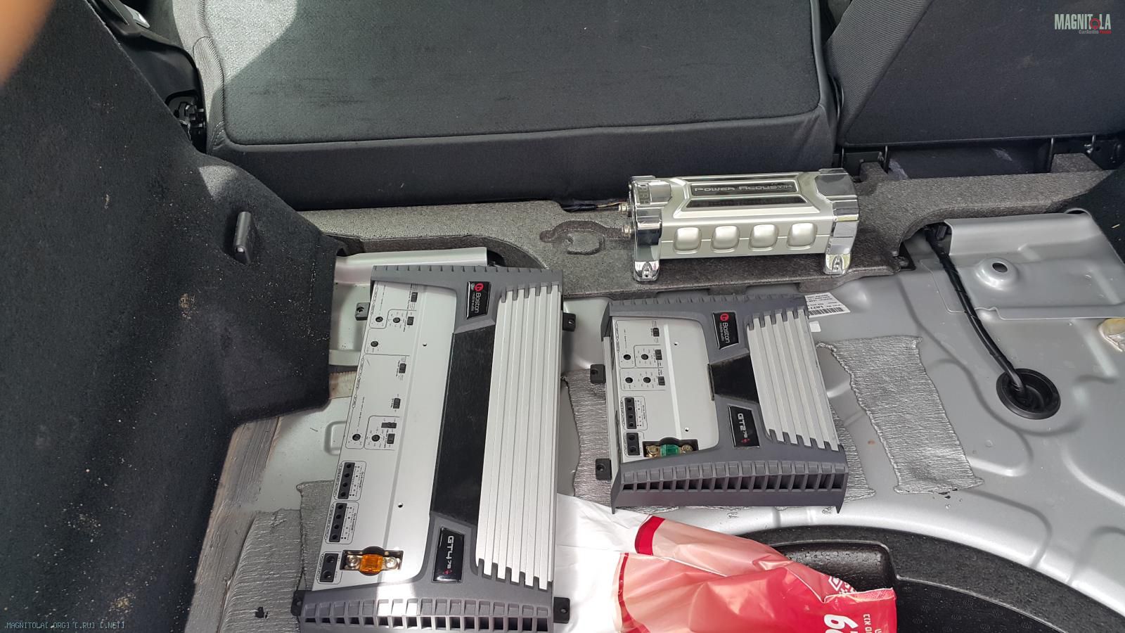"Сила" как ты описал проведена(слева).Акустические провода новые прокладывали(справа).Мид на штатной прокладке-и бас очень приличный(фронт),тыл пока штатные,но бас так себе.Саморезы уси держат прекрасно.А что лучше под сиденья чтоб ногами долбали и пылились?2 пары твитеров входят в комплект.Зайди на сайт фирмы и почитай про эту компоновку.Все дины от уся.Саб то второго уся.Кроссы у пассажира слева внизу за обшивкой.Штатные отключены.Если мало фоток я добавлю,напиши что сфотать.