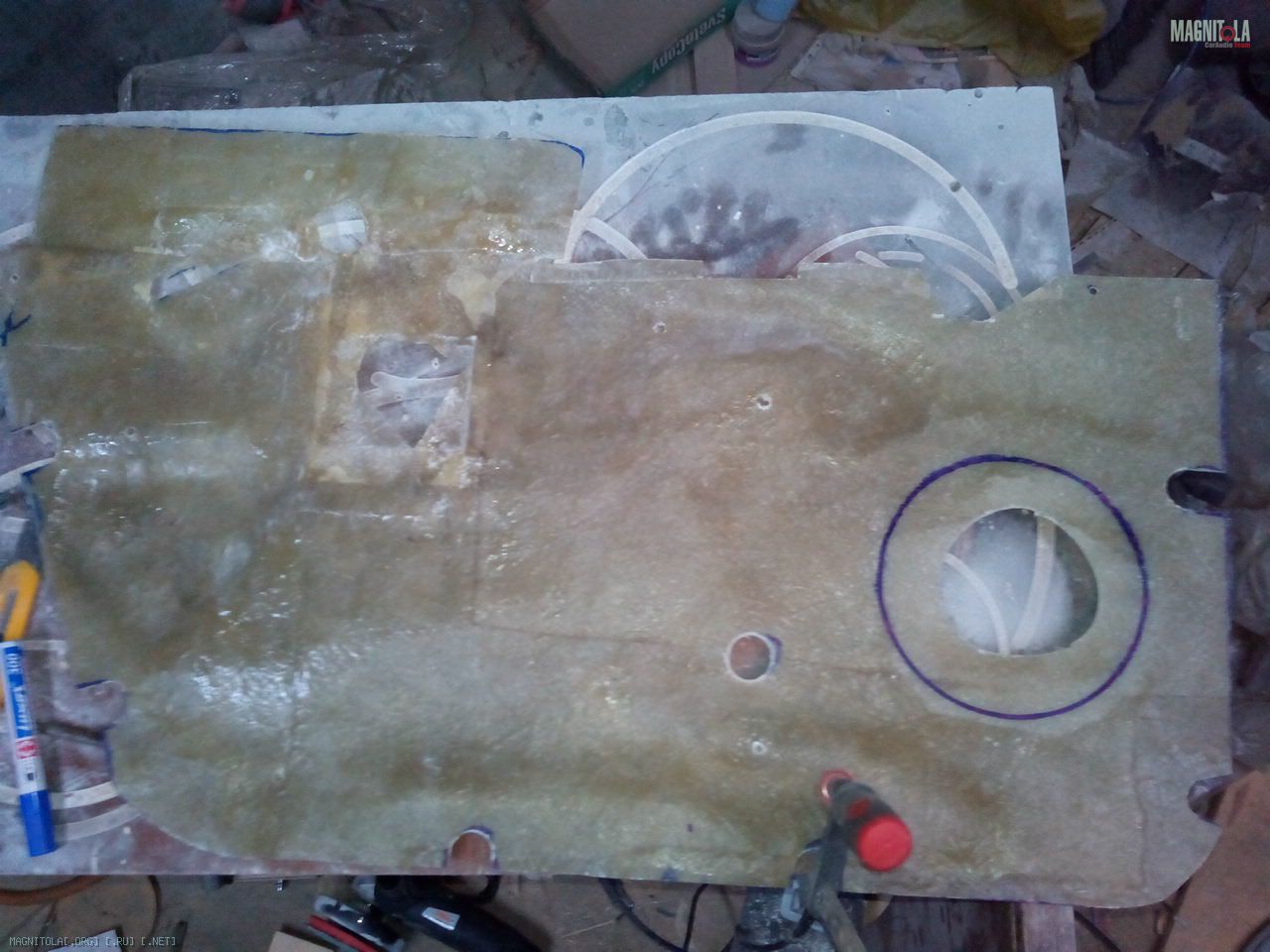 Вообщем то яичные кассеты от 10 яиц, по 5 штук в ряд...прополиэфирено и залито эфиром для монолитности конструкции, приэтом "кассета" имеет одну сторону "пирамидок" ровную,другую волнистую (ну производитель касеты такими делает), так вот "волнистая" сторона и будет "обращена" к динамику.