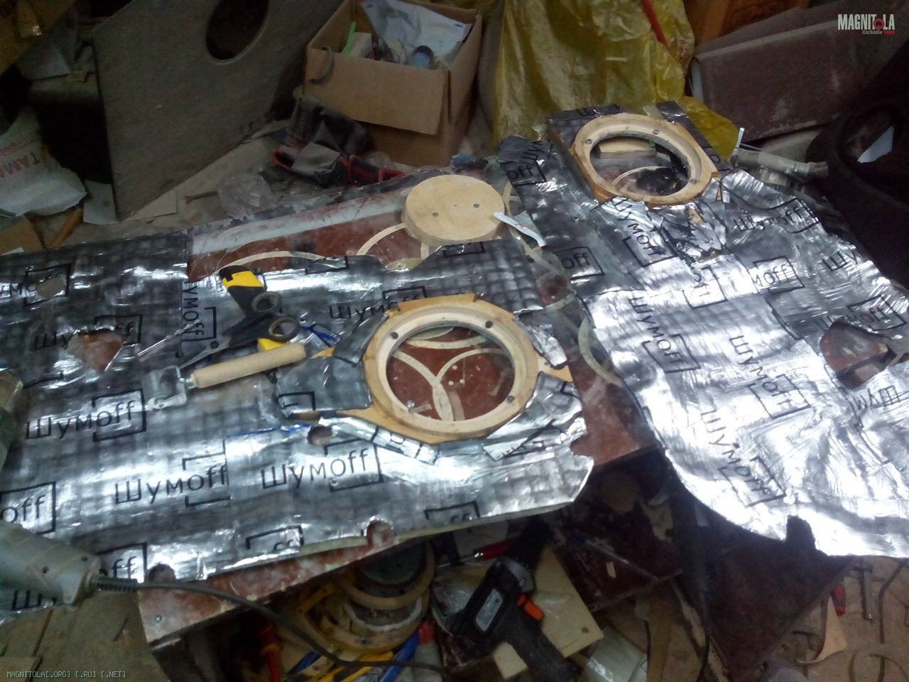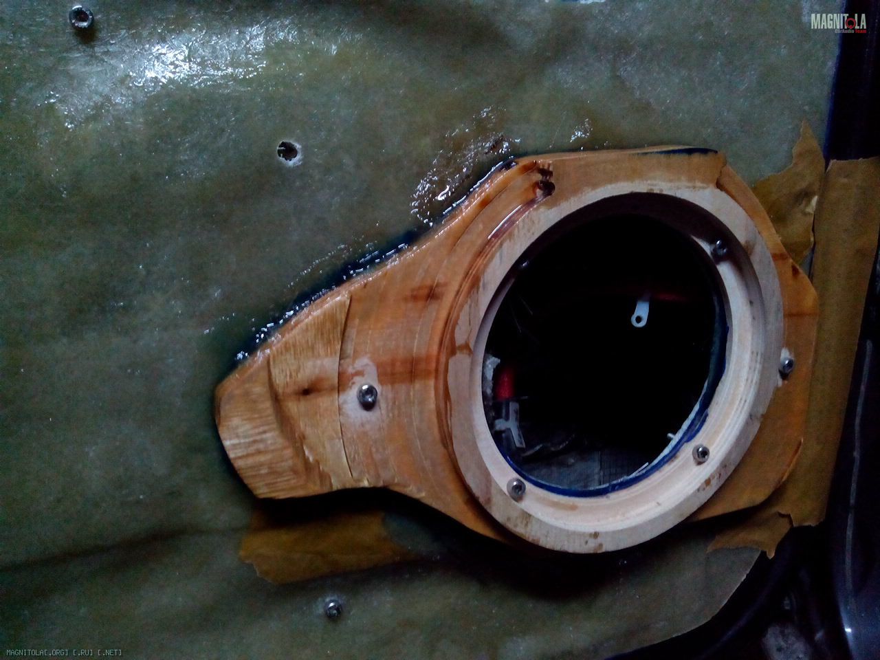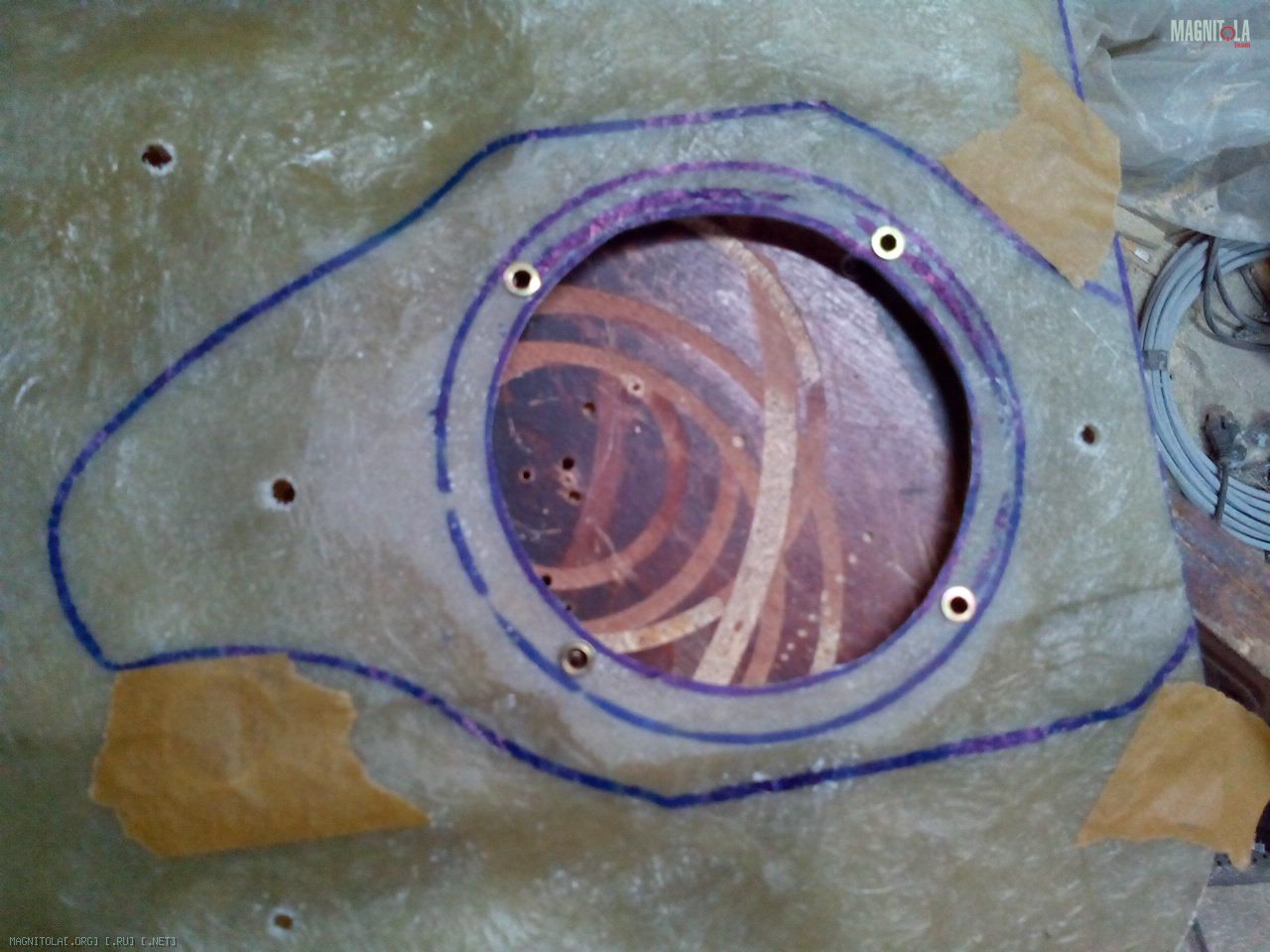 Затем, в посадочное место динамика, дополнительно сделана проставка из 18й фанеры, фигуристая такая с углублением и т.п...