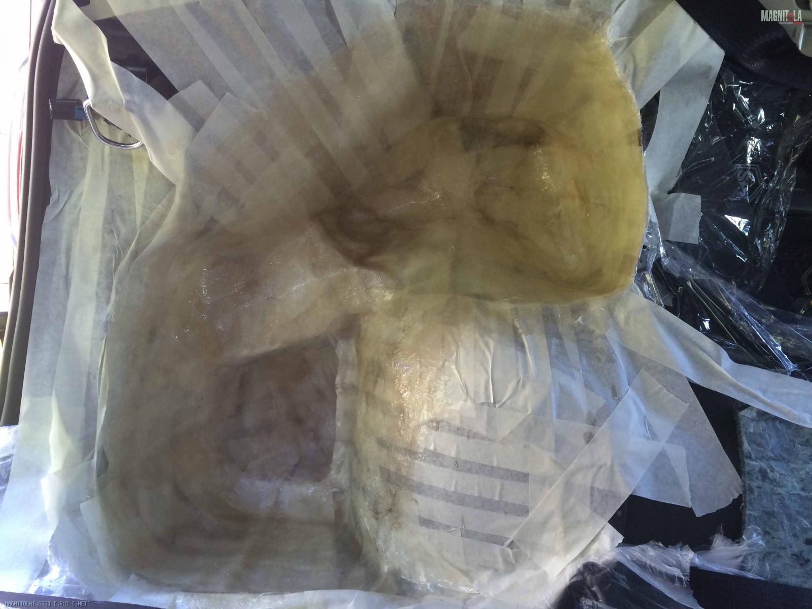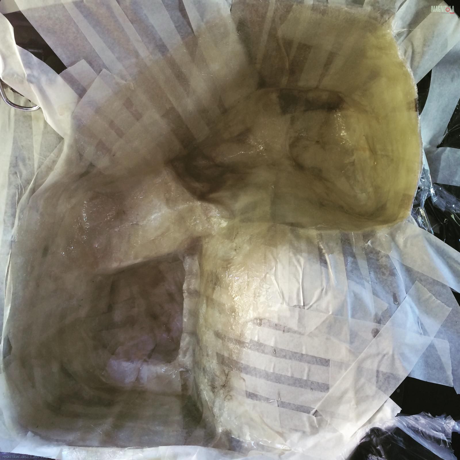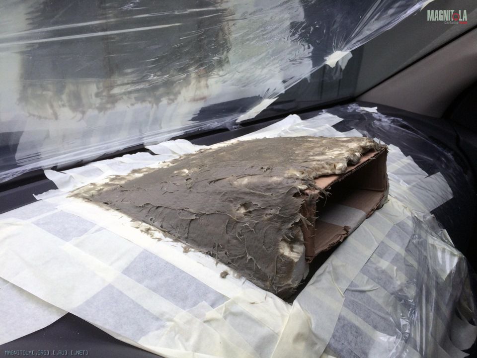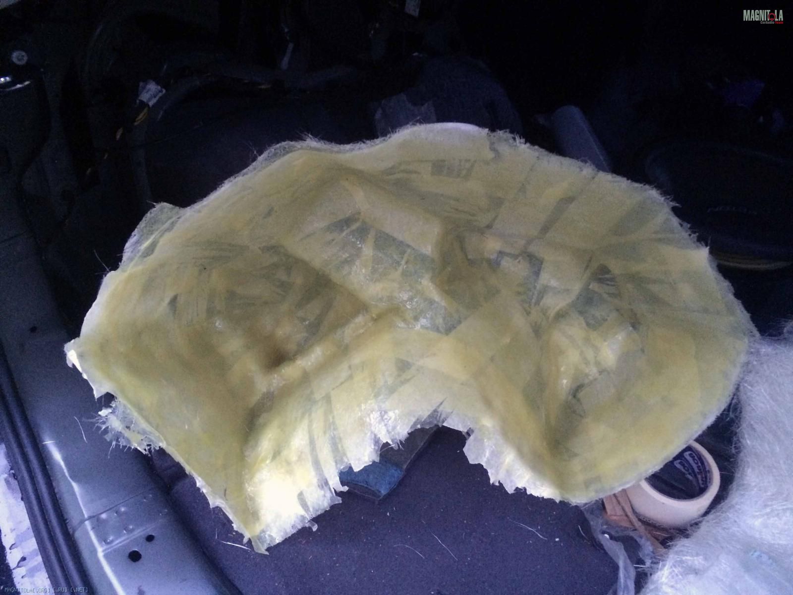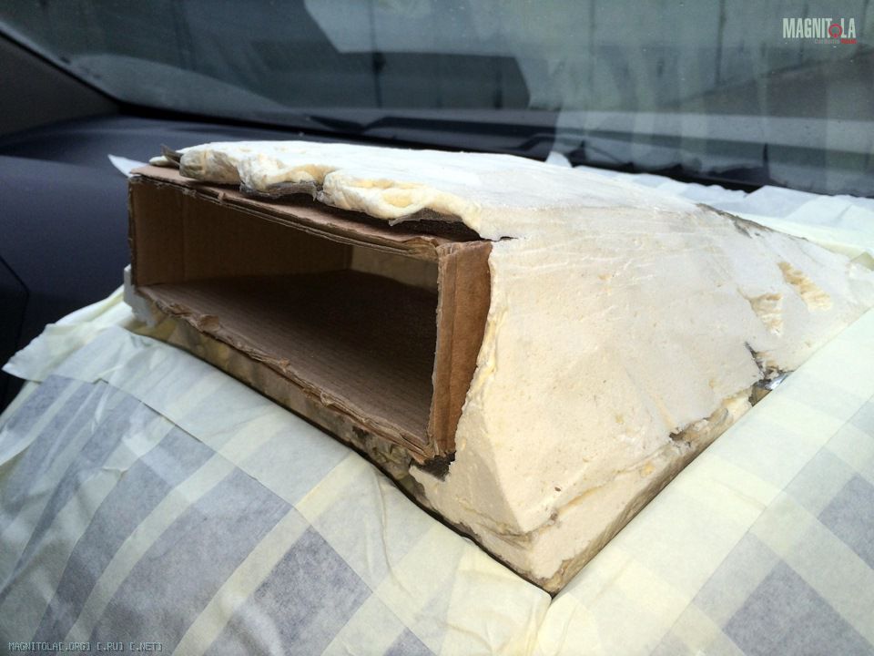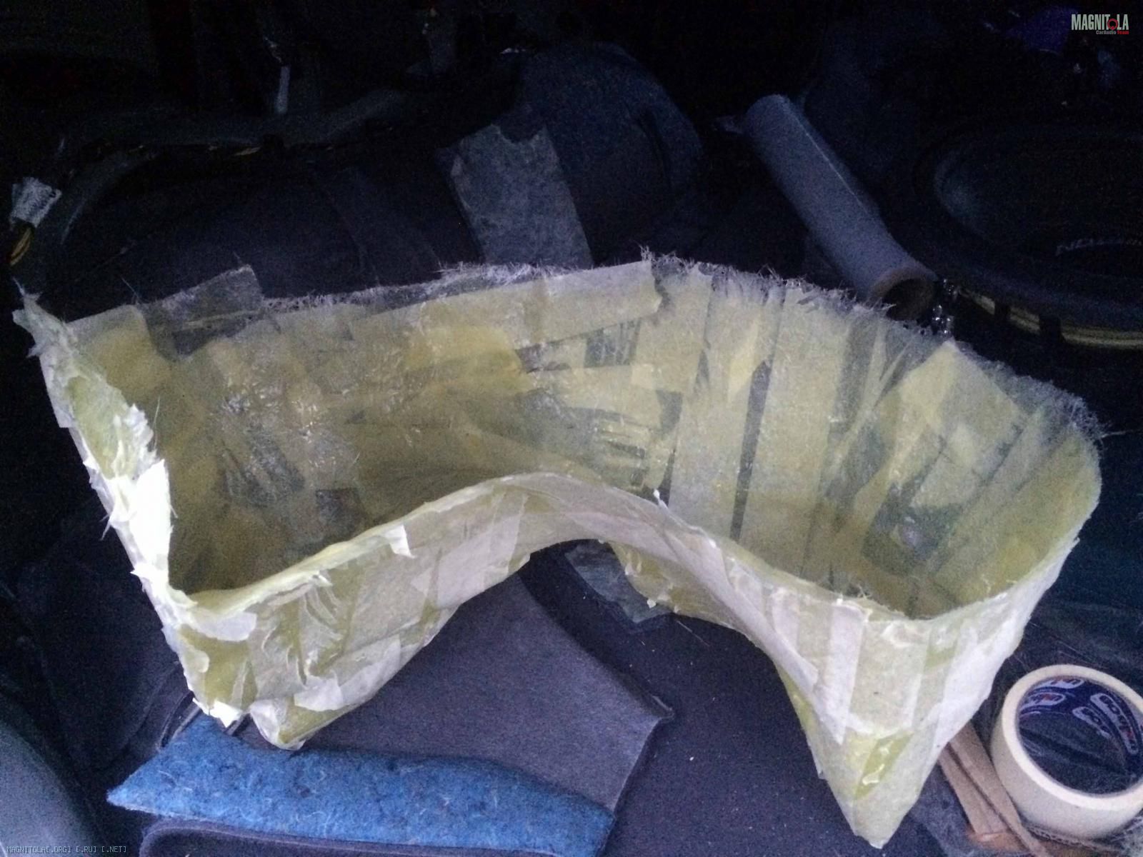 Начал сегодня делать стелс в заднее крыло. Моделировал стелс картоном и скотчем, далее 2 слоя 300 мата и вынул через пару часов.