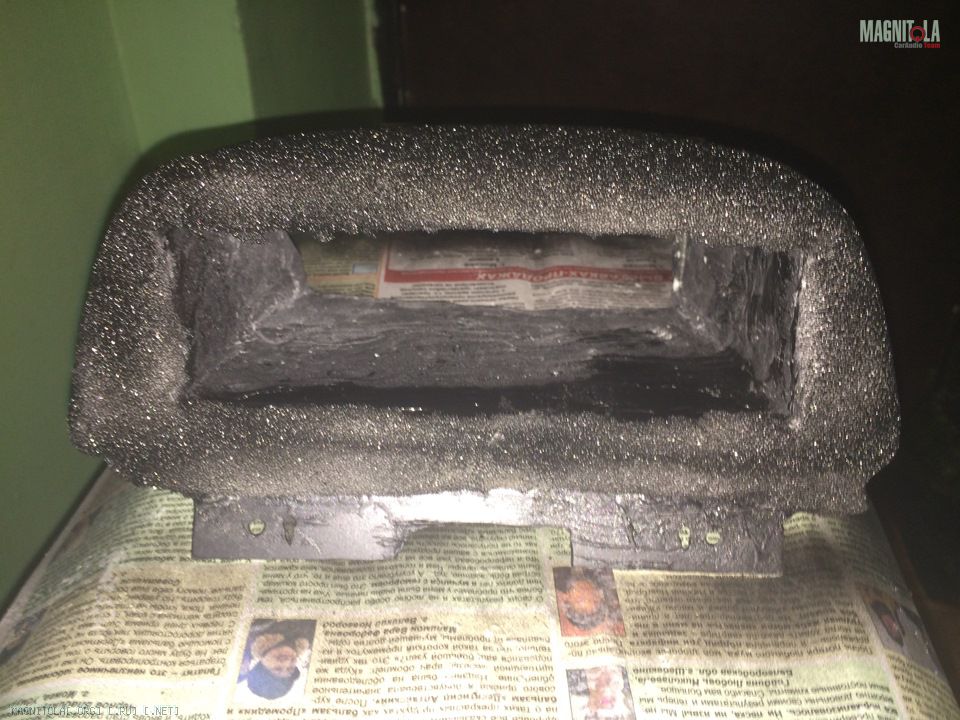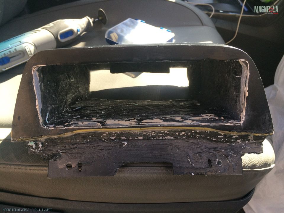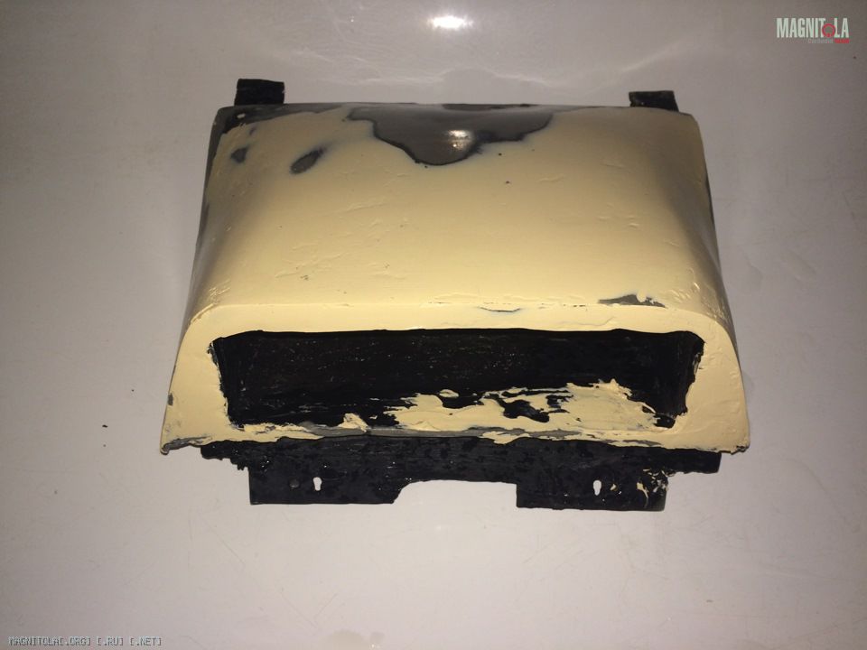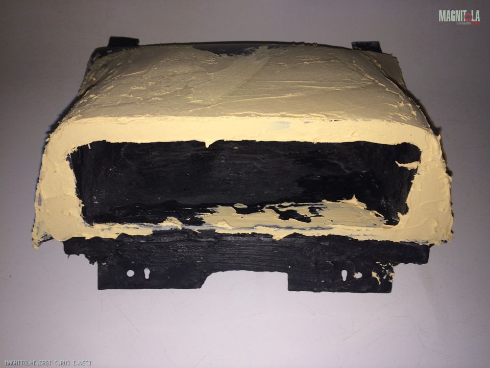 Далее в эти выходные вооружился стекловолоконной шпатлевкой и 2 часами времени. Решил не мучить магнитолу, сделал из картона форму.