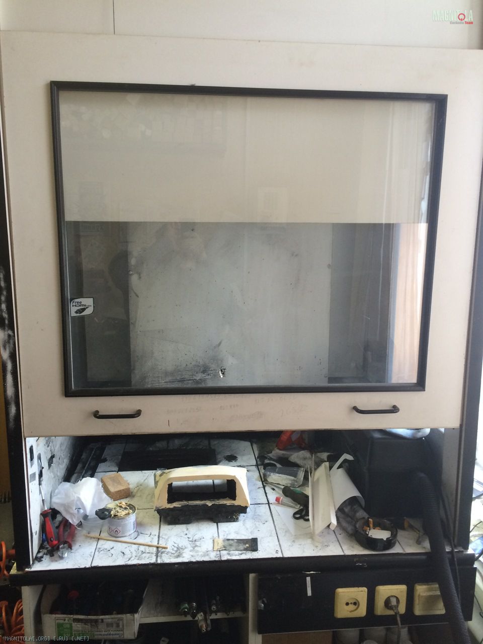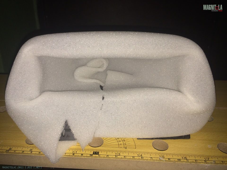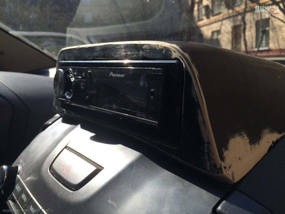 Снял опять бардачек, обклеил магнитолу и бардачек, вооружился монтажной пеной и ведром с водой и ну месить полимерное тесто))) От старого подиума выдрал куски глины, на которую выставил магнитолу, хоть что-то полезного))