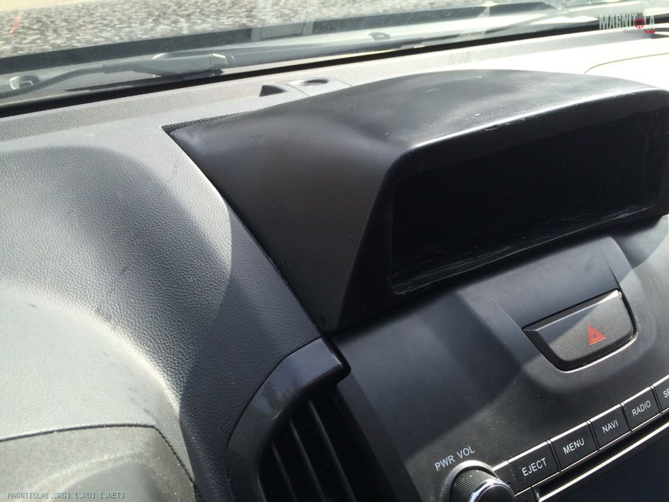 Неспешно продолжаем лепить подиум. Несколько слоев шпатлевки, финишки и грунта и подиум приобретает товарный вид. Пришлось нарастить переднюю часть подиума, чтобы заглубить магнитолу. Крепления подиума сделаны жесткими - сзади подиум крепится в штатные места оцинкованными профилями для крепления подвесного потолка, которые закатаны в стекловолокно, спереди текстолитная часть крепится винтами в штатные отверстия. Само подиум позже подогнал по месту, неровности буду обирать при пошивке чехла, первым слоем будет поролон, вторым слоем кожзам. снизу подиум будет обклеен маделином, чтобы сидел как влитой.