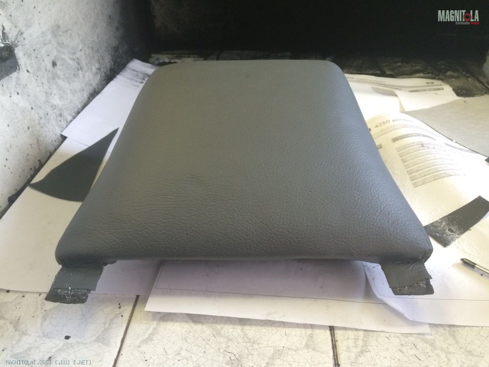 Теперь вопрос как лучше обернуть одним куском, тогда будет шов снизу магнитолу около 1 мм, или двумя кусками, сшитыми по кромке передней части подиума декоративным швом?