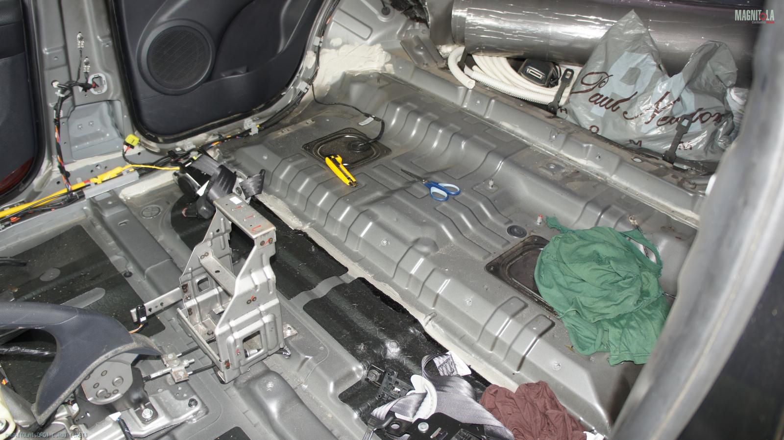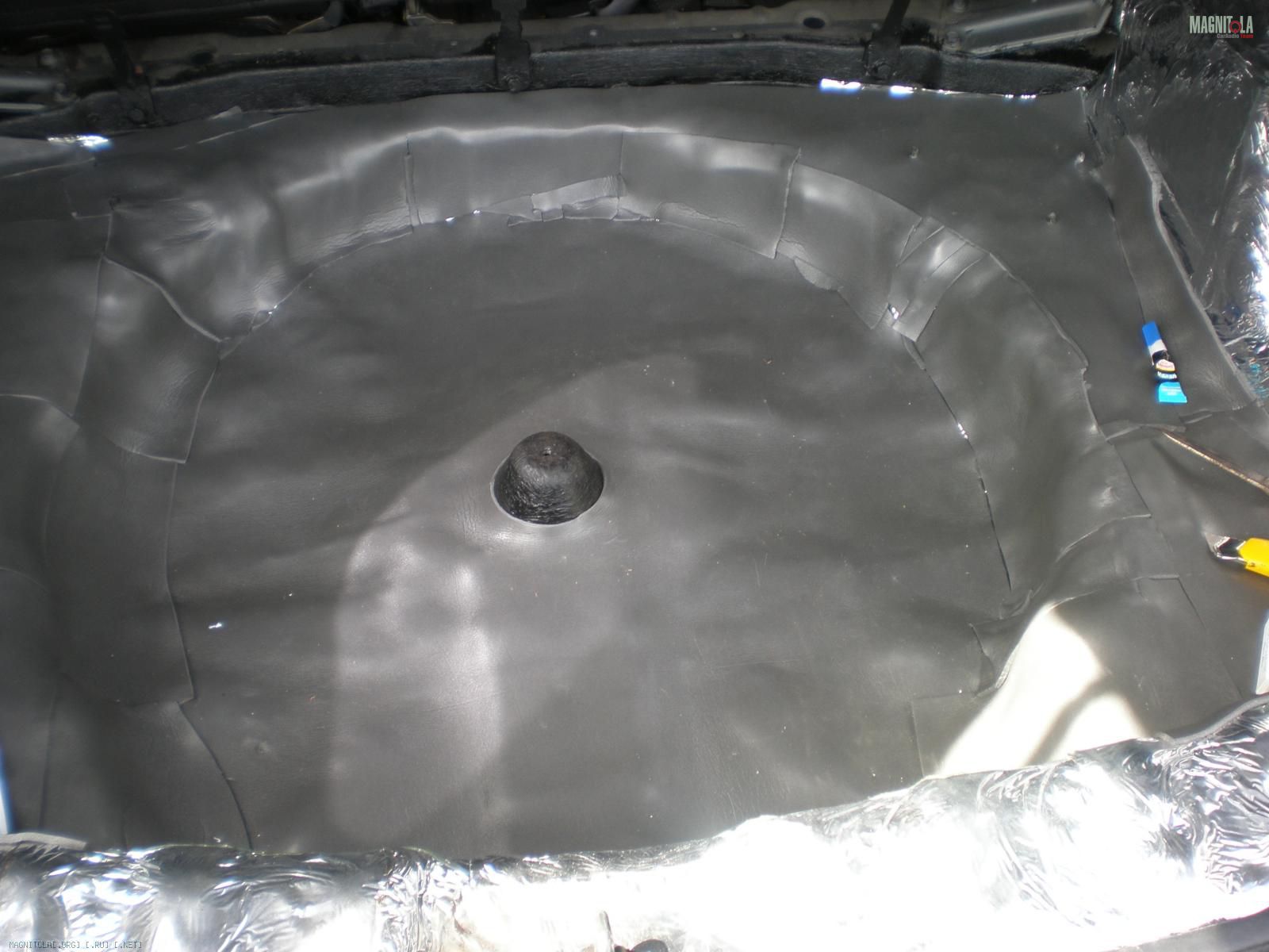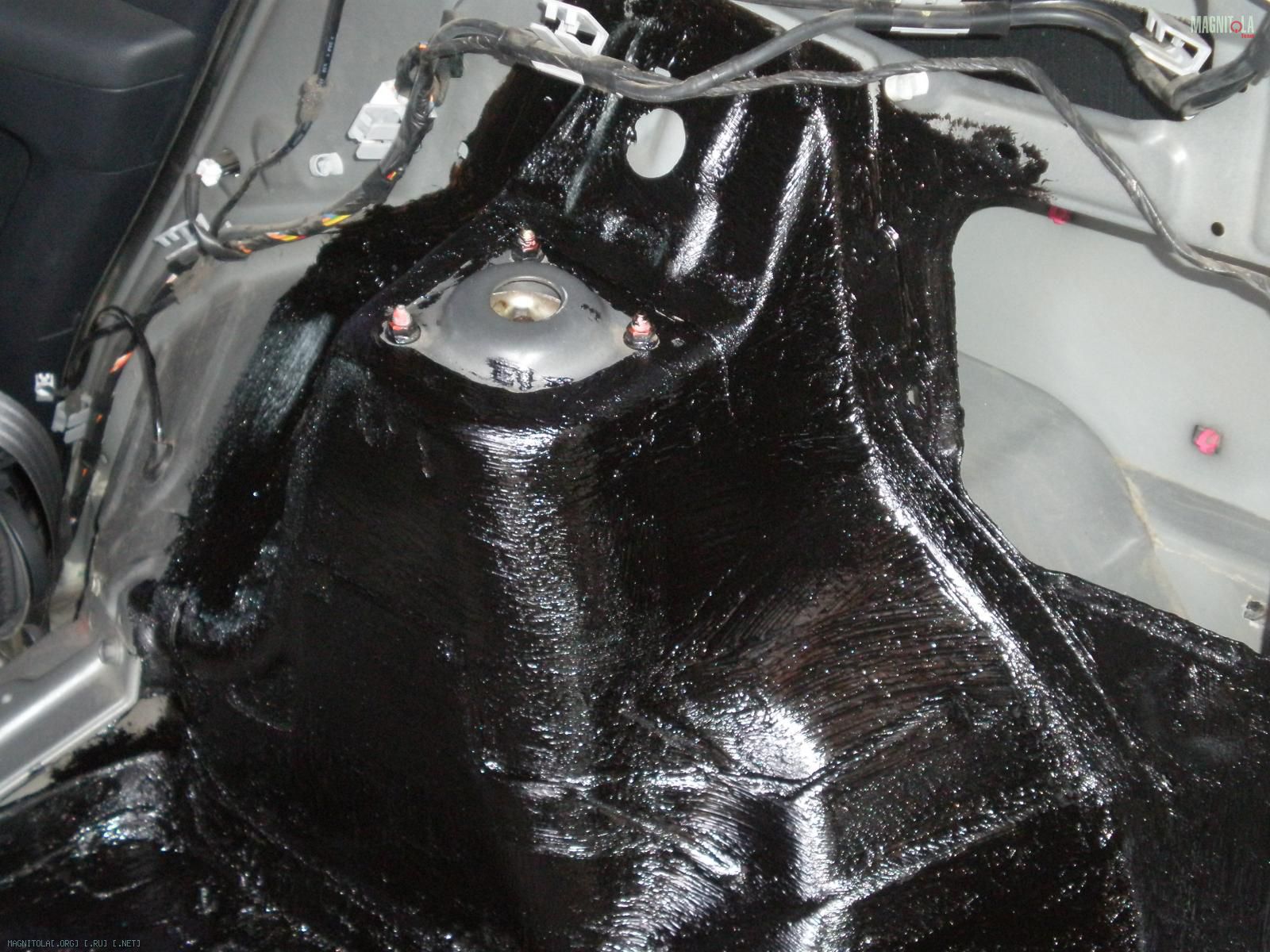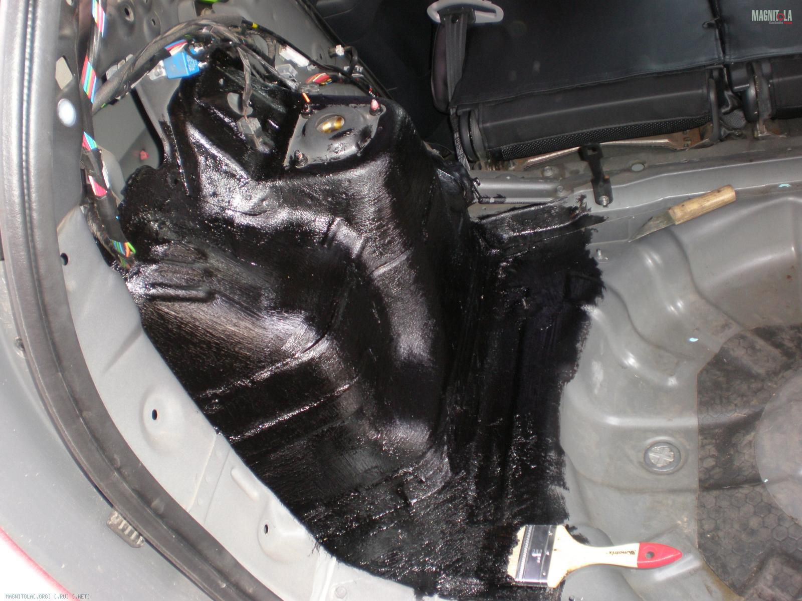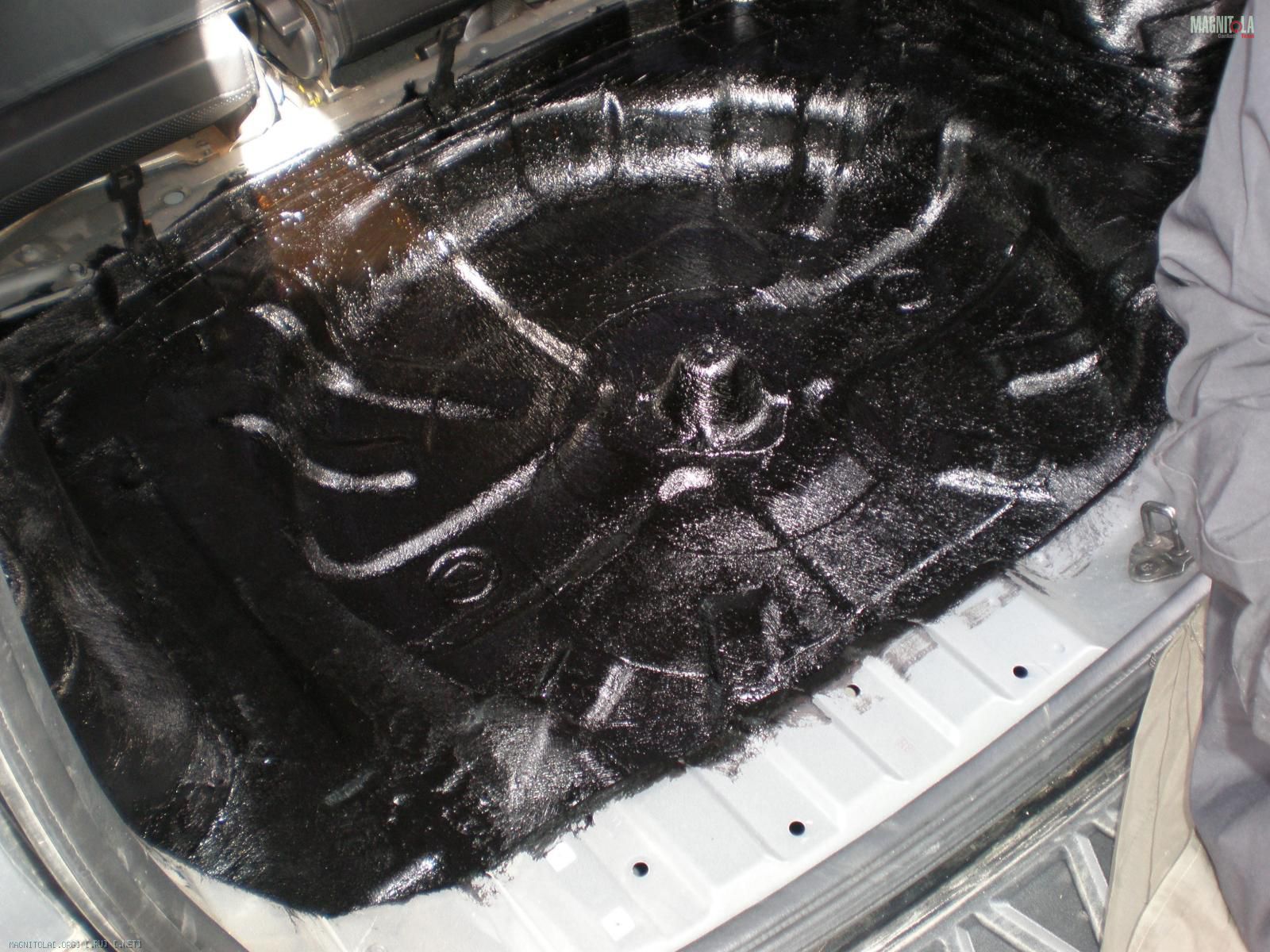 Багажник сначала промазал в несколько слоев Dinitrol. Жидкий локер. Купил для арок ведро динитрола, а использовал в багажнике. Где-то на просторах интернета и на самой банке этого динитрола прочитал, что он используется как шумка)))). Может и так, но в багажнике разницы я не заметил, зато бутерброд получился.