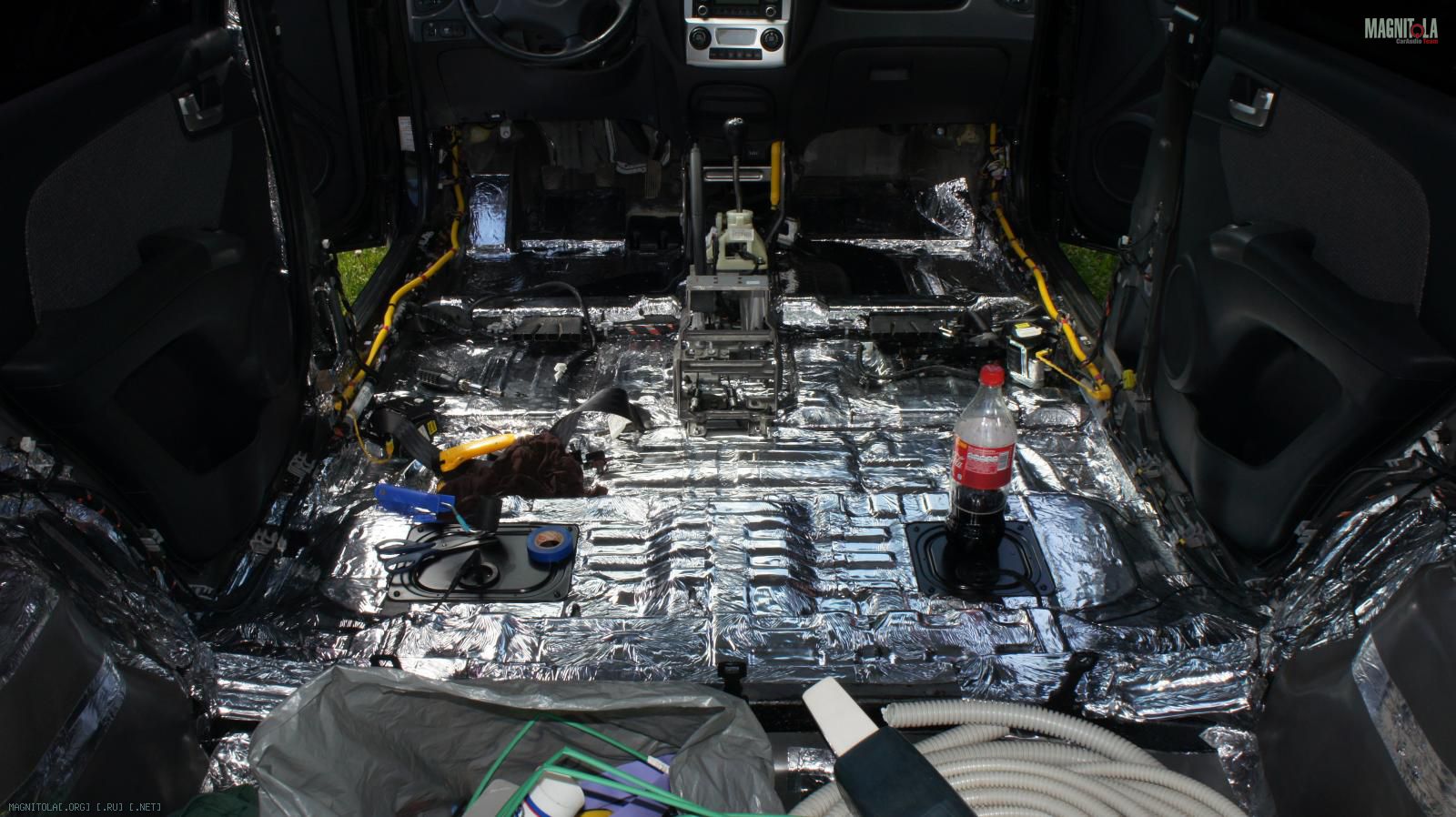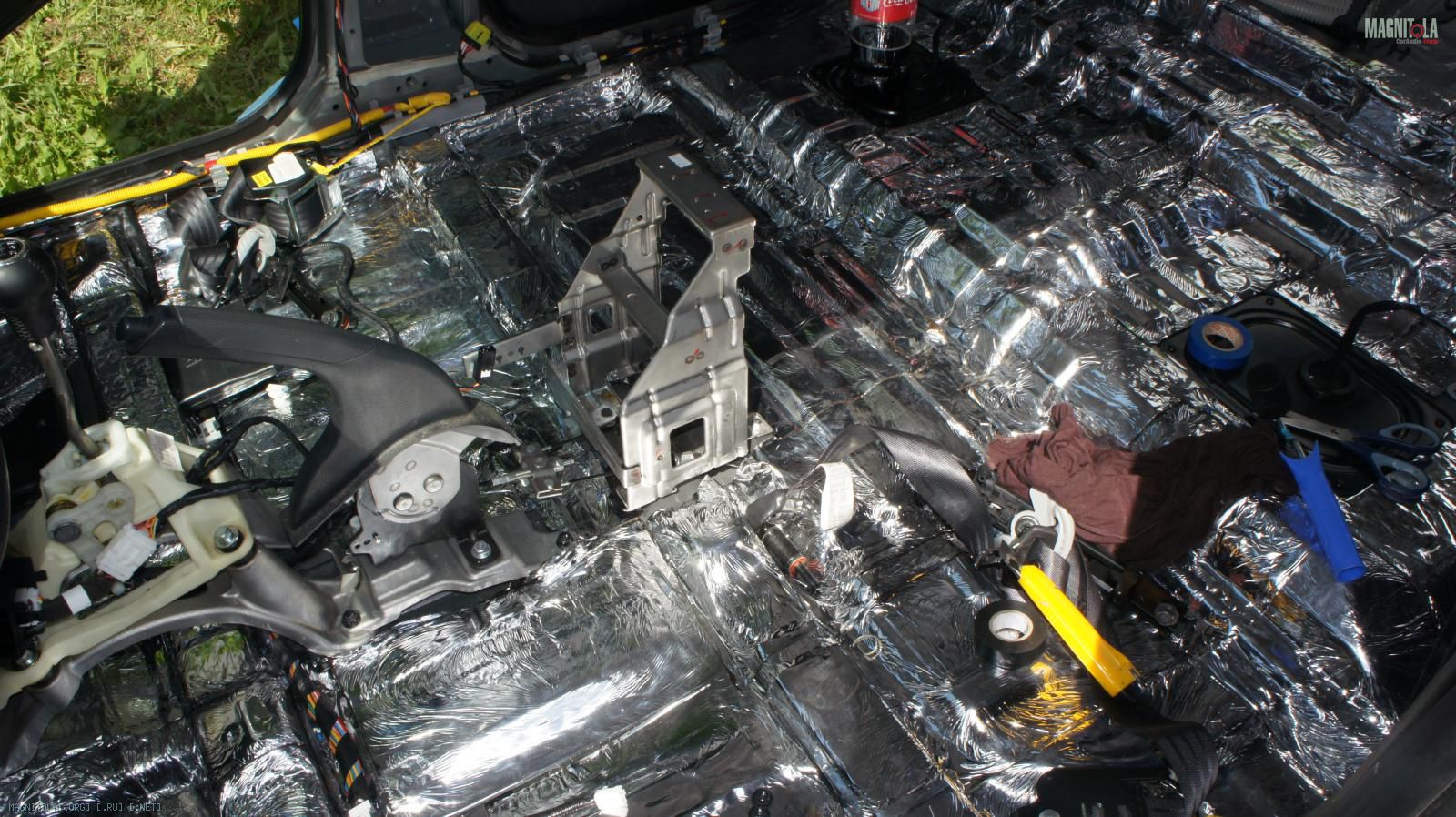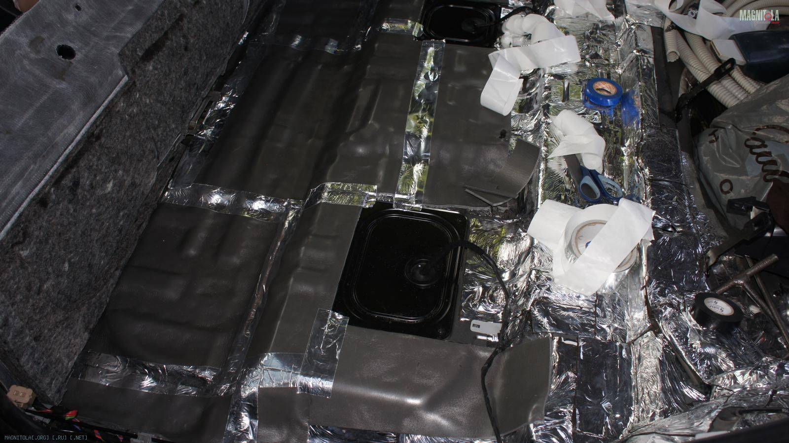Первое с чего начал - пол. Использовал неизвестный мне материал. Продается в рулонах, типа с фольгой сверху - по факту это не фольга, а пленка. Пленка на мастике получается. Купил, т.к. видел, что этим материалом делают ШВИ, проклеил пол и багажник, а как добрался до потолка понял, что материал какой-то не правильный. На потолке использовал нормальный материал. Но обо всем по порядку.