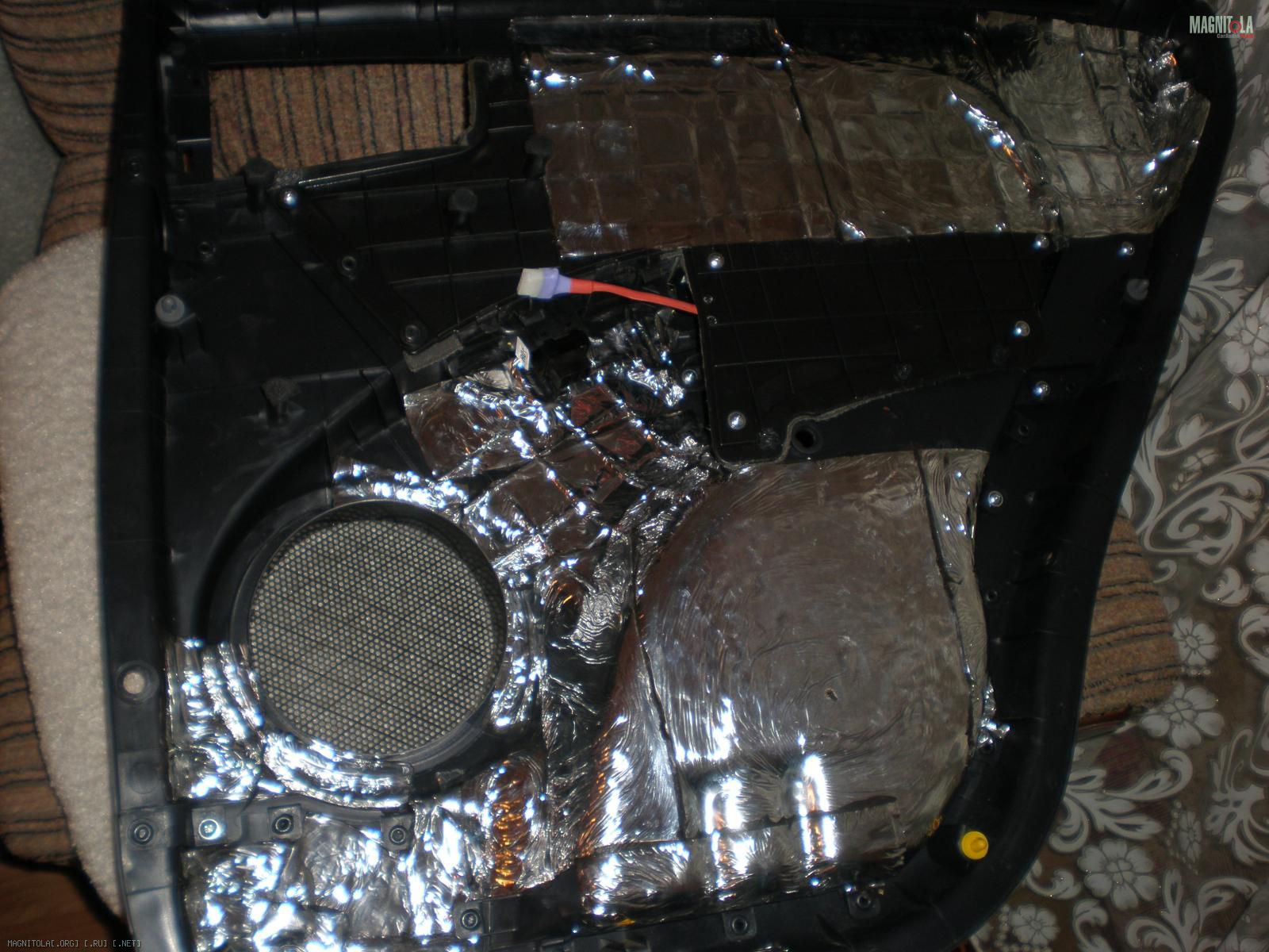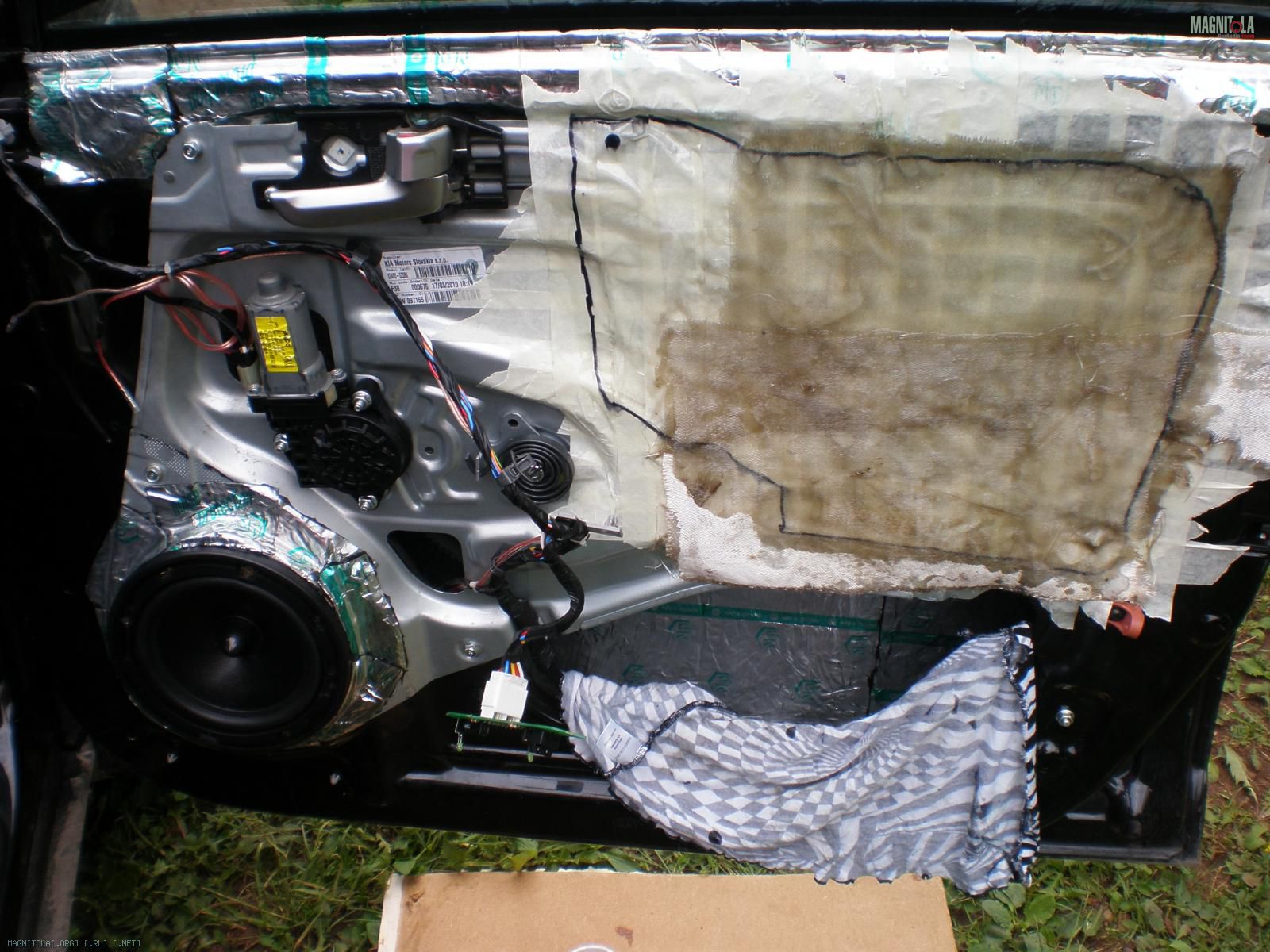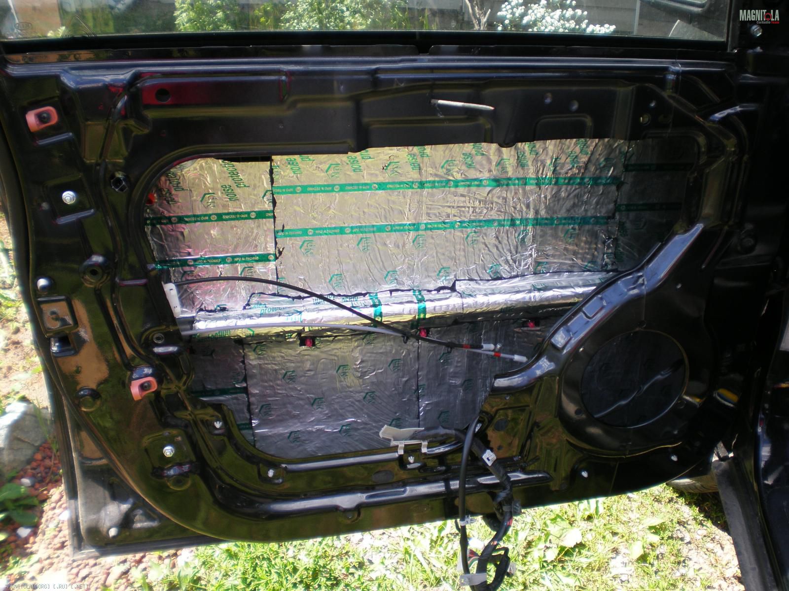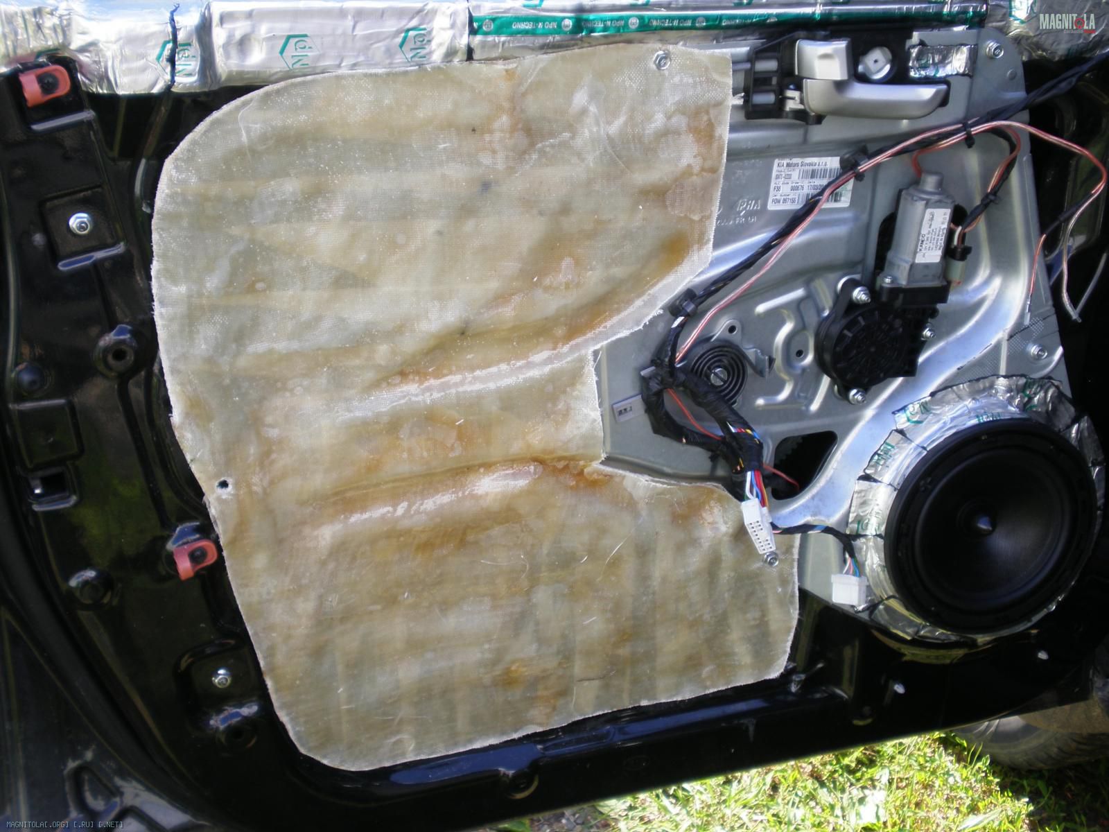 Внутри двери один слой вибры - мало, но в задних оставлю пожалуй. На провода внимания не обращать - их уже там нет, динамики штатные там оставил не подключенные.