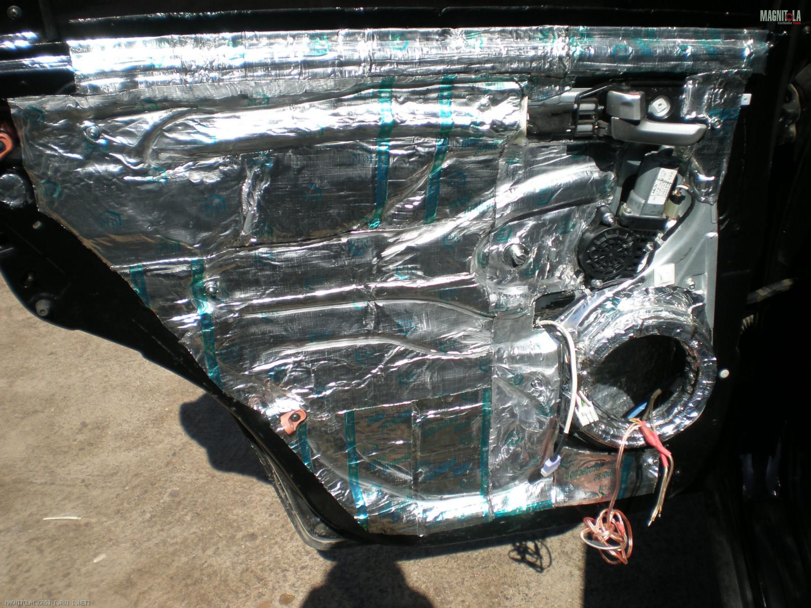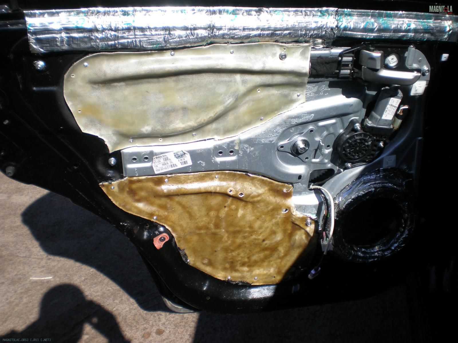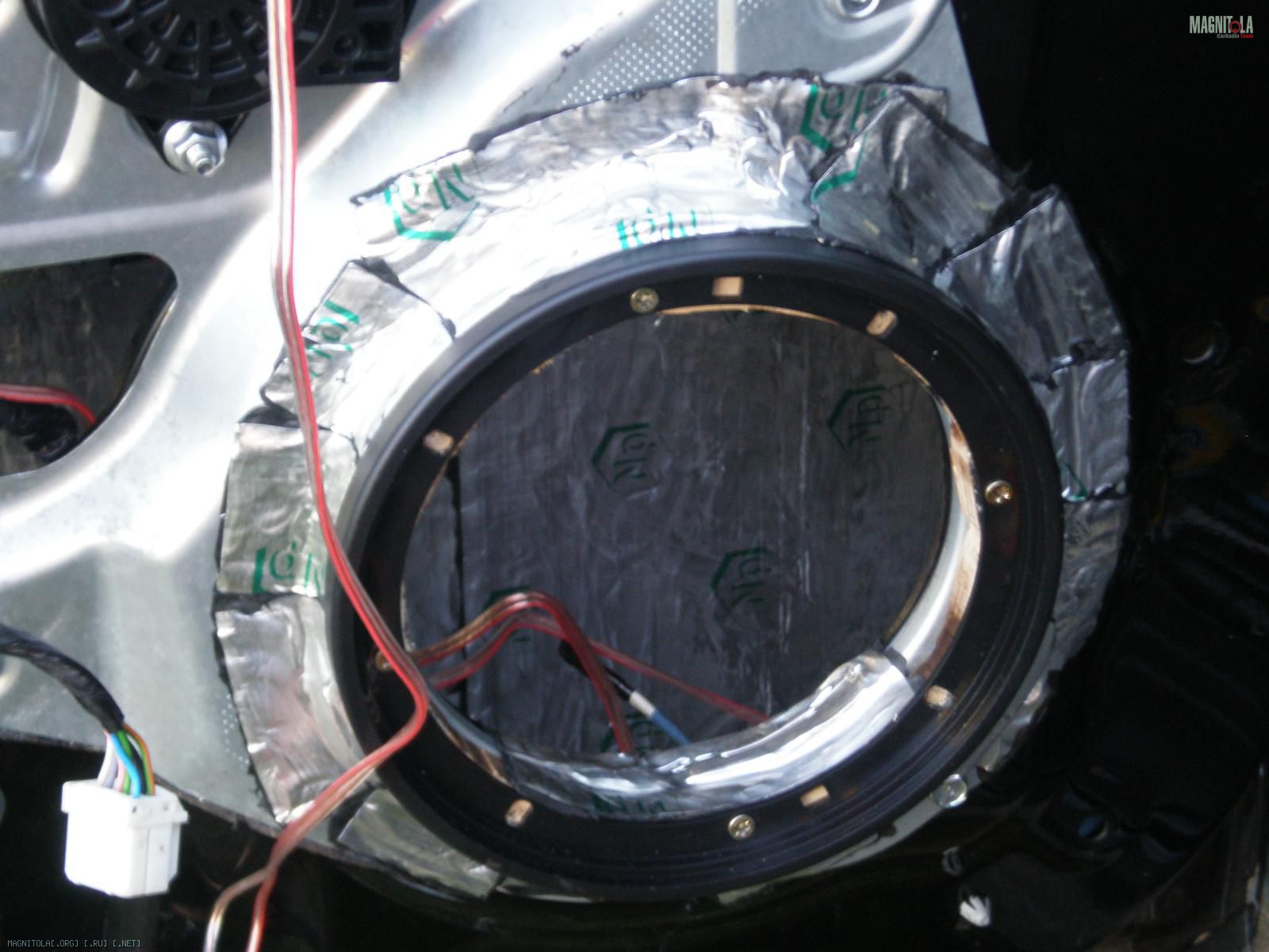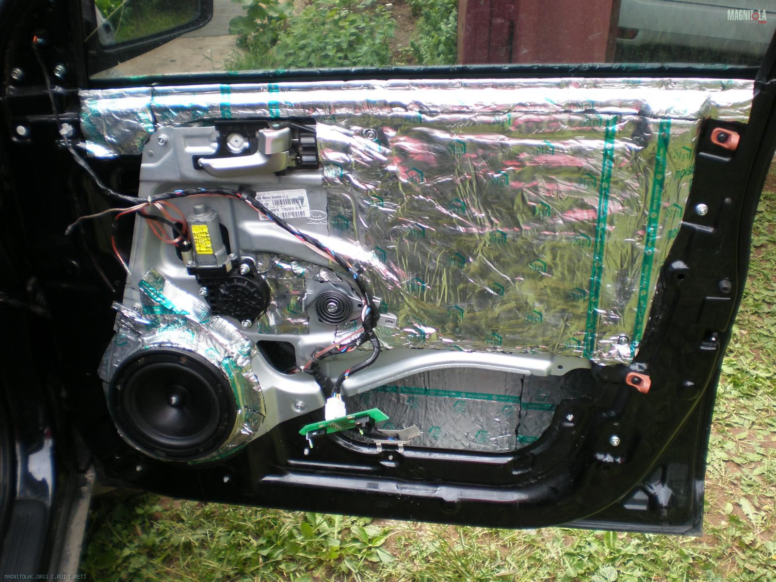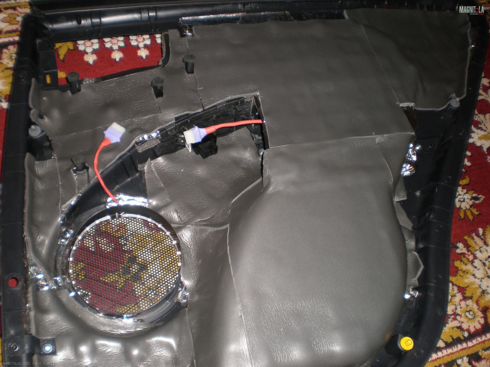 Внутри двери один слой вибры - мало, но в задних оставлю пожалуй. На провода внимания не обращать - их уже там нет, динамики штатные там оставил не подключенные.