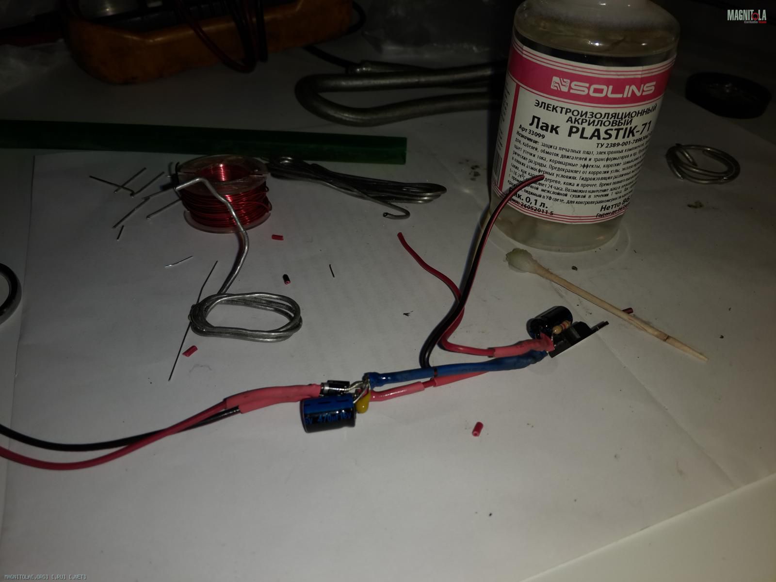 Где были близко оголенные проводники, проложил вату и залил лаком