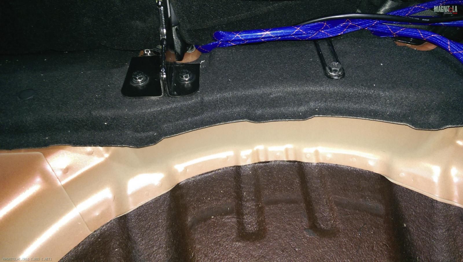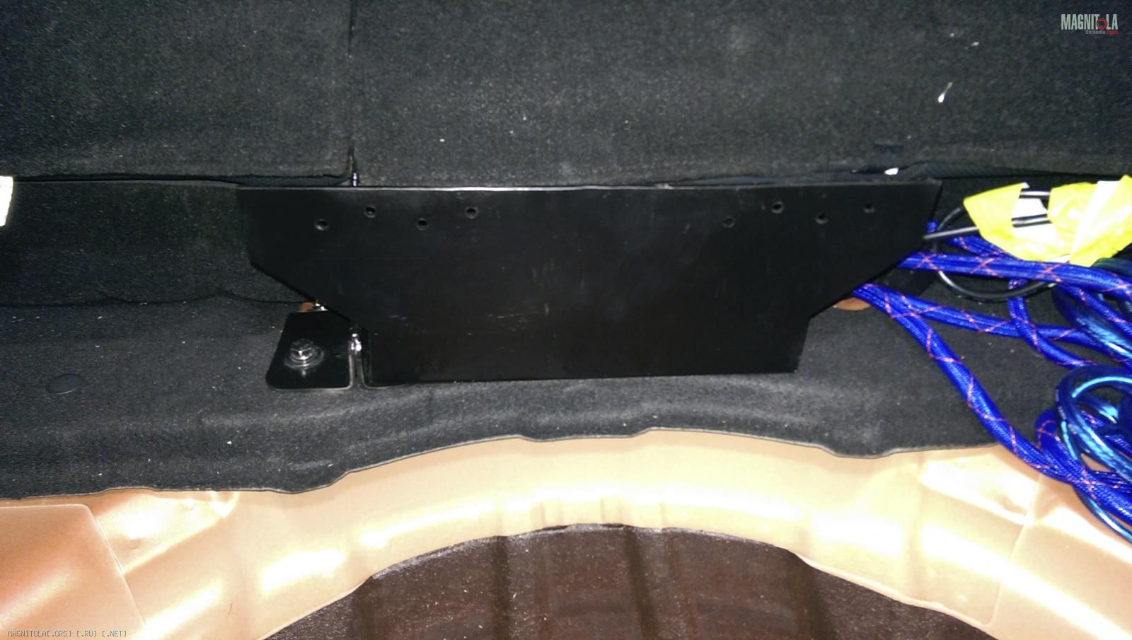 Переходим в багажное отделение. Рассовать по углам усилки и проц не получается, в спортике мало места, все занимает запаска, оказатся от неё или перейти на докатку не хотелось. Делаем раму. Используем точки крепления задних сидений. Гнем и варим такой кронштейн который прикручивается болтами.Вложение 745476Вложение 745478Вложение 745480