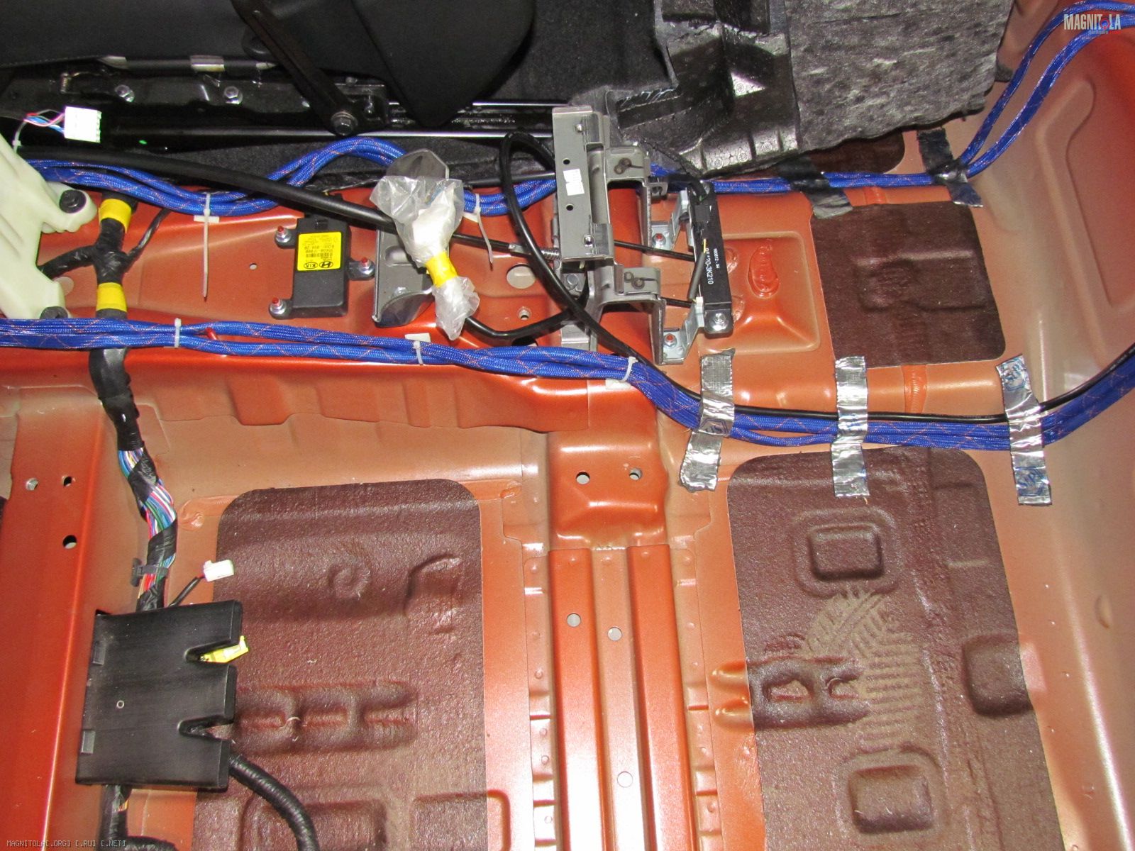Теперь о проводке. Тут ничего особенного. И использовался кабель КГ 35, отдельно плюс, отдельно минус. В моторной перегородке пришлось сверлить отверстия и выводить через гермввод. Акустические провода-как обычно. В змее по центру пола салона.Вложение 745554Вложение 745556Вложение 745558Вложение 745562