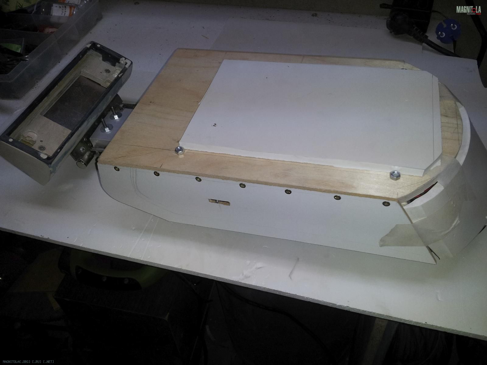 Шпаклевкой со стекловолокном выклеиваем по месту внутреннюю стенку корпуса. Эта стенка повторяет обводы стойки и тем самым плотно прилегает к ней.Вложение 737604Вложение 737606