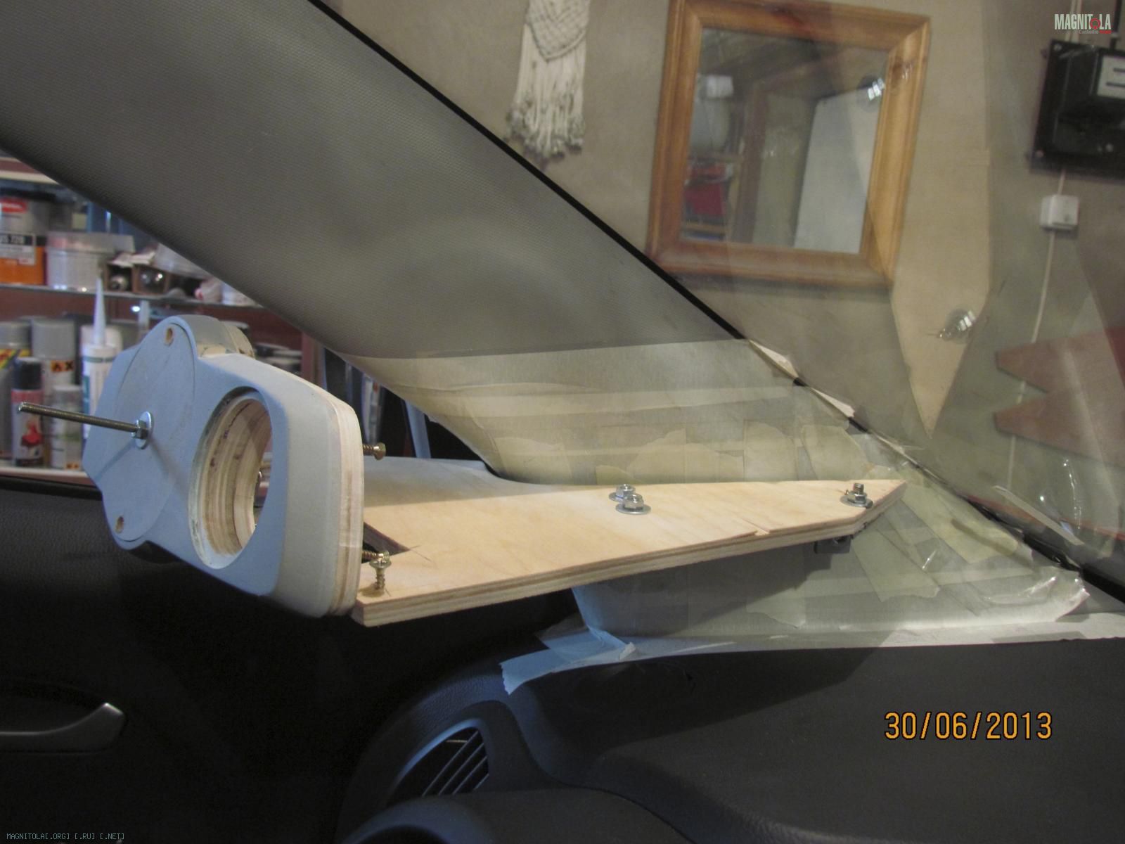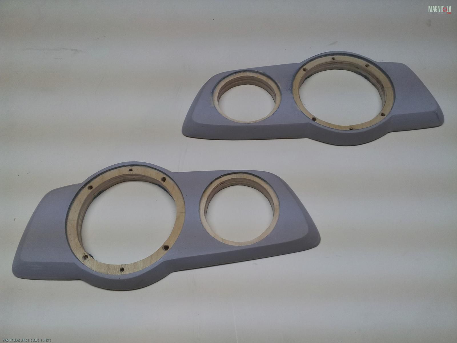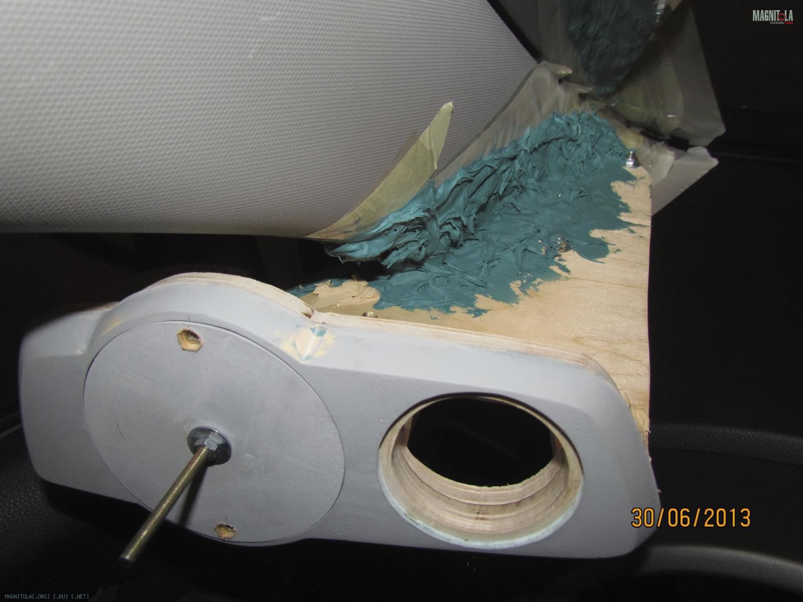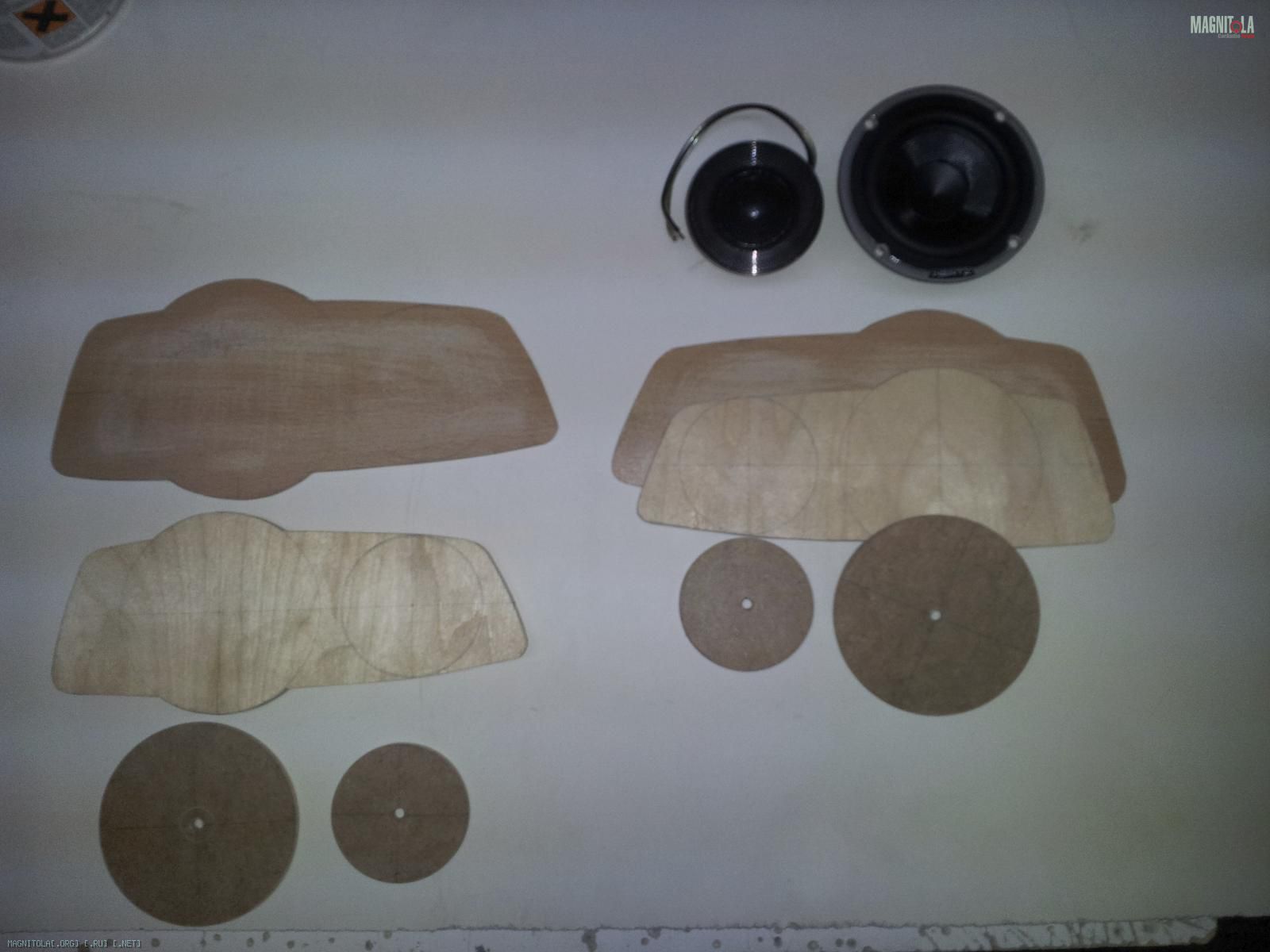Выпиливаем фанерную детальку которая выполняет роль скелета корпуса.К не прикручиваем металлические уголки крепления корпуса. Стойки обклеиваем малярным скотчем, прикручиваем наш скелет с фронтальной панелью. Затем выставляем левую и правую фронтальные панели по вертикали и горизонтали, тем самым выставляя диаграмму направленности наших динамиков. В итоге, т.к. система планируется процессорной , СЧи ВЧ правого и левого каналов смотрят на правое ухо водителя.:handorgan:Вложение 737596Вложение 737598Вложение 737600Вложение 737602