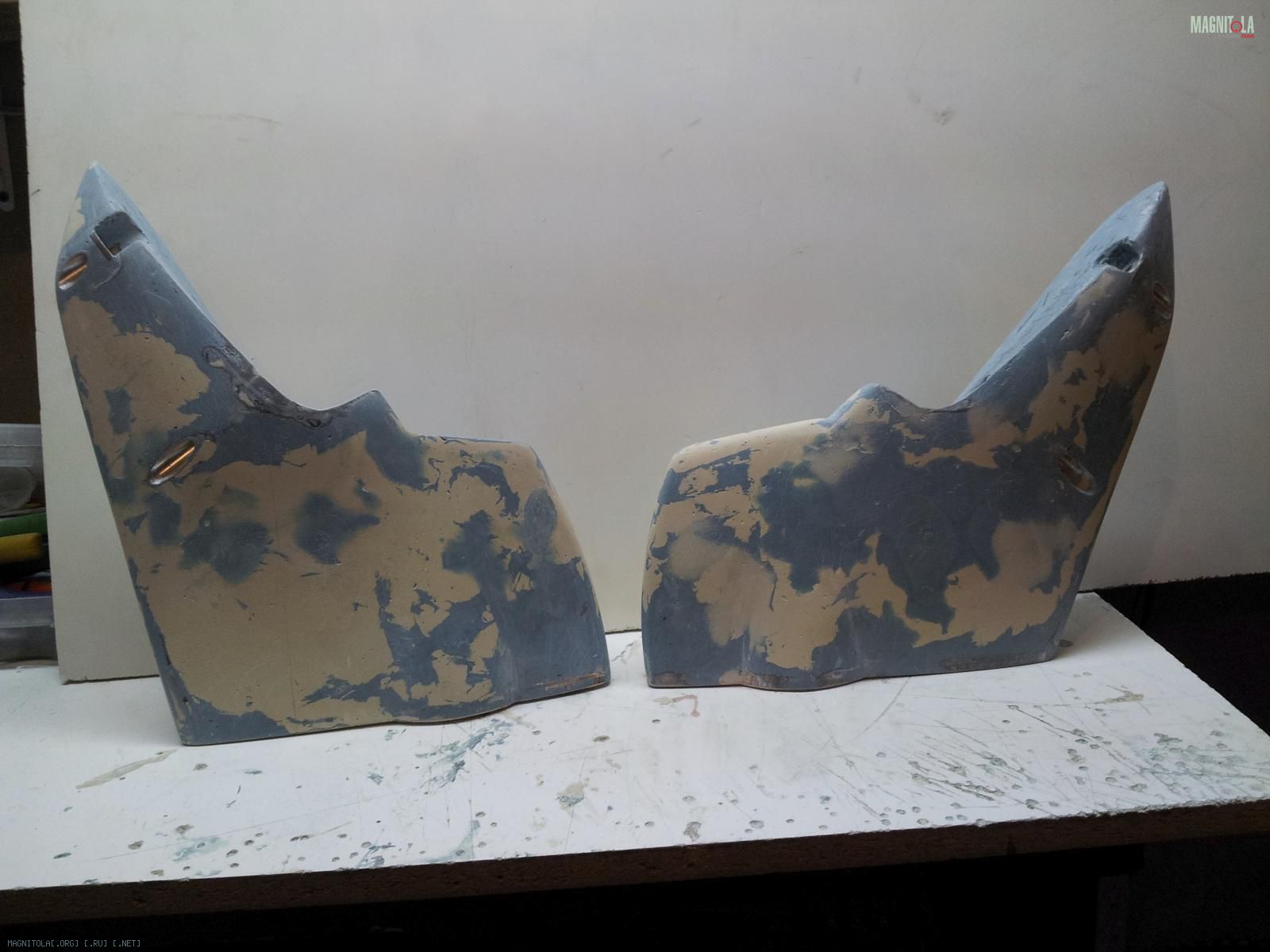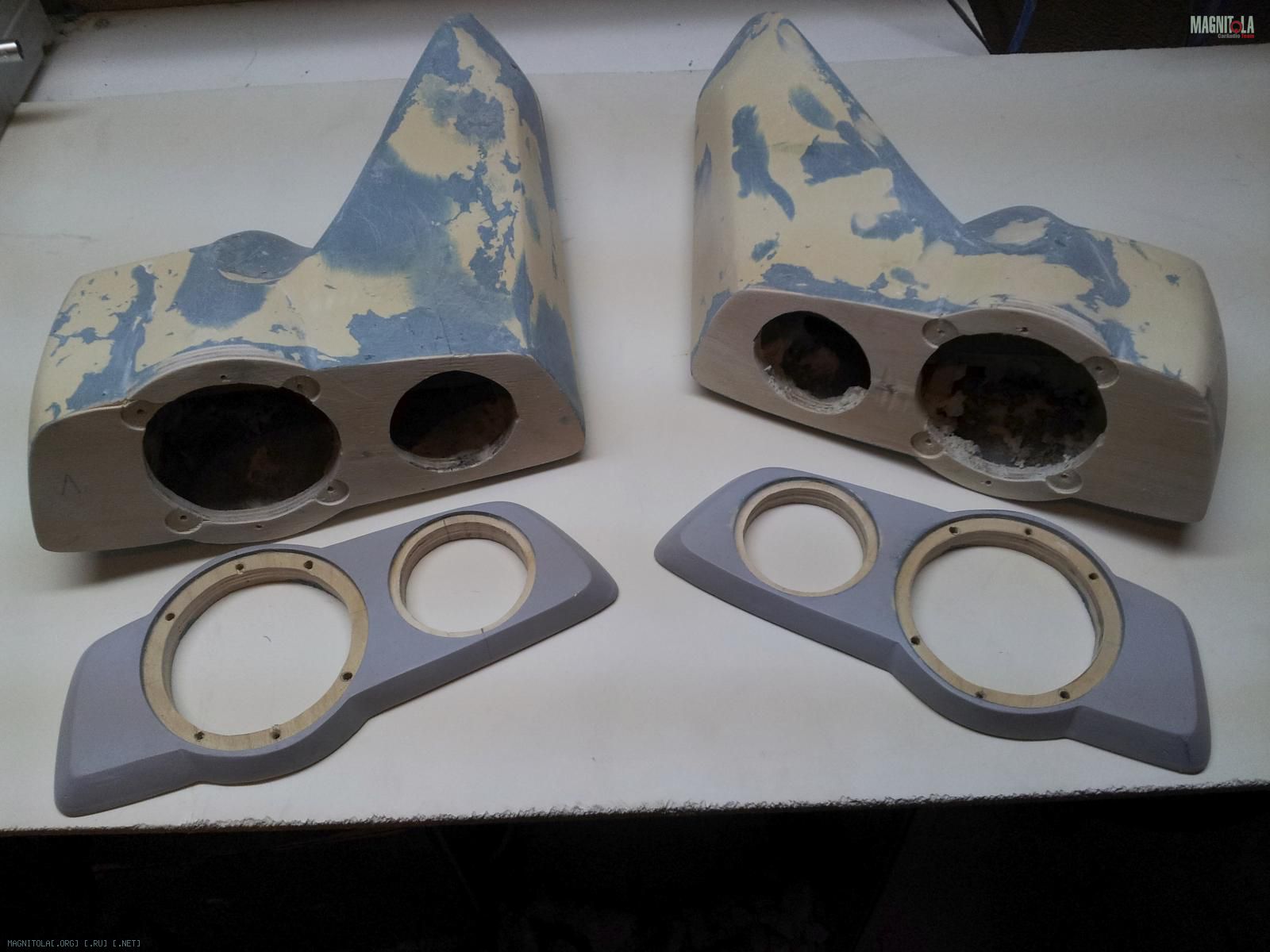 Непосредственно корпус делаем по известной технологии . Запениваем, обрезаем лишнее, затем шпаклевка со стекловолокном, наждачка, терпение. В итоге из за разного напрвления динамиков левый и правый корпус немного отличаются.Вложение 737608Вложение 737610Вложение 737612Вложение 737614Вложение 737616Вложение 737618