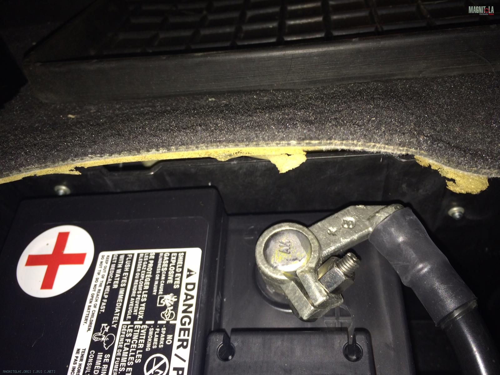 Поглядел на штатные клеммы и подумал, что менять их смысла не много. Наконечнику под этим болтом должно быть комфортно. От гольфа осталось 6 с лишним метров силы, 2ка артсаунд, довольно гибкая, по крайней мере приятнее стингеровской в работе, которая использовалась на минус. Артсаундовской должно хватить на + и - от акб до усилка. Тушка ГУ будет под фальшполом багажника, плюс для нее пойдет отдельным проводом от акб, минус на кузов. Либо второй вариант: плюсовая двушка дойдет до багажника и там будет поделена на четверку (плюс на усилитель) и еще какой-нибудь проводок для питания ГУ. Минус останется таким же (для усилка двушка с акб, для ГУ сопля с кузова). Второй вариант нравится меньше, пока склоняюсь к первому. Плюс для ГУ зайдет в ту же колбу с предом, что и питание усилителя.